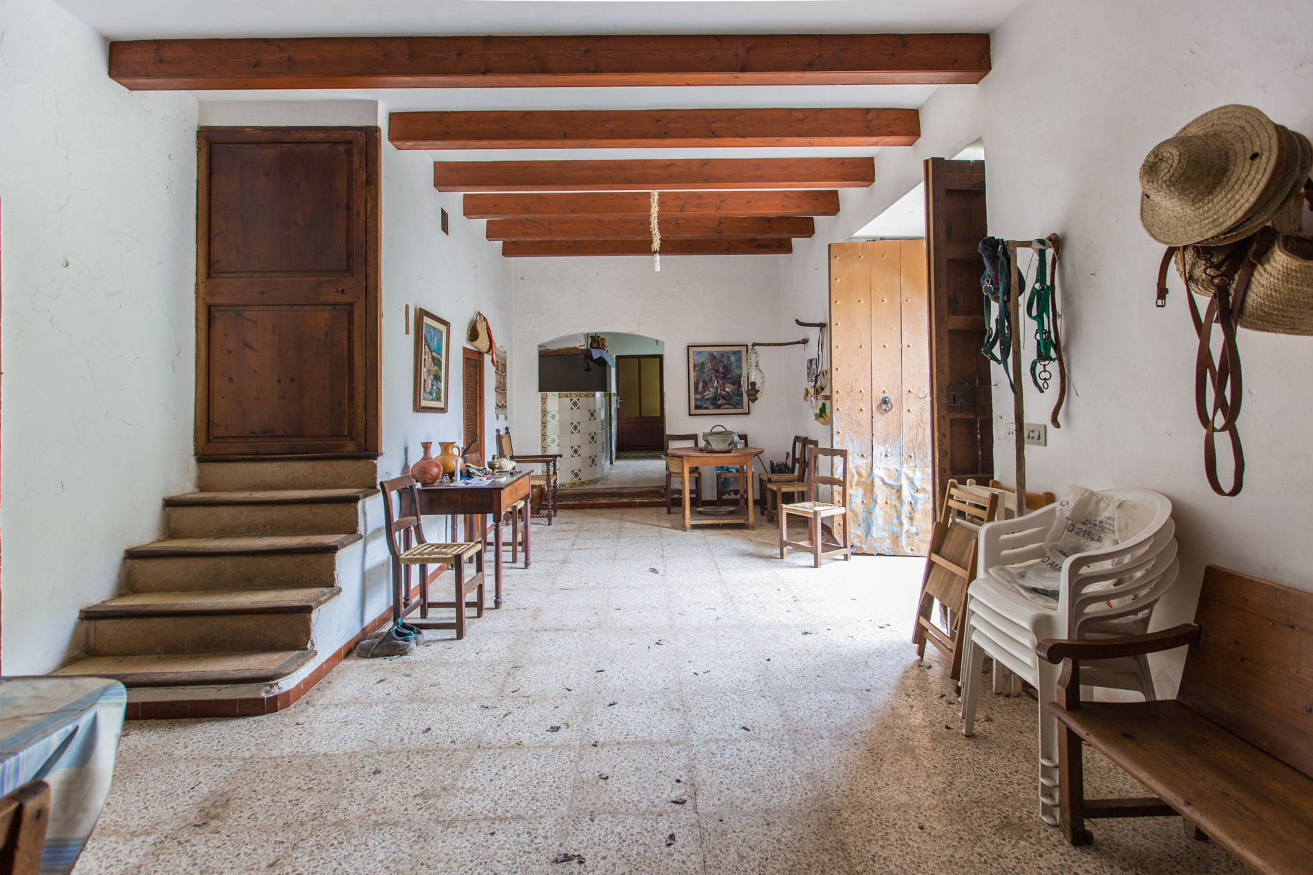 Das Anwesen hat eine große ebene Fläche auf der sich die Finca befindet. Auf diesem Stück Land könnte man eine große Weinbergplantage entstehen lassen, ein großer Mandelhain oder und 2.000-3.000 Olivenbäume anbauen. Die errichteten Gebäude sind in gutem Zustand, obwohl sie eine Reform benötigen, um den Bedürfnissen von Heute gerecht zu werden. Das Anwesen verfügt über absolute Privatsphäre und eine sehr große Ausdehnung von privatem Land, 98 Hektar, wo wir Mandelbäume, alte Olivenbäume, Pinien und Eichen sich befinden. Das Haupthaus verfügt über große Wohnzimmer, Esszimmer, Küche, Schlafzimmer, Badezimmer sowie Service-Haus, landwirtschaftliche Lagerhäuser, Ställe, Ölmühle und eine Kapelle.MallorcaSite, Ihre Immobilienagentur auf Mallorca, empfiehlt diese Immobilie wegen ihrer ruhigen Lage mit Blick auf die Berge, für die Großzügigkeit des Hauses und des Landes.