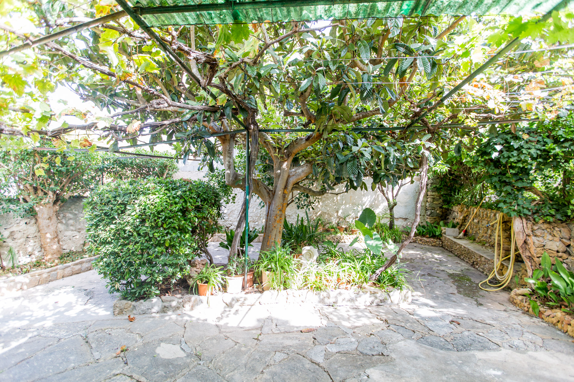 Town house with character to reform on a central street in Puigpunyent. The house has about 200 m2 built distributed over three floors, on a plot of land of about 350 m2.In the outdoor area we highlight the private garden with fruit trees with access from the street and from the house as well as the terraces with views of the Tramuntana mountain range.The buyer of the house has the preferential option of buying an urban land in front of the house of about 102 m2, since the land is not sold alone, it is currently used as a parking lot