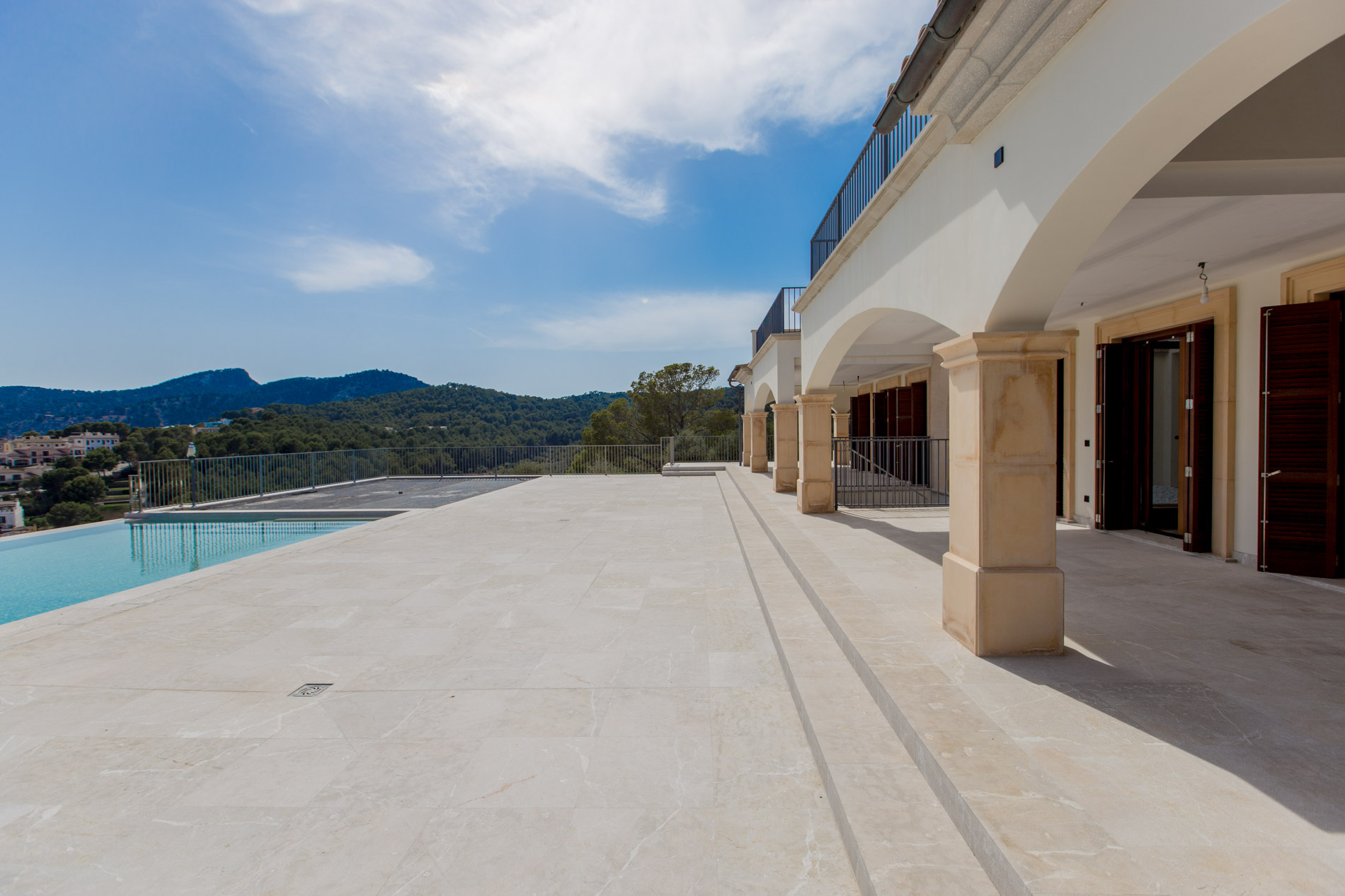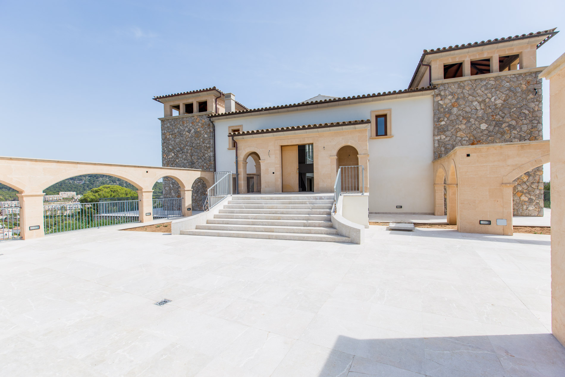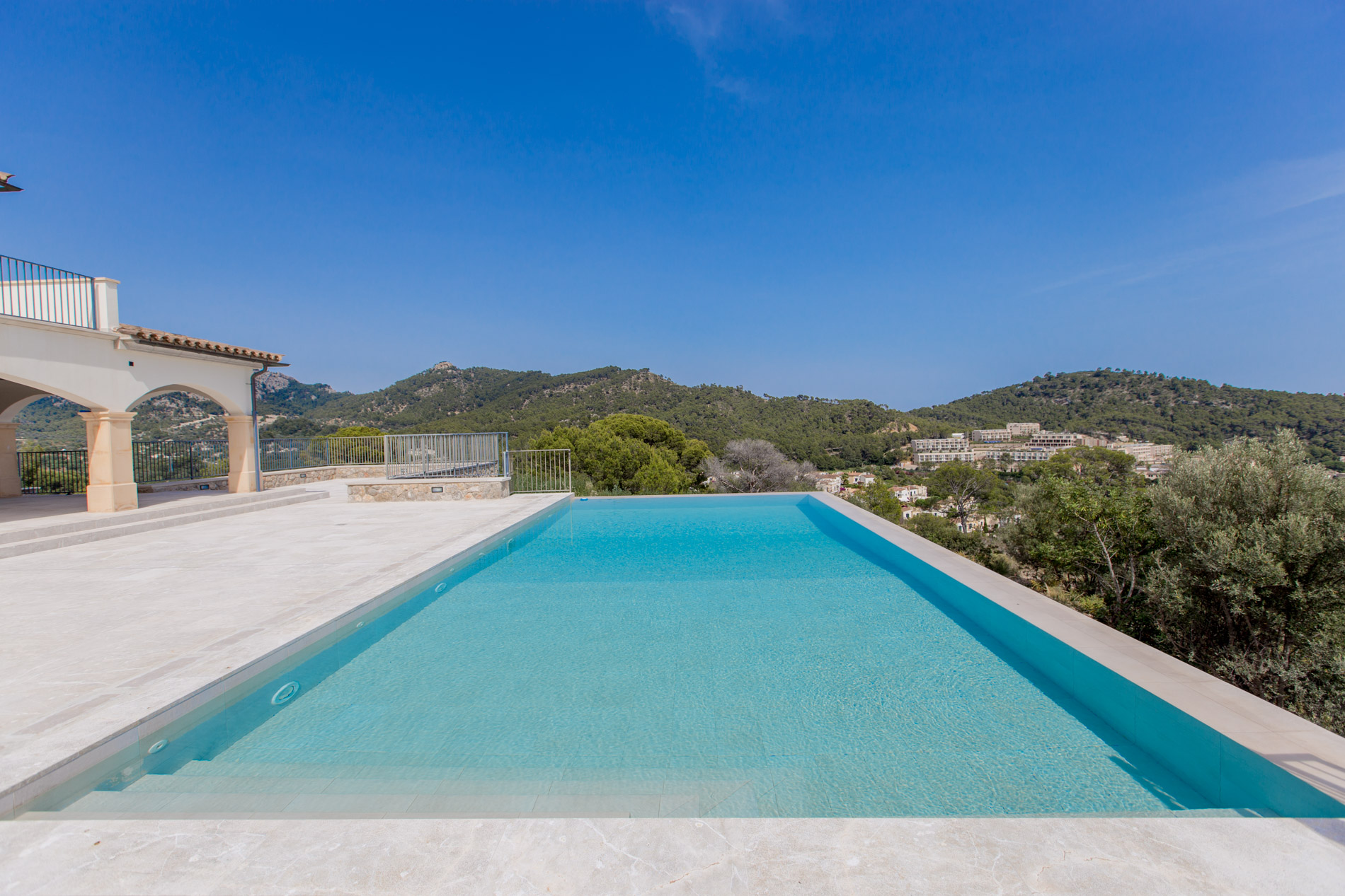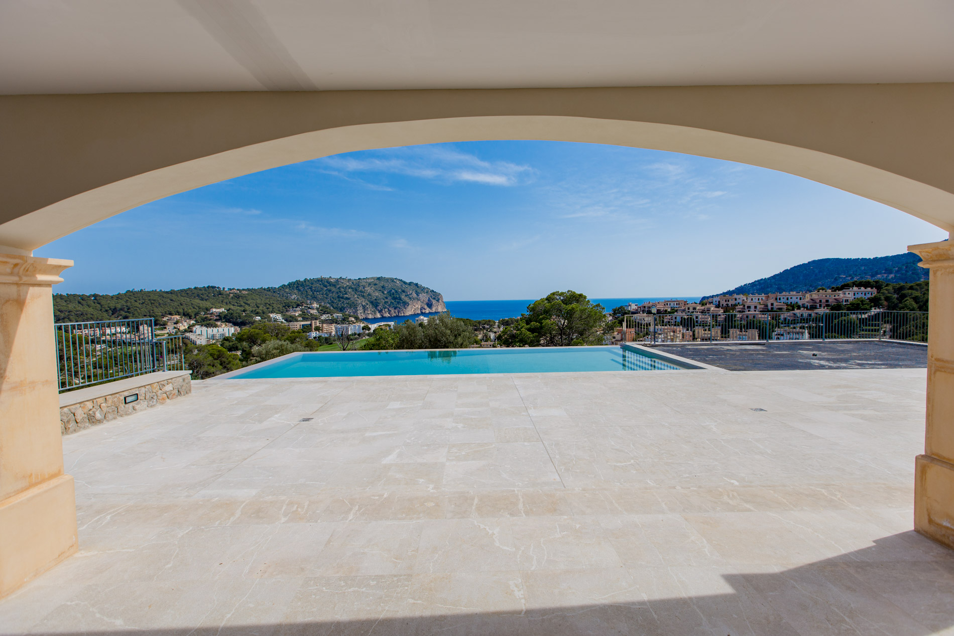 Dive into the Mediterranean charm with this spectacular estate in Camp de Mar. With a stately home offering panoramic views of the sea and mountains, this property is a true oasis of tranquility, accessible through a private road that harmoniously merges with the prestigious Andratx golf course.The ground floor welcomes you with a spacious hall that elegantly connects to the living room and dining area, while a modern kitchen and two bedrooms with en-suite bathrooms ensure comfort and luxury. Additionally, a guest bathroom adds a touch of practicality.Ascending to the first floor, you'll find an additional bedroom with an en-suite bathroom, as well as two master bedrooms offering walk-in closets and access to private terraces, where you can enjoy the infinite views of the surroundings.The basement houses a wellness sanctuary, with a gym equipped with a sauna to relax after a day of activity. Additionally, a service apartment, machinery room, and spacious garage complete this multifunctional area.The exterior is equally impressive, with an infinity pool surrounded by extensive sun-drenched terraces and lush gardens celebrating the region's native flora.And if that weren't enough, the nearby exclusive beach of Camp de Mar and its golf course await you just minutes away, while charming harbor cafes, restaurants, and boutiques are a short drive away.MallorcaSite, your real estate agency in Mallorca, recommends this property for its views, privacy and qualities.