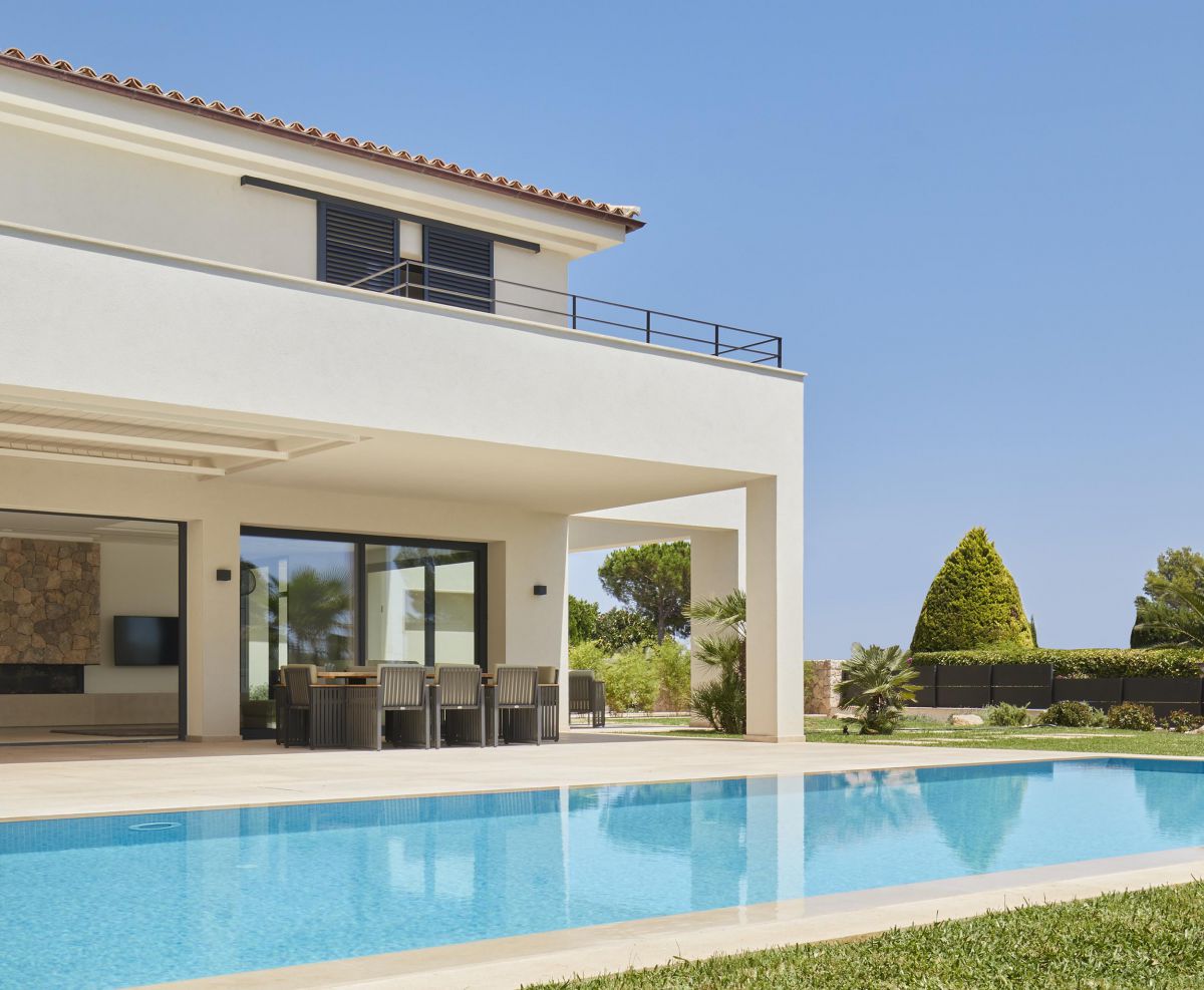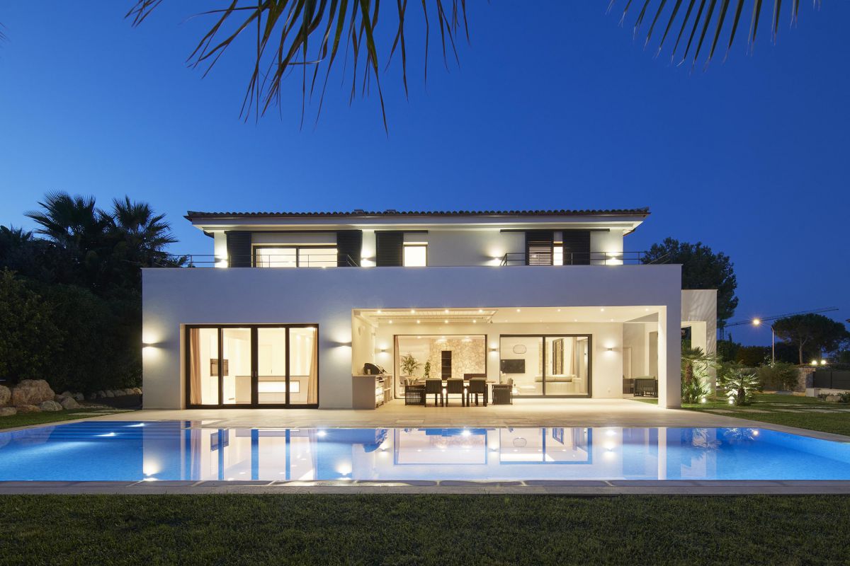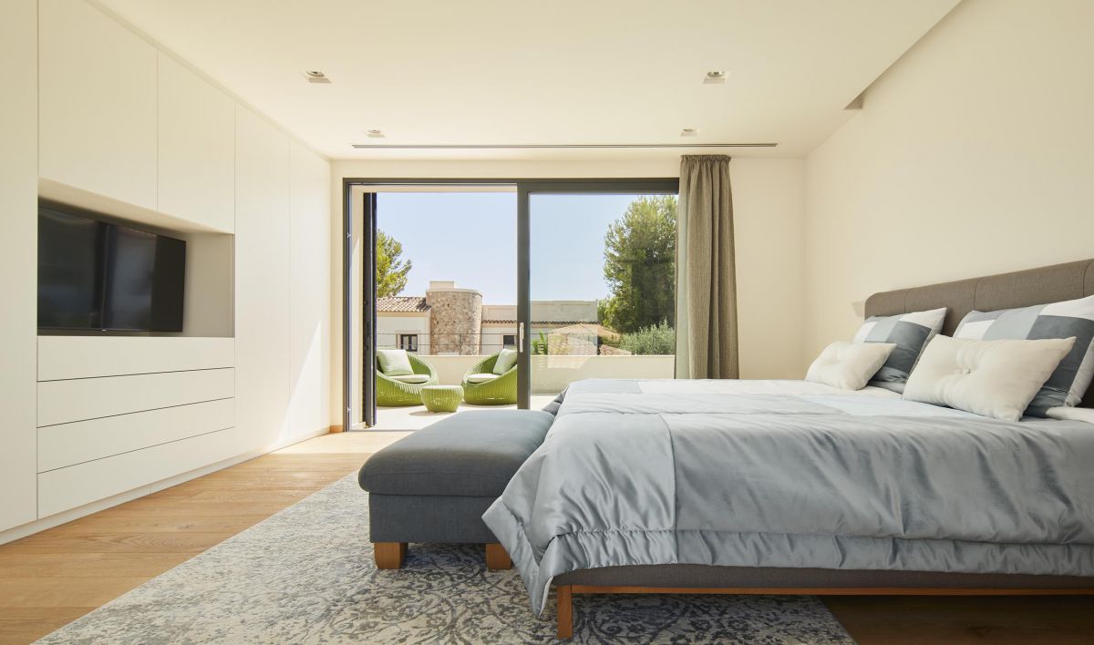 Santa Ponsa is the best known part of the municipality of Calvià. It is so popular thanks to its golf courses, shops, bars, restaurants and of course also thanks to its beautiful sandy beaches and views of the Malgrats Islands.Villa Sueño is located in a privileged location in Nova Santa Ponsa, close to the three golf courses and the exclusive marina in Mallorca. The combination of modern architecture, Mediterranean elements and carefully selected, high-quality materials characterize this exceptional property. The villa has 4 bedrooms and 4 bathrooms en suite.The terrace roof top of the property can be made into an outdoor kitchen with barbecue.On the upper floor is the master bedroom with bathroom en suite and another bedroom with bathroom en suite. Main floor is divided into 2 bedrooms with en-suite bathrooms, a spacious kitchen Leicht brand , garage for 2 cars and a salty pool. ther features of this first class property include: natural stone flooring, under floor heating with heat pump (with solar assistance), air conditioning h \/ c, equipped kitchen, double garage, saltwater pool, MallorcaSite, your real estate agency in Mallorca, recommends this property for its design, its views, its location, and its high-quality construction.