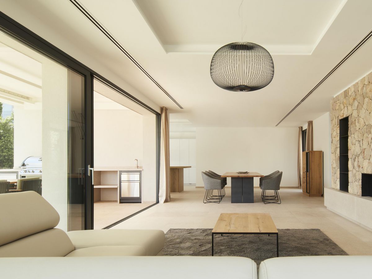 Beautiful newly built villa combining a modern style with wide open spaces with Mediterranean style with stone on the ground and on the facades. Located in the urbanization of Santa Ponsa a short distance from the golf courses and PortAdriano. An ideal property for families given its size and because it has a large flat plot to enjoy the terraces and the garden with pool.