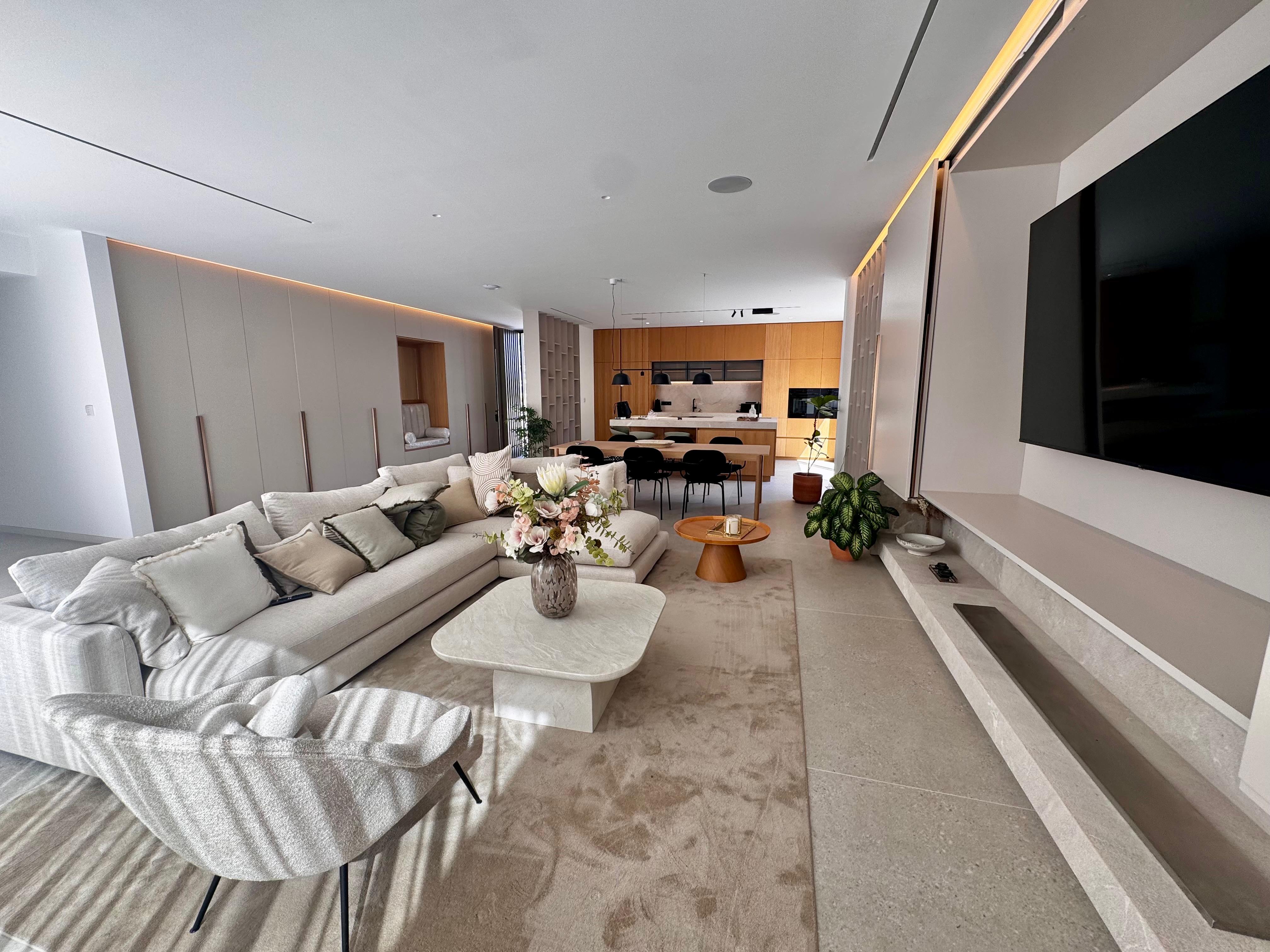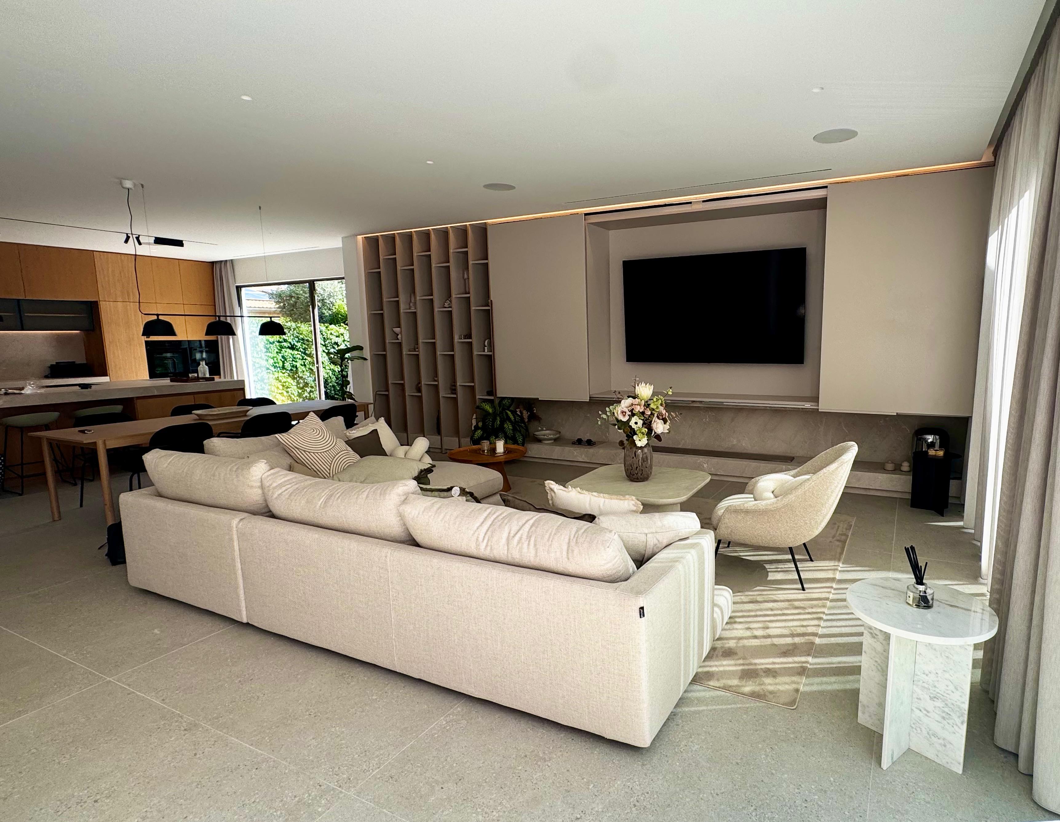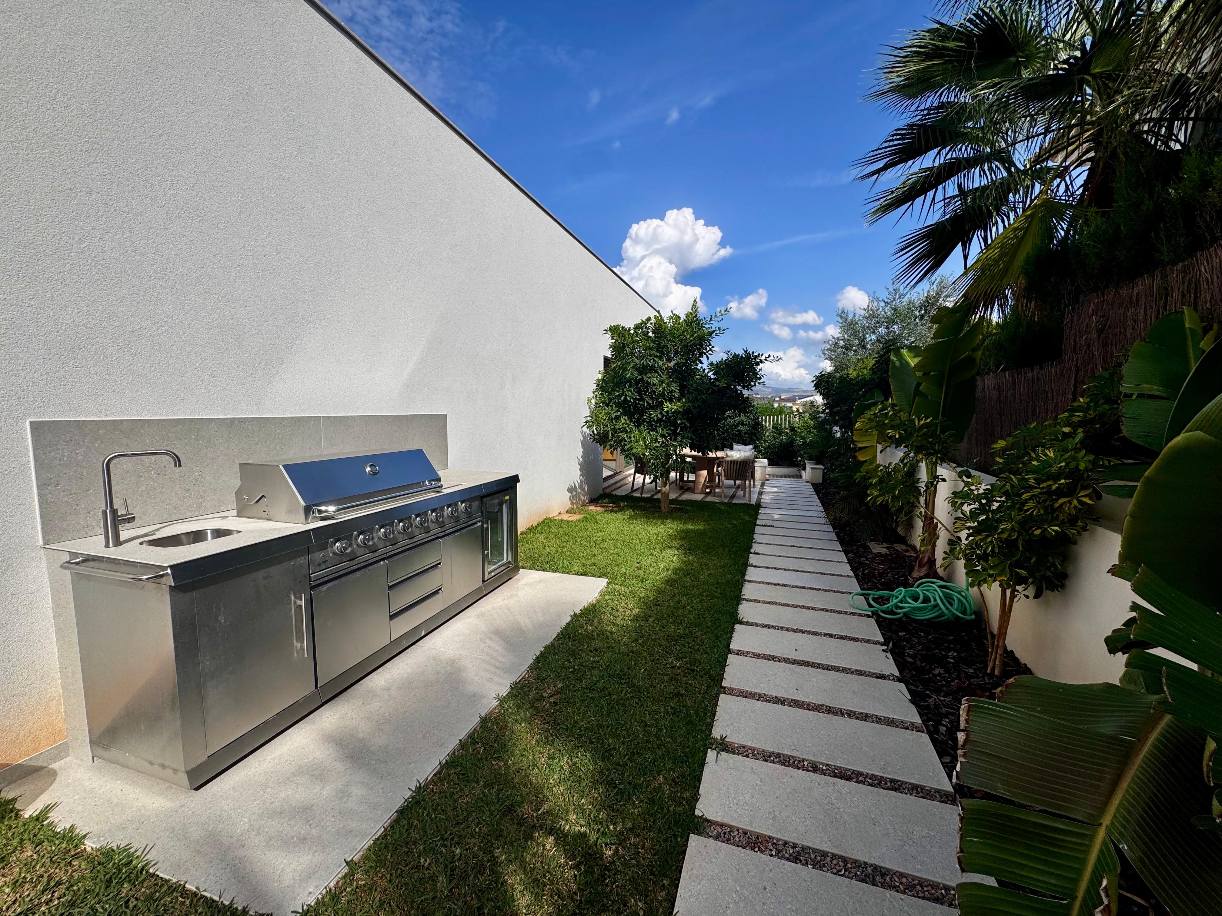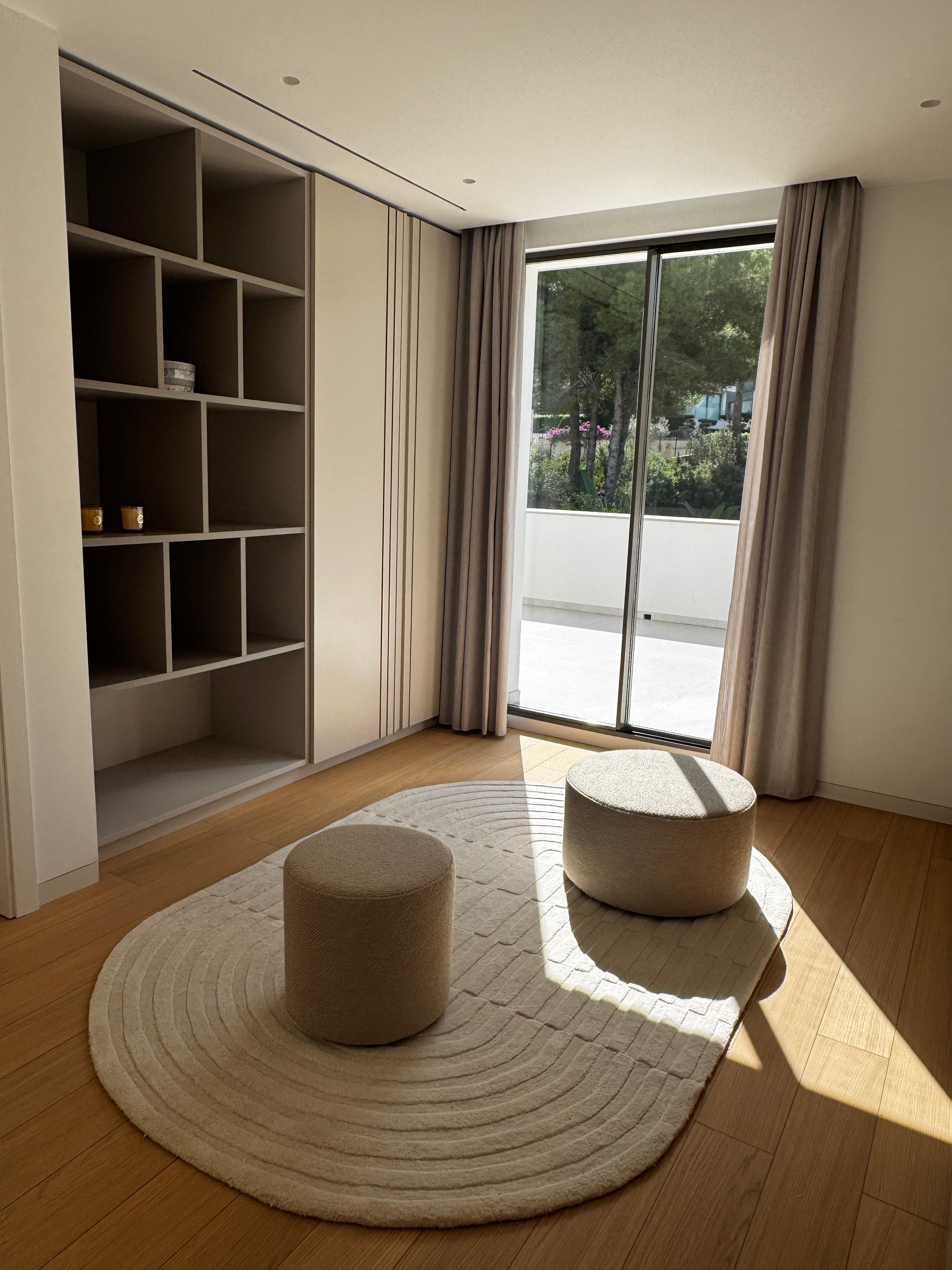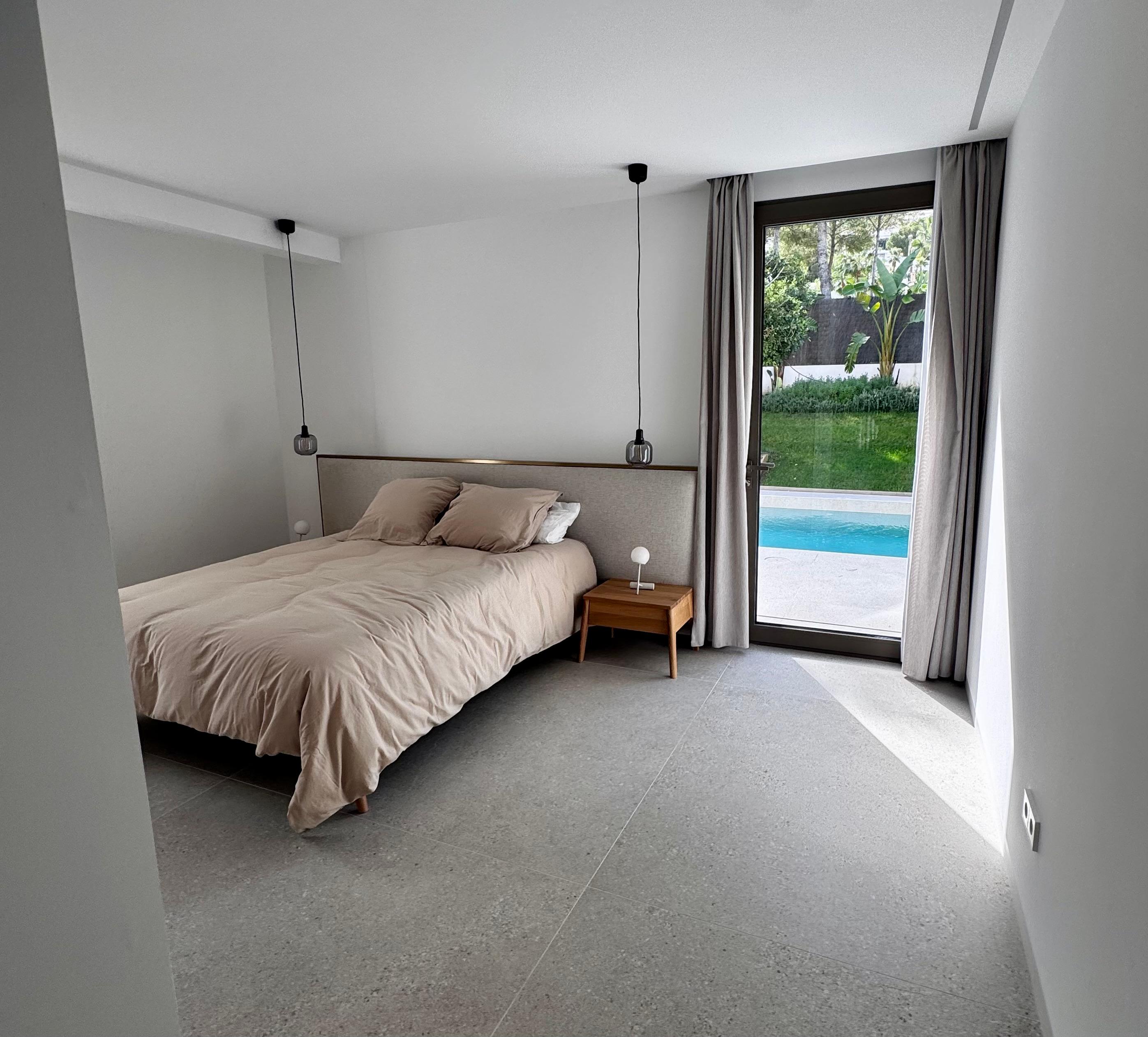 Exclusive contemporary design villa in one of the most sought-after areas of Santa Ponsa, just a short distance from golf courses, Pellicer beach, and the prestigious Port Adriano.Spread over three levels, this stunning residence stands out for its elegance and attention to detail. The top floor is entirely dedicated to the luxurious master suite, which includes a spacious bedroom, dressing room, private bathroom, and two sun-drenched terraces. On the ground floor, there are four additional bedrooms, three of them with en-suite bathrooms, all flooded with natural light thanks to the floor-to-ceiling windows that offer panoramic views of the lush garden, infinity pool, and mountain landscape.The seamless integration between indoor and outdoor spaces extends to the main living area, where the open-concept kitchen has been meticulously crafted from wood and natural stone and is equipped with high-end Gaggenau appliances. The harmony of materials continues into the living room, where a clever panel system hides the television when not in use, combining functionality and aesthetics. The panoramic windows showcase the tropical garden and infinity pool while providing access to a covered terrace, perfect for outdoor dining and relaxation. The pool also features a shallow \"beach area,\" ideal for children to play safely while adults unwind on the in-water loungers.On the lower level, the villa offers a fully equipped gym, a laundry area, and a spectacular home cinema with a 3-meter screen, 4K projector, and Dolby Atmos 9.2.2 surround sound system, delivering a top-tier cinematic experience.Additionally, the entire property is equipped with advanced smart home technology through the Control4 system, allowing lighting, climate control, and security to be managed via smartphone, ensuring convenience, energy efficiency, and a sophisticated lifestyle.MallorcaSite, your real estate agency in Mallorca, recommends this property for its proximity to the sea, its new construction, and high-quality finishes.
