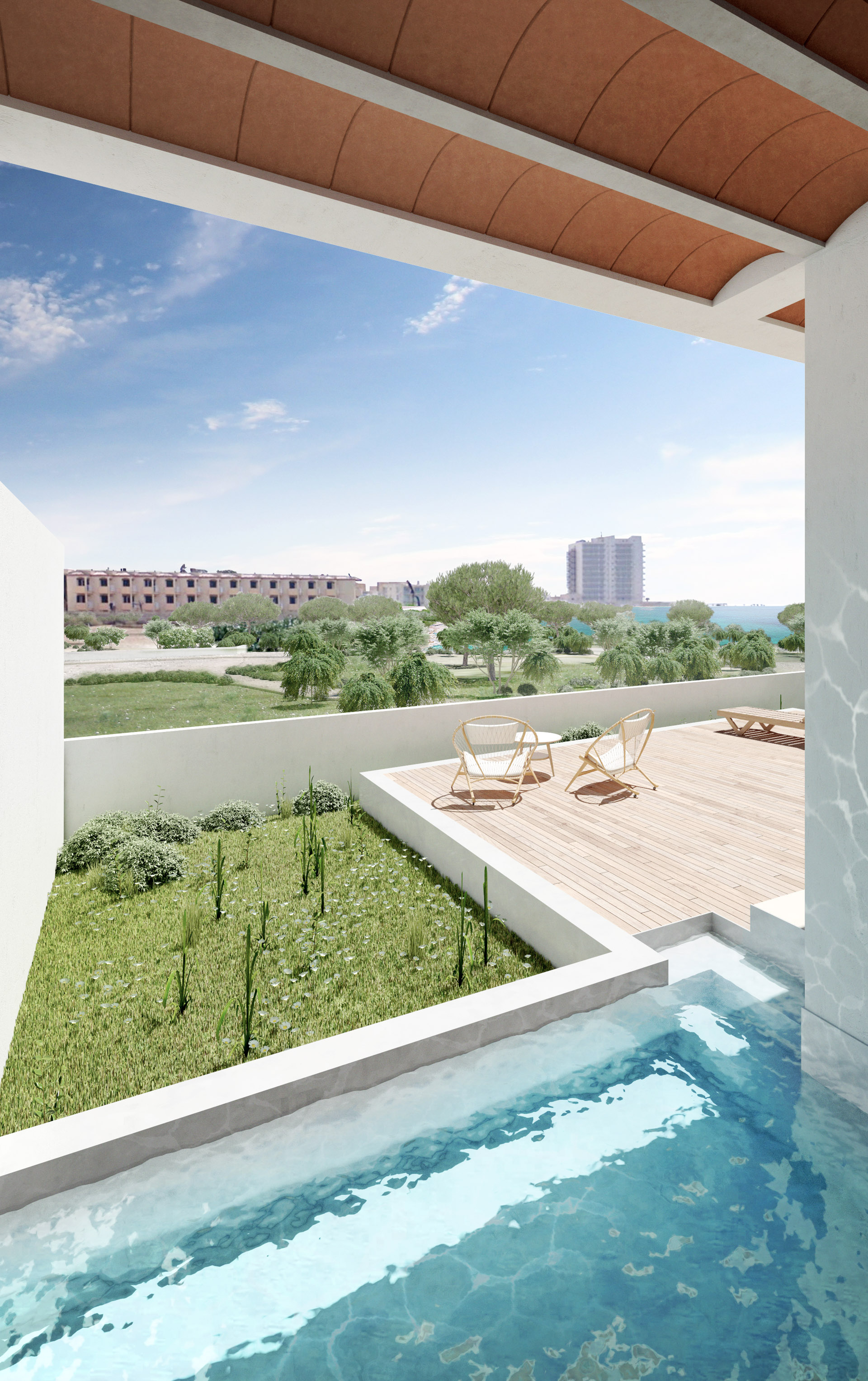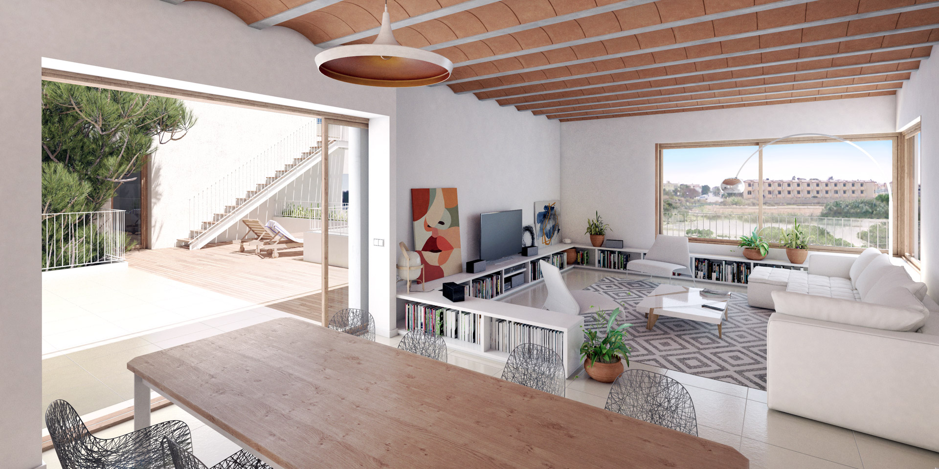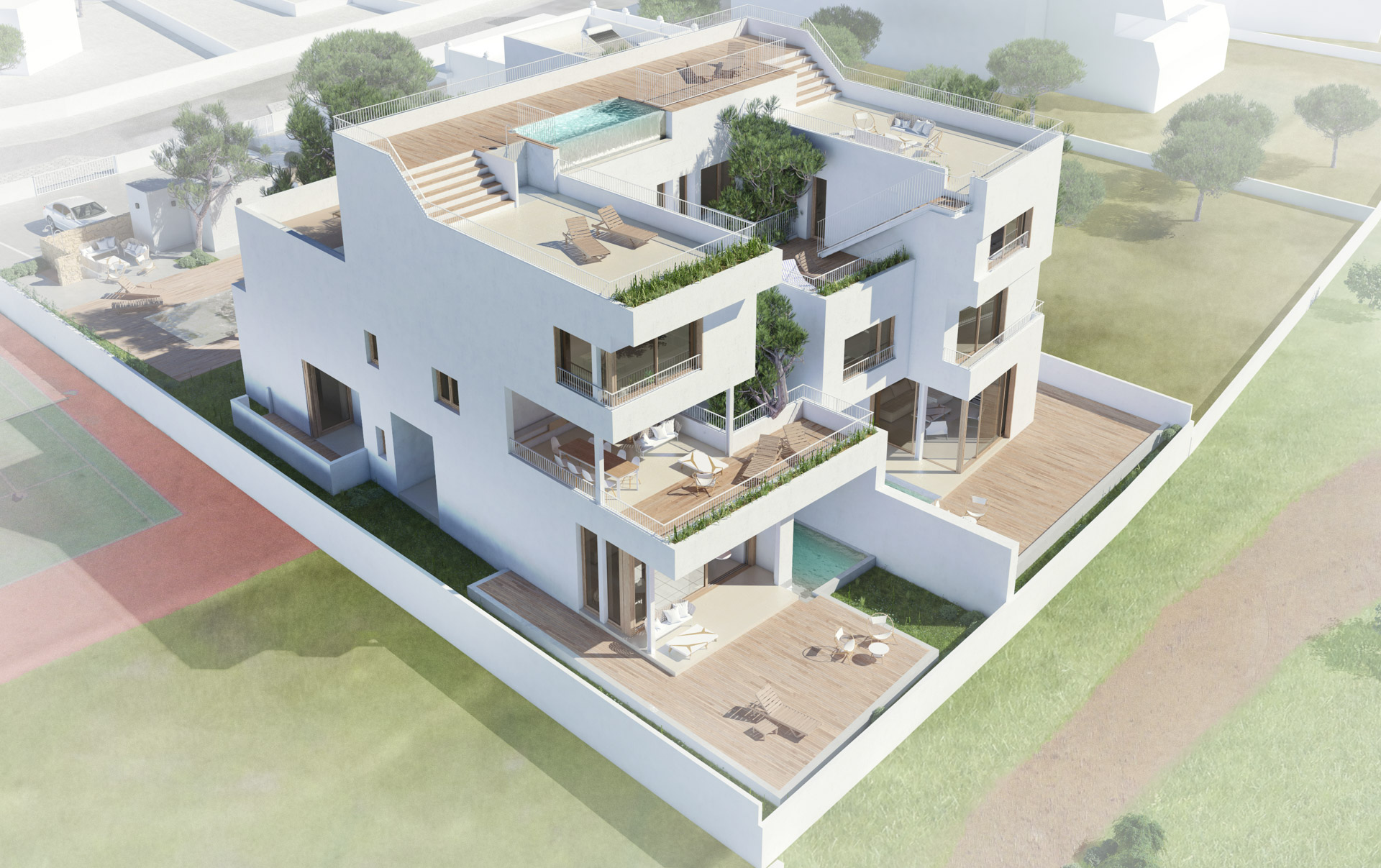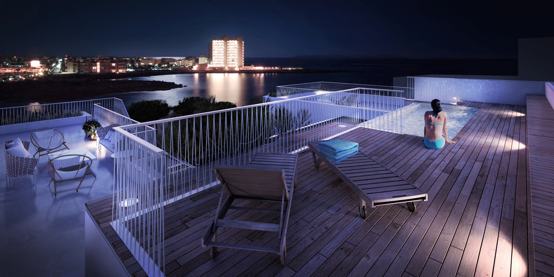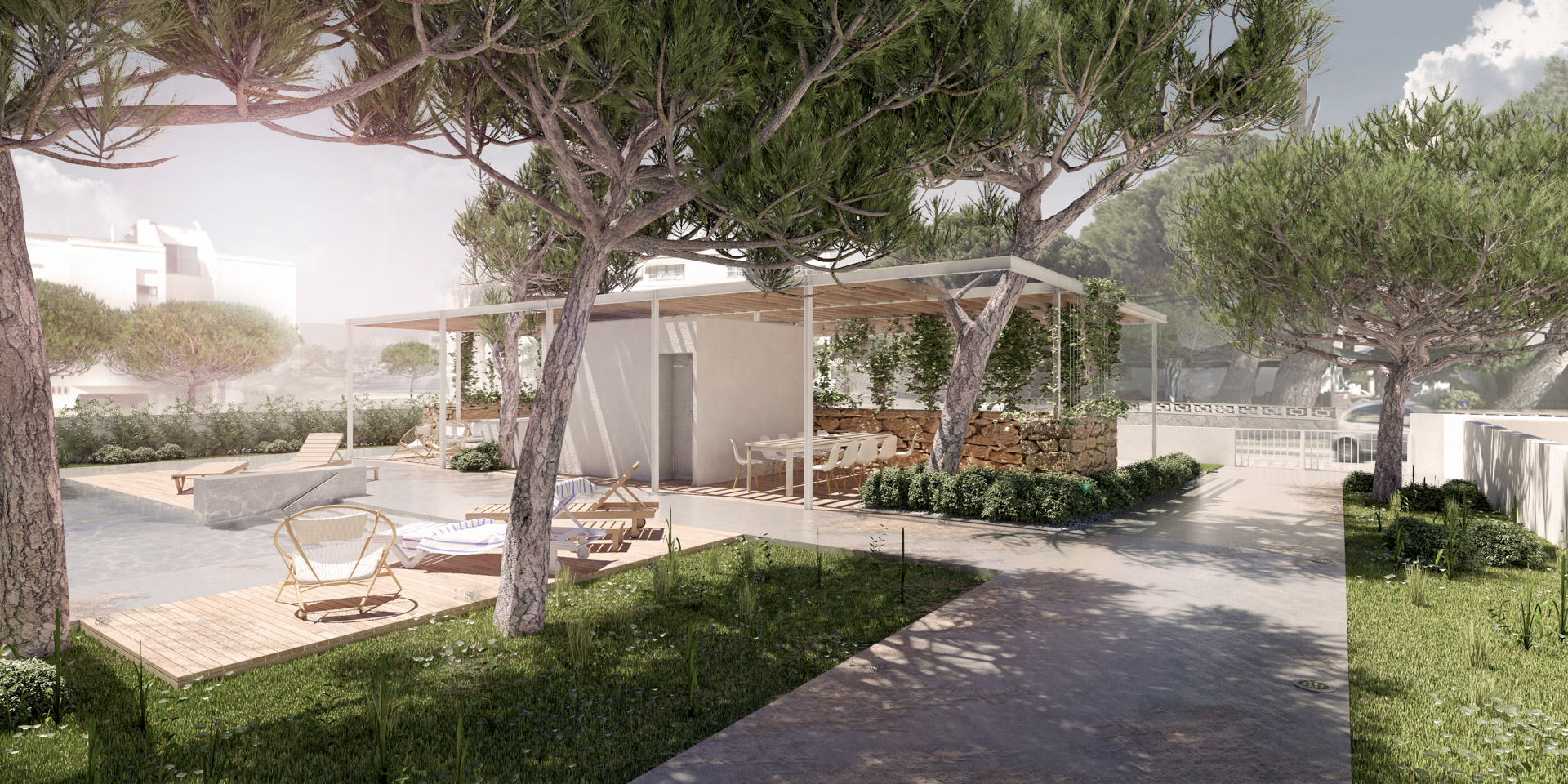 Modern architecture in perfect harmony with the natural environment of Colonia de Sant Jordi. An exclusive design project just 2 minutes from the beach of Es Trenc and the Mallorcan Salinas, 40 minutes from the airport and 50 minutes from the center of Palma.