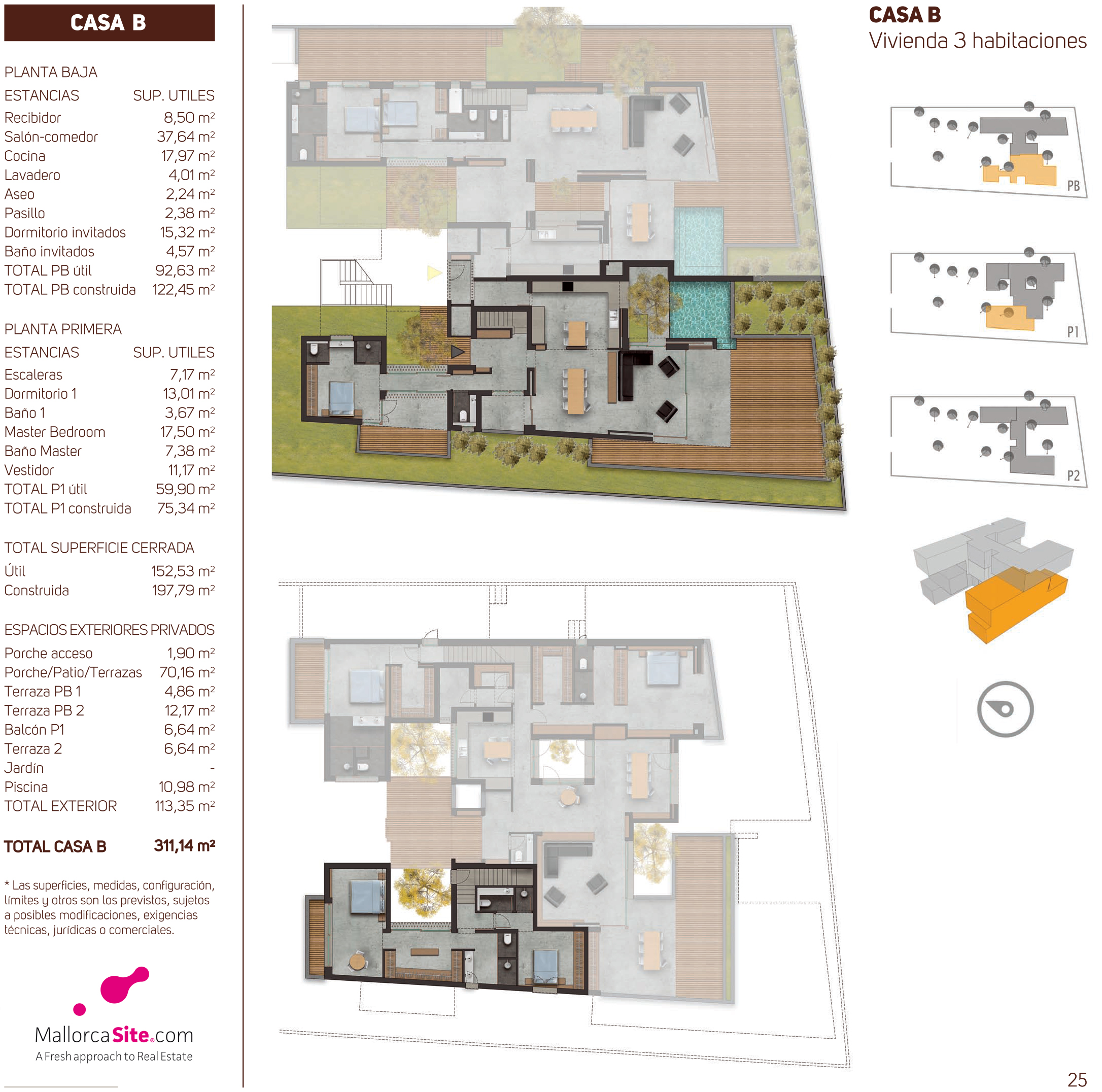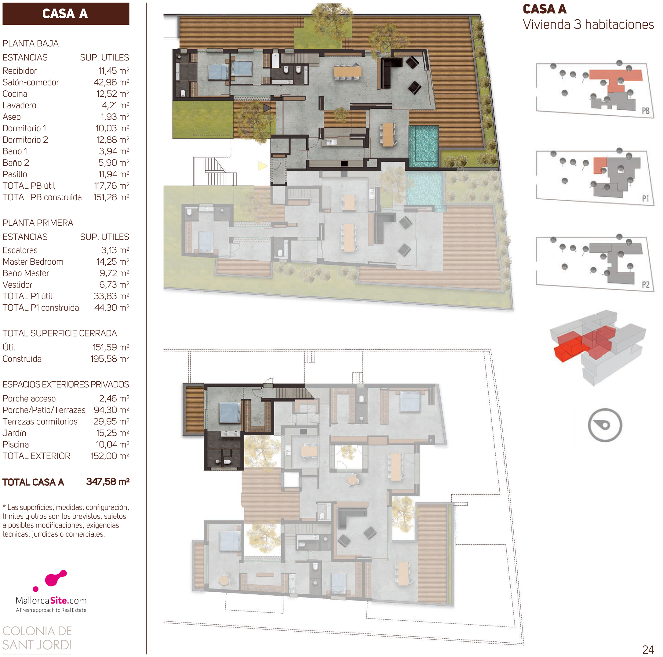 New development, duplex apartment built with a modern design, large terraces and gardens in a fantastic location in Colonia de Sant Jordi. Undoubtedly one of the most popular destinations among mallorcan people to enjoy their holidays due to its family atmosphere, restaurants, bars, with a beautiful boulevard by the sea and next to some of the most beautiful beaches of the island such as Es Trenc or Es Carbó. The development has views to the sea and is a few meters from the beach.The House has 198 m2 built and 102 m2 of terraces and has the following distribution: on the ground floor, with a large living room, kitchen, 1 bedroom and 1 bathroom and 2 bedrooms with en suite bathrooms on the first floor.The communal areas offer a garden area with terrace and pool of 45 m2, a clubhouse with changing rooms and a large parking area.No doubt an ideal place to spend your holidays in a small development with luxury homes.MallorcaSite, your real estate agency in Mallorca, recommends this property, for its location, for the spaciousness of the homes, for the views, for its design and for being built with high-end materials.