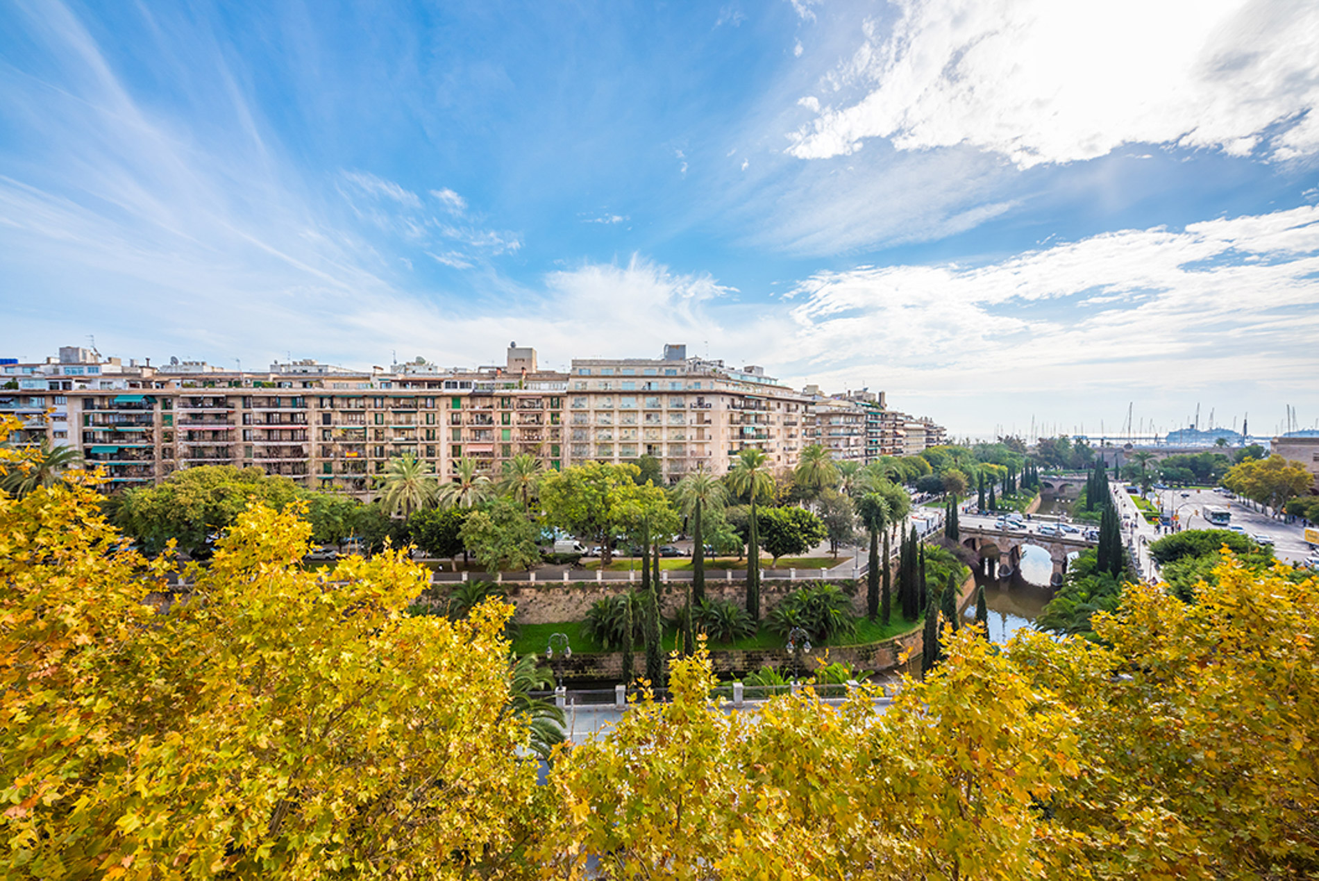 This spacious and modern apartment is located in Paseo Mallorca, one of the most popular streets in Palma city. It consist of a living space of 125 m2, with great open views over ”La Riera” and the harbour. The apartment has a bright open plan, with living area and kitchen. One large on suite bedroom with a walking closet and one guest bedroom with a separate bathroom, making it perfect for a holiday home or permanent residence.MallorcaSite, your real estate agency in Mallorca, recommends this property for its location and for its high qualities.