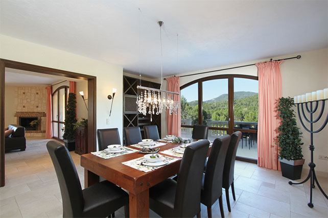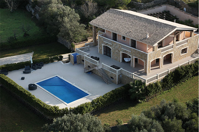 Esta fantástica villa ubicada en un maravilloso entorno a las afueras de Santa Maria esta rodeada de un gran jardin con piscina y pozo propio de 180 metros de profundidad. Esta forrada de piedra y tiene varias terrazas que rodean la casa. Está construida con materiales de la mas alta gama, con suelo radiante, aire acondicionado (frÍo/ calor), ventanas de madera con doble acristalamiento, suelo de piedra natural. Tiene conexión Gesa, conexión telefónica y satélite. Consta de 2 plantas y sótano, con un total de 5 dormitorios, 4 baños y un aseo de invitados. En la planta baja encontramos una entrada con doble techo, a la izquierda una cocina equipada con despensa y trastero, a la derecha un aseo de invitados, un comedor, amplio salón con chimenea y acceso al jardin y terrazas. Al fondo se encuentra un dormitorio con baño en suite y vestidor. En la segunda planta encontramos 4 dormitorios, 2 con acceso a la terraza y 2 baños. La planta sótano está dividida en apartamento de invitados, garaje para 2 coches, sauna y spa con zona wellness.