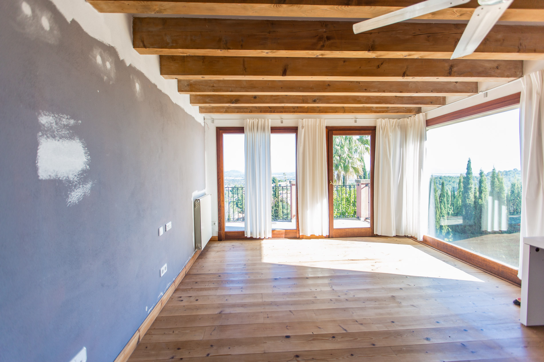 Amplio chalet situado en lo alto de una colina con vistas espectaculares a las montañas, totalmente privada y tranquila, a 10 minutos en coche de Palma, en un solar de 3,000 m2 en Esporles. La vivienda cuenta con la zona de día en la primera planta, con un gran salón, comedor, amplia cocina, 2 habitaciones y 1 baño, así como un amplio porche ideal para disfrutar de las vistas. En la planta inferior se encuentra en el resto de dormitorios, 6 en total y 5 baños. Además cuenta con un gran sótano que se necesitaría terminar de construir en el que se podría hacer un gimnasio, sala de juegos, sala de cine,... La casa cuenta con una piscina en la planta inferior y se alquila sin muebles. MallorcaSite. su agencia inmobiliaria en Mallorca, le recomienda esta propiedad por su amplitud, por su privacidad, por su tranquilidad y por las vistas.