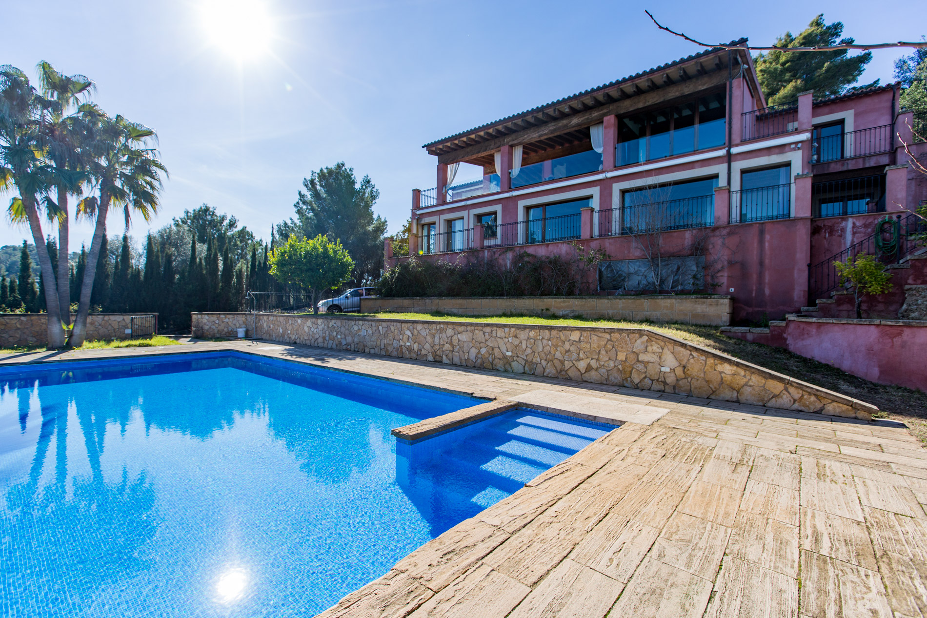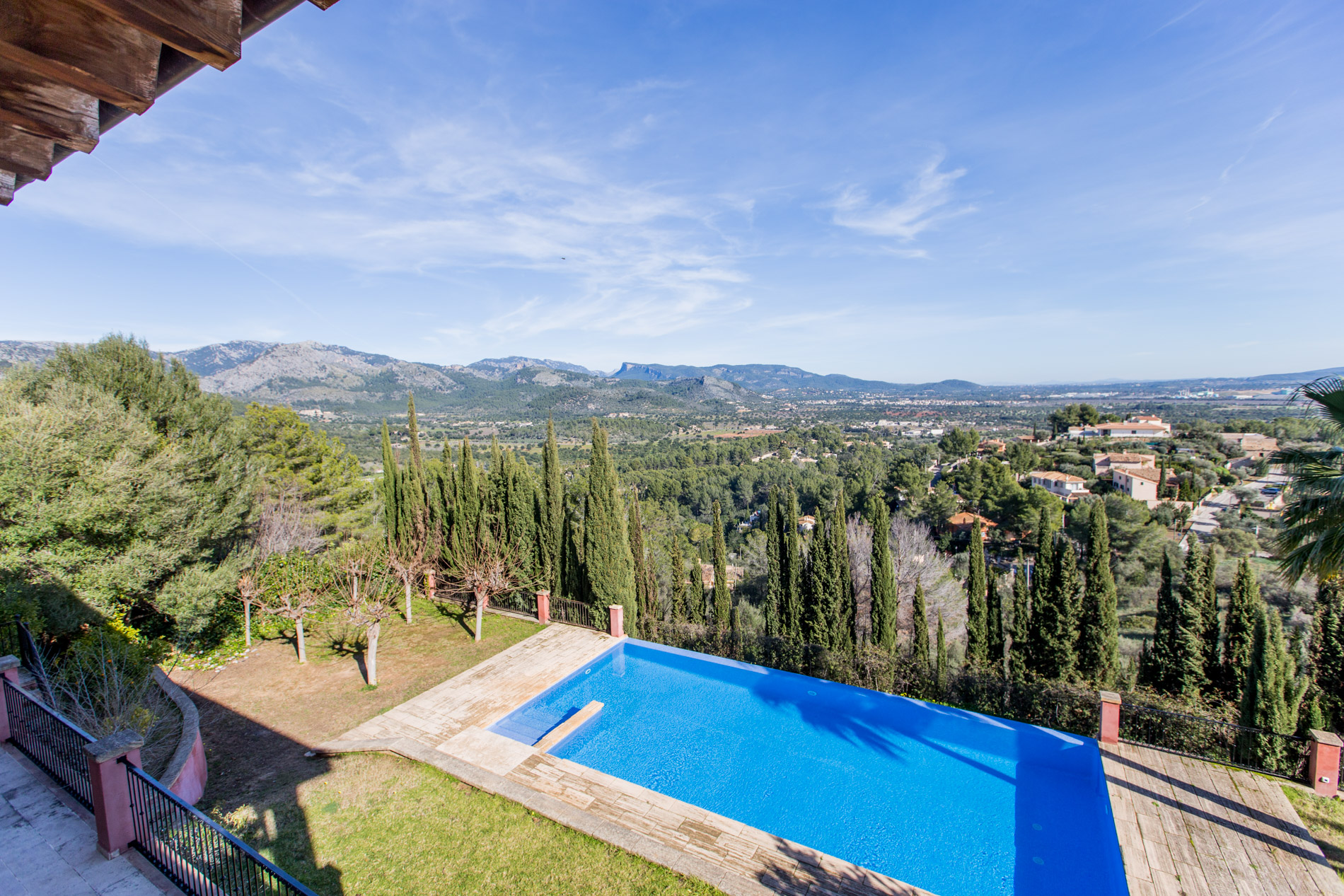 Amplio chalet con espectaculares vistas al valle de Esporles, situado en la zona residencial de Ses Rotgetes, a tan sólo 5 minutos de Esporles y 10 minutos en coche de Palma.