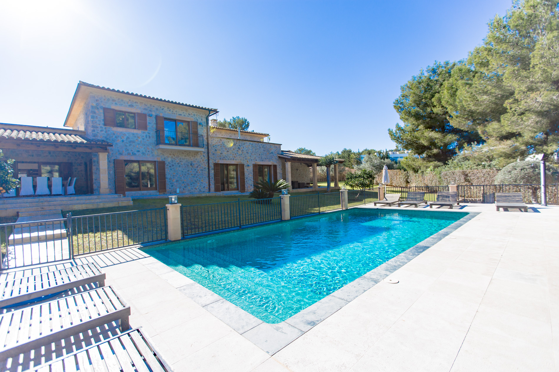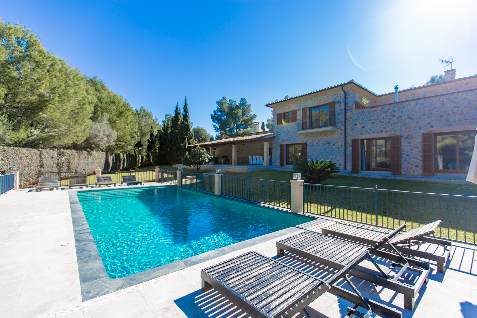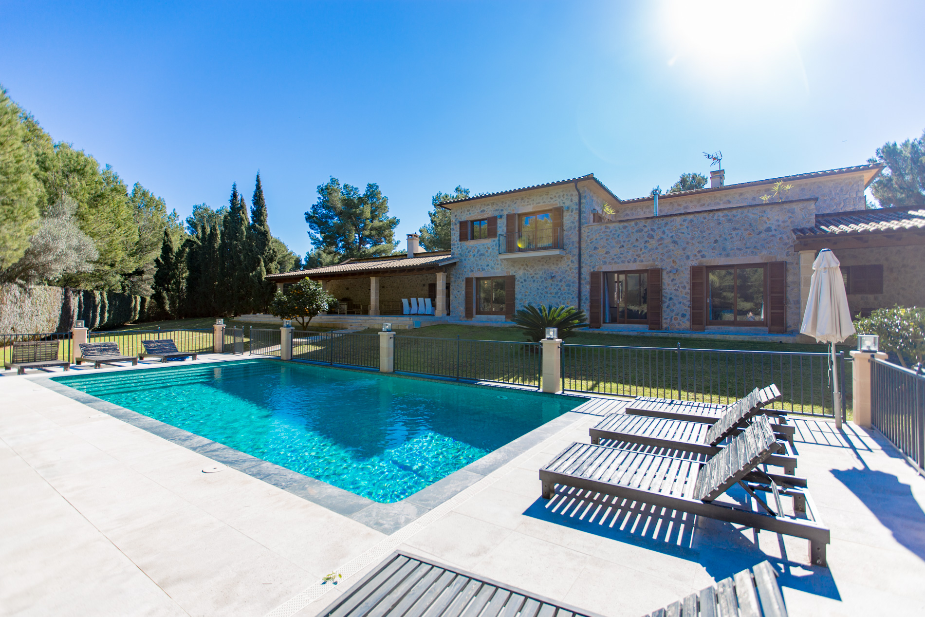 Espectacular villa con acabados de inmejorable calidad, amplia, muy luminosa y combinado estilo rústico con las modernidades de hoy en día. La casa cuenta con grandes ventanales que le dan mucha luminosidad. Localizada en la urbanización de Nova Santa Ponsa a 18 Km. de Palma, junto a la zona de Campos de Golf y del nuevo puerto ampliado de Port Adriano. En la planta baja se encuentra un vestíbulo. A mano derecha del recibidor hay un gran despacho. En frente hay un gran salón con chimenea con acceso a uno de los 2 porches con los que cuenta la vivienda. A un lado del salón tenemos el comedor y una amplia cocina (con lavadero y despensa) totalmente amueblada que dan a otro gran porche con cocina exterior que da a la piscina y el jardín. Al otro lado del recibidor, se encuentran tres amplios dormitorios con baño, vestidor y acceso al jardín. En la primera planta encontramos dos grandes suites muy espaciosas. Ambas cuentan con baño en suite y acceso a una amplia terraza con bonitas vistas. El dormitorio principal cuenta con baño en suite, sala de estar y vestidor, así como acceso a otra terraza privada. MallorcaSite, su agencia inmobiliaria en Mallorca, recomienda esta propiedad por su ubicación, su estilo y sus calidades.