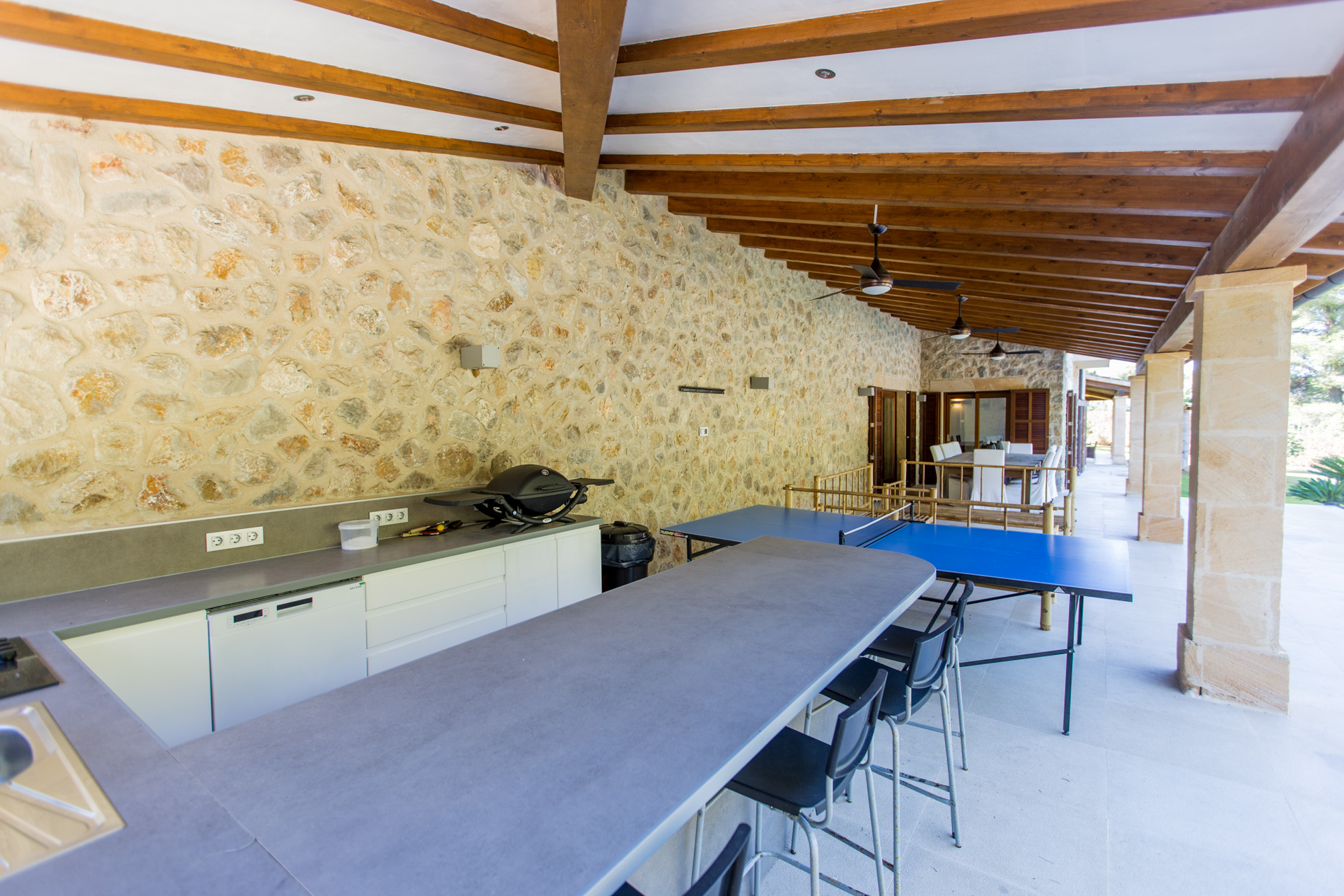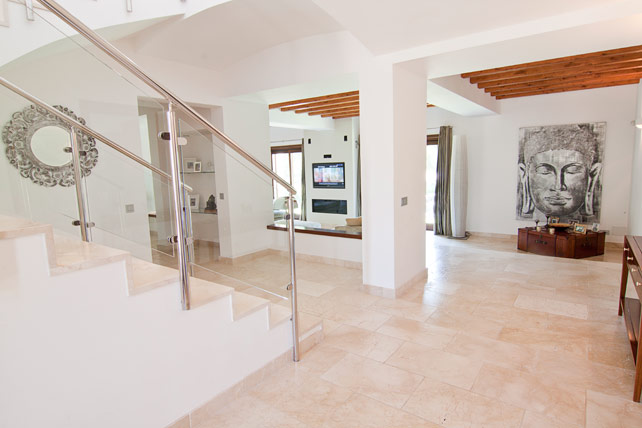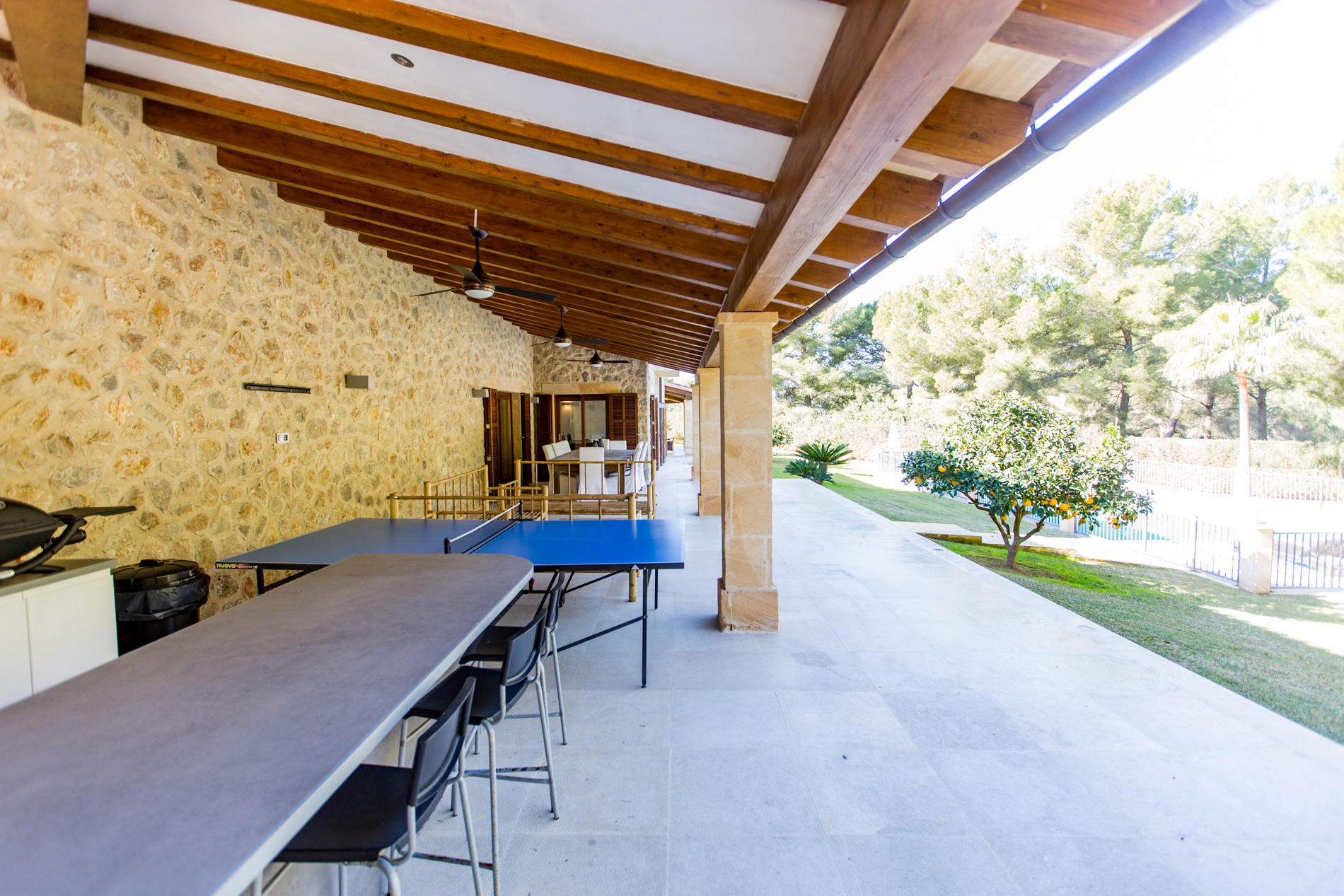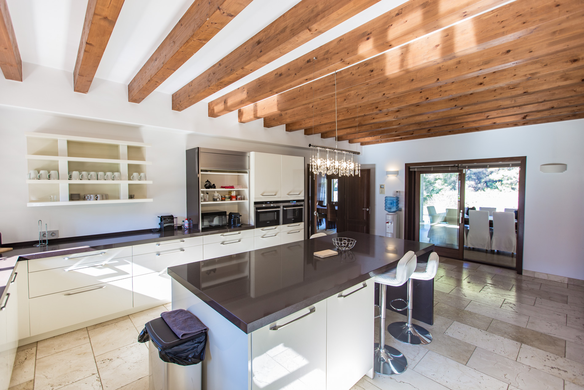 Espectacular villa con acabados de inmejorable calidad, amplia, muy luminosa y combinado estilo rústico con las modernidades de hoy en día. La casa cuenta con grandes ventanales que le dan mucha luminosidad. Localizada en la urbanización de Nova Santa Ponsa a 18 Km. de Palma, junto a la zona de Campos de Golf y del nuevo puerto ampliado de Port Adriano. En la planta baja se encuentra un vestíbulo. A mano derecha del recibidor hay un gran despacho. En frente hay un gran salón con chimenea con acceso a uno de los 2 porches con los que cuenta la vivienda. A un lado del salón tenemos el comedor y una amplia cocina (con lavadero y despensa) totalmente amueblada que dan a otro gran porche con cocina exterior que da a la piscina y el jardín. Al otro lado del recibidor, se encuentran tres amplios dormitorios con baño, vestidor y acceso al jardín. En la primera planta encontramos dos grandes suites muy espaciosas. Ambas cuentan con baño en suite y acceso a una amplia terraza con bonitas vistas. El dormitorio principal cuenta con baño en suite, sala de estar y vestidor, así como acceso a otra terraza privada. MallorcaSite, su agencia inmobiliaria en Mallorca, recomienda esta propiedad por su ubicación, su estilo y sus calidades.
