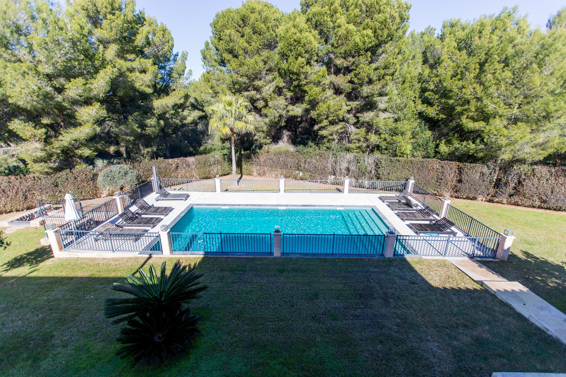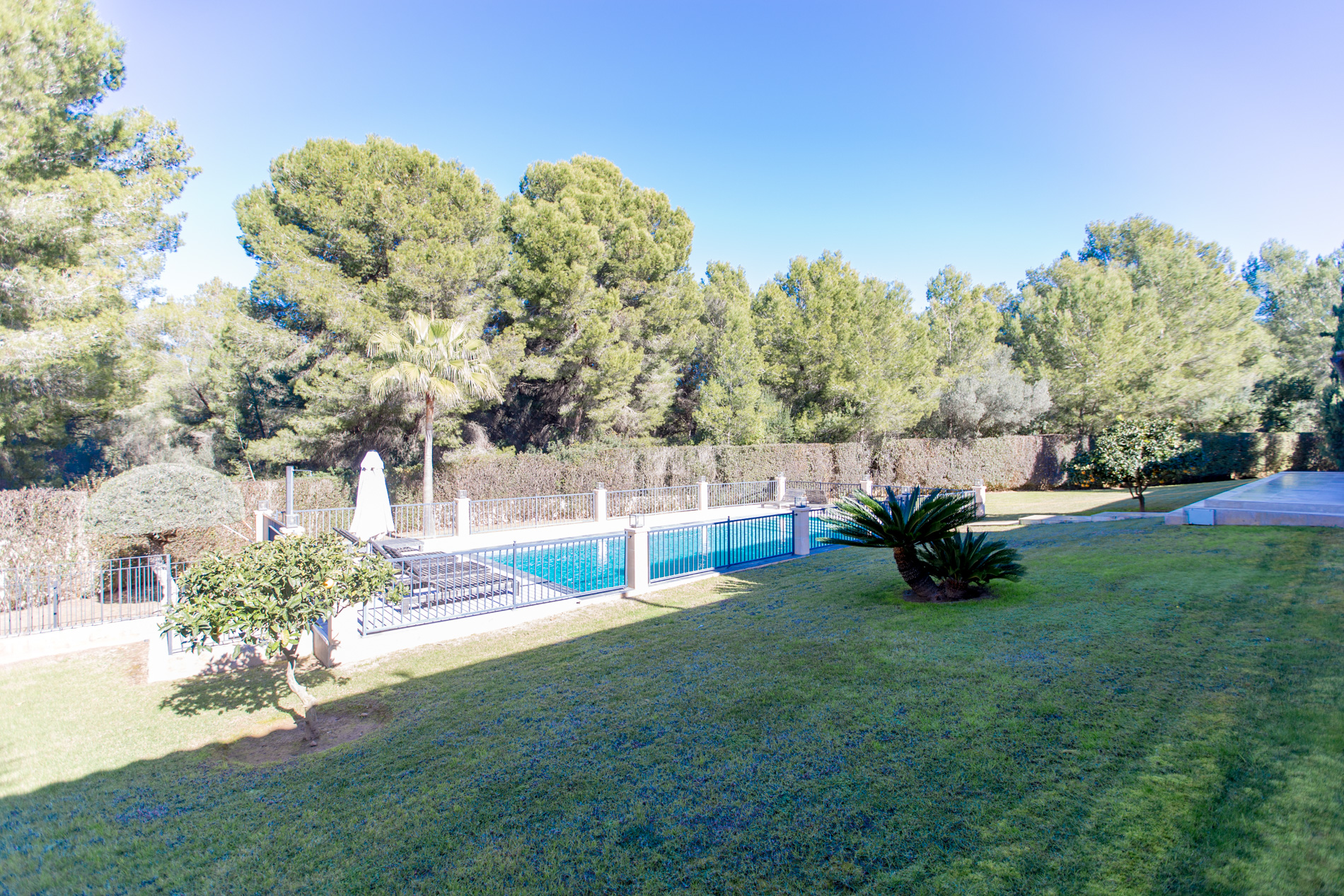 Villa impresionante que linda directamente con la zona verde junto a uno de los golf de Santa Ponsa con vistas a las montañas. Solar de 2.693 m2 edificada 568 m2, 300 m2 de terrazas, 5 dormitorios, 5 baños, aseo, despacho, gran salón con chimenea, gran cocina amueblada, lavadero, despensa, comedor, zona barbacoa con cocina, vestidor y baño bajo piscina, gran piscina, amplias terrazas, gran jardín, garaje para 2 coches.