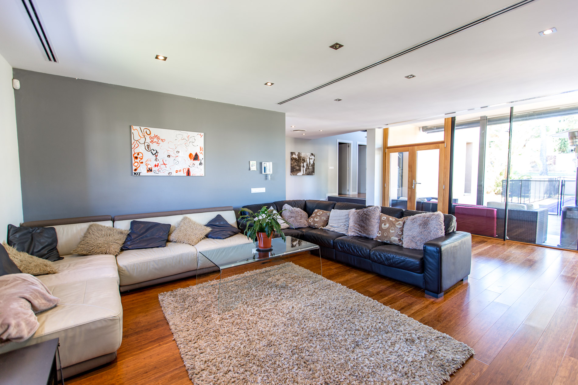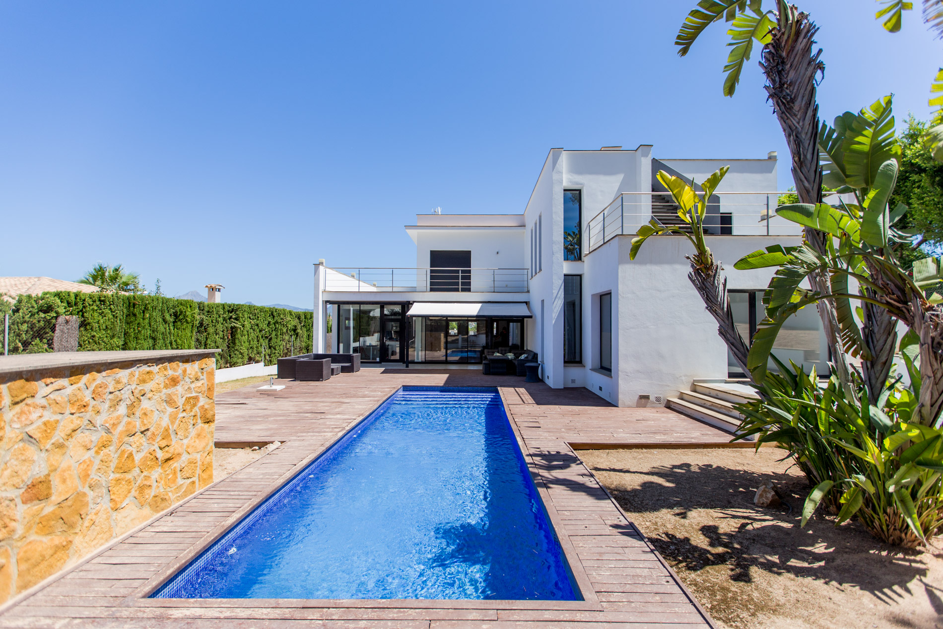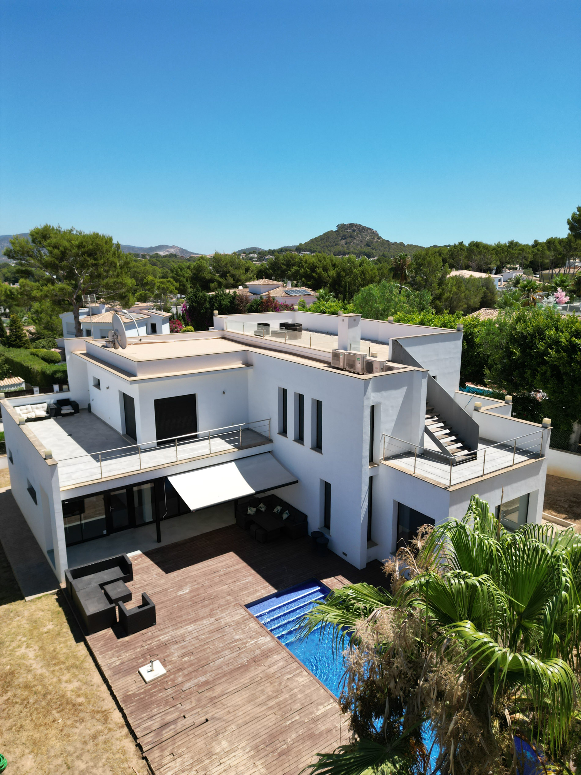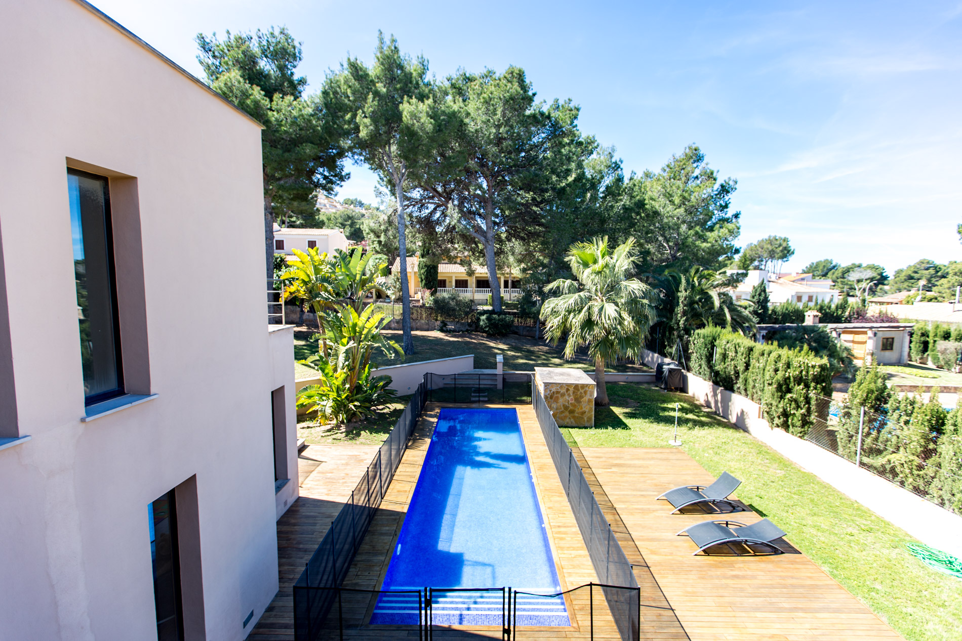 Villa en alquiler de estilo minimalista situada en un una zona tranquila en Santa Ponsa, con amplios espacios en su interior y exterior, mucha luz, ideal para familias con niños.