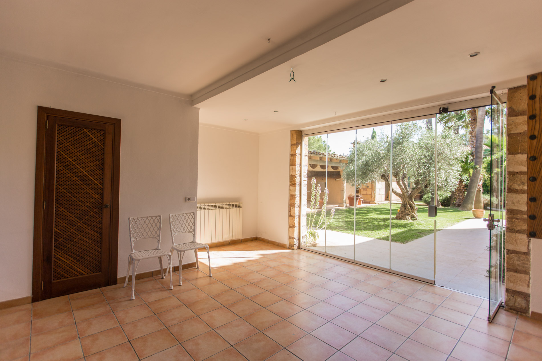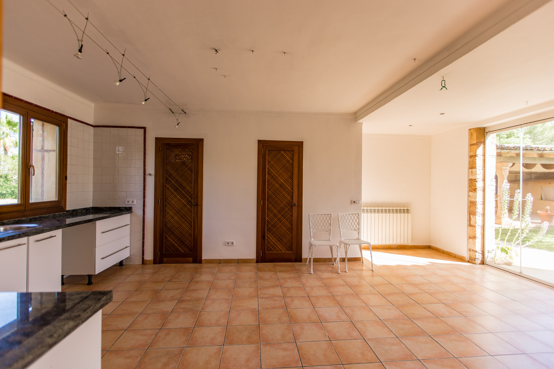Entre Bisissalem y Sencelles se encuentra el pequeño y tranquilo pueblo de Biniagual donde encontramos esta casa. A través de una entrada privada se accede a la vivienda, con un pequeño recibidor con baño, que separa en 2 la zona de día. A mano izquierda hay un comedor con chimenea y una amplia cocina con salida al jardín. Al otro lado del recibidor hay un amplio salón con chimenea y acceso al porche que da al jardín. La casa cuenta con un precioso jardín rodeado por edificaciones: la casa principal, un gran porche de 90 m2 ideal para disfrutar de celebraciones con la familia y amigos, un trastero y la coladuría. Además cuenta con unos 1.500 m2 de terreno con árboles frutales y espacio para jugar los niños. En la primera planta hay 3 amplios dormitorios, 2 baños y un despacho. Mallorcasite, su agencia inmobiliaria en Mallorca le recomienda esta propiedad por su espacio, por estar en buen estado, por su privacidad y tranquilidad.