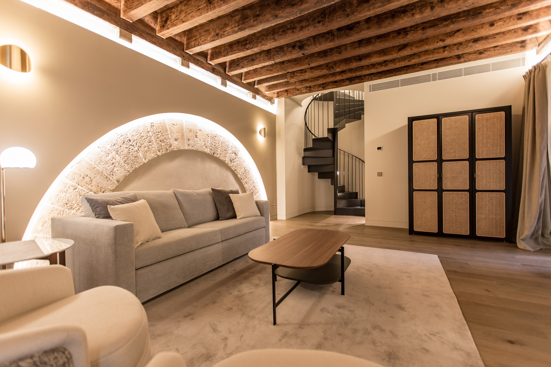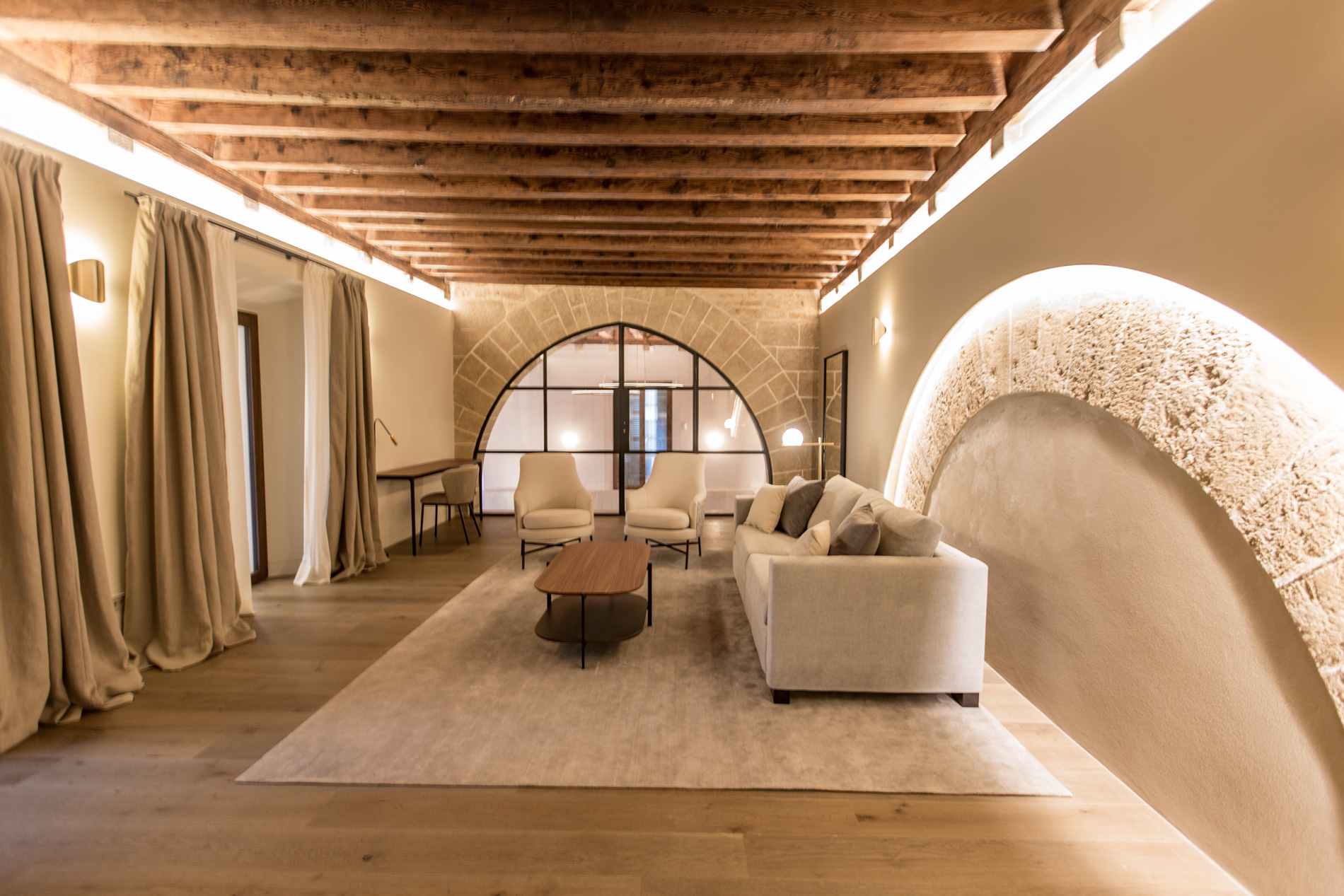 SA CLASTRA, planta noble duplex dentro del Palacio Can Serra Cavallería en el Casco antiguo de Palma en modalidad de alquiler de larga temporada en este palacete del siglo XIV. Vive en un Palacio del alquiler y experimenta la historia y disfruta de los extras comunitarios exclusivos que la vivienda aporta: spa, bodega, apartamento comunitario.