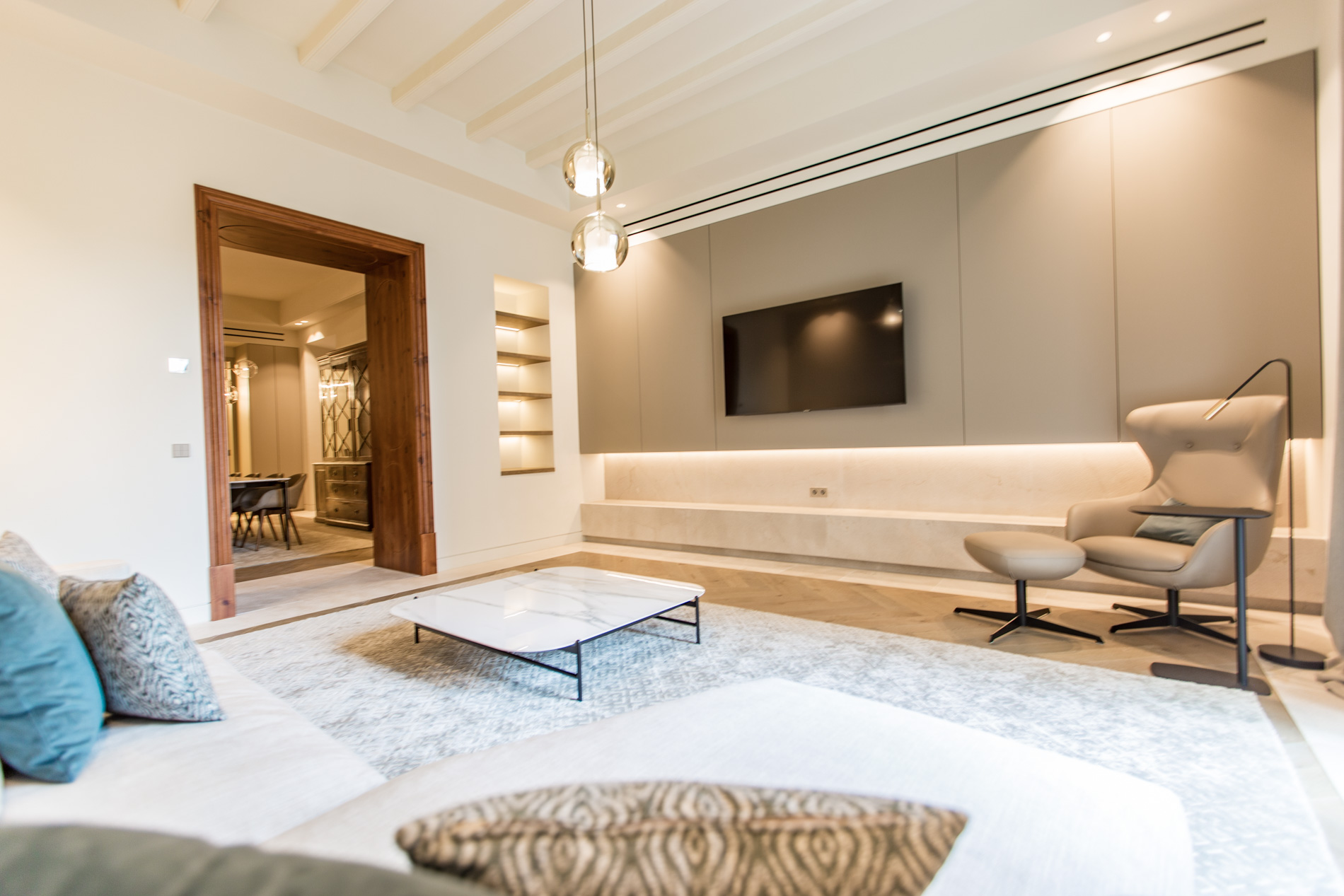 Sa Clastra, experimenta el lujo de la historia desde tu vivienda de alquiler de larga temporada en Palma de Mallorca, vivienda en planta noble duplex con 246,5 m2 divididos en 174,50 m2 en planta primera, 40m2 en entresuelo, balcón de 6 m2 y patio de 26m2, 3 habitaciones, 3 baños y un aseo. Vive en un Palacio Comunidad de lujo, vive como en un palacio con SPA (Sauna, piscina, hamacas zona de relax), una bodega con zona individualizada para botelleros individuales y wine tasting area o degustación de vinos en zona común. El casco antiguo de Palma, más allá de sus impresionantes casas y palacetes, cuenta con un valor añadido que en muchos lugares no se puede comprar: la historia, testigo a través de los siglos de tanta riqueza interior y exterior. Un ejemplo de esta majestuosidad sencilla, hermosa, mediterránea es el antiguo palacete de Can Serra de Cavalleria se erige como uno de los edificios más emblemáticos de Palma. Elementos como su arco gótico apuntalado ojival, del siglo XIV, el techo artesonado del siglo XV, o los frescos en la última planta, perfectamente conservados y que representan barcos medievales, son joyas solo al alcance de personas que las sepan apreciar y deseen disfrutar de este trozo de historia de Palma, a la vez que viven rodeados de todas las comodidades de una casa de alto standing. Alquiler exclusivo único en Mallorca