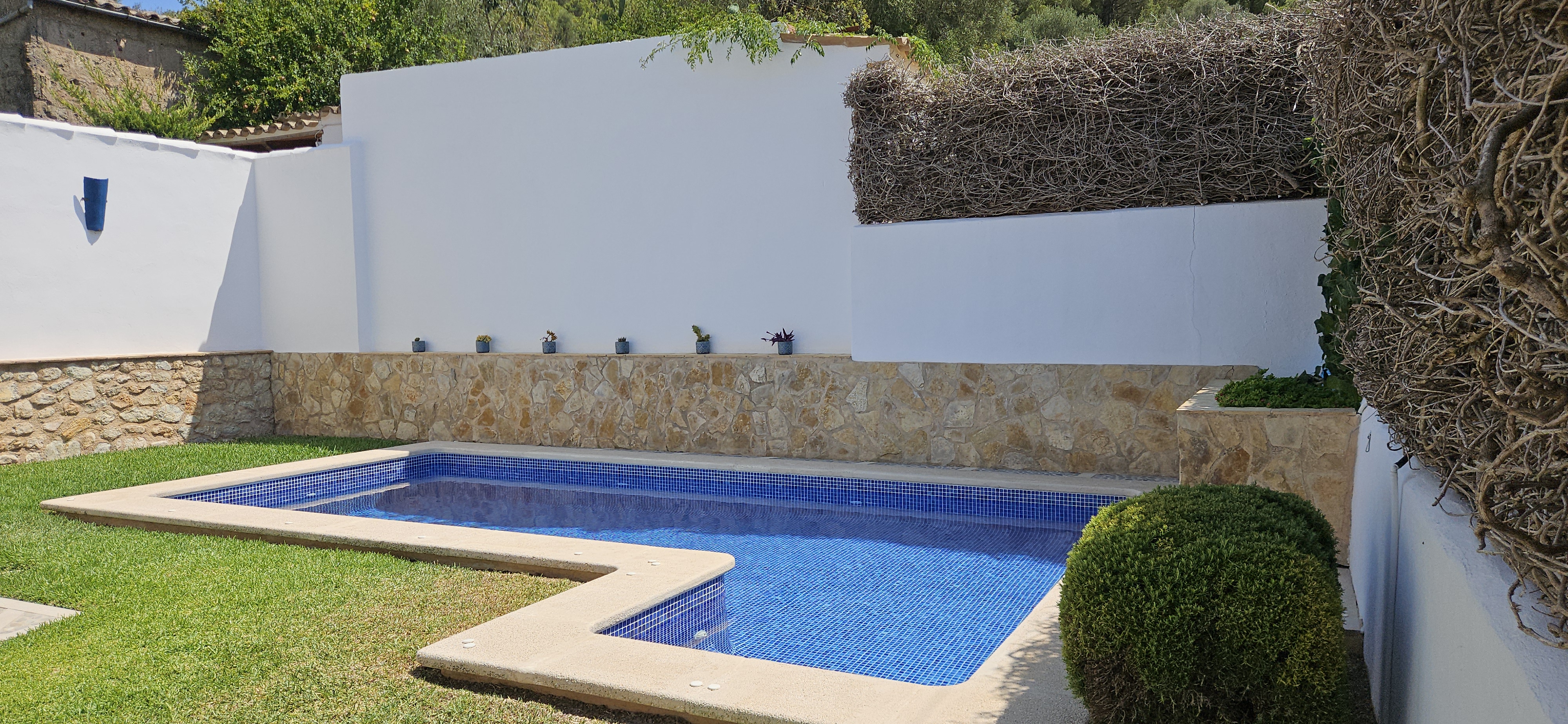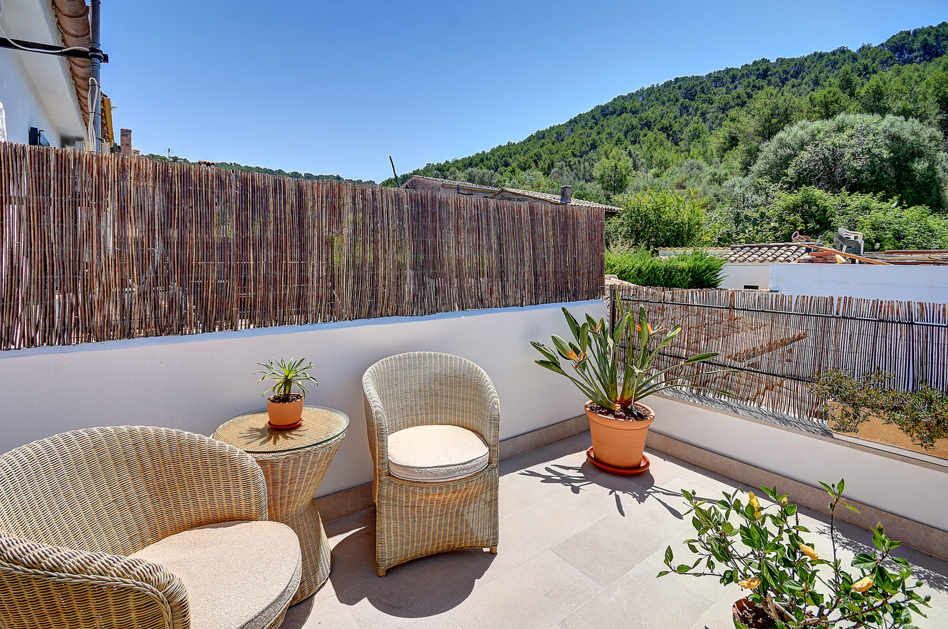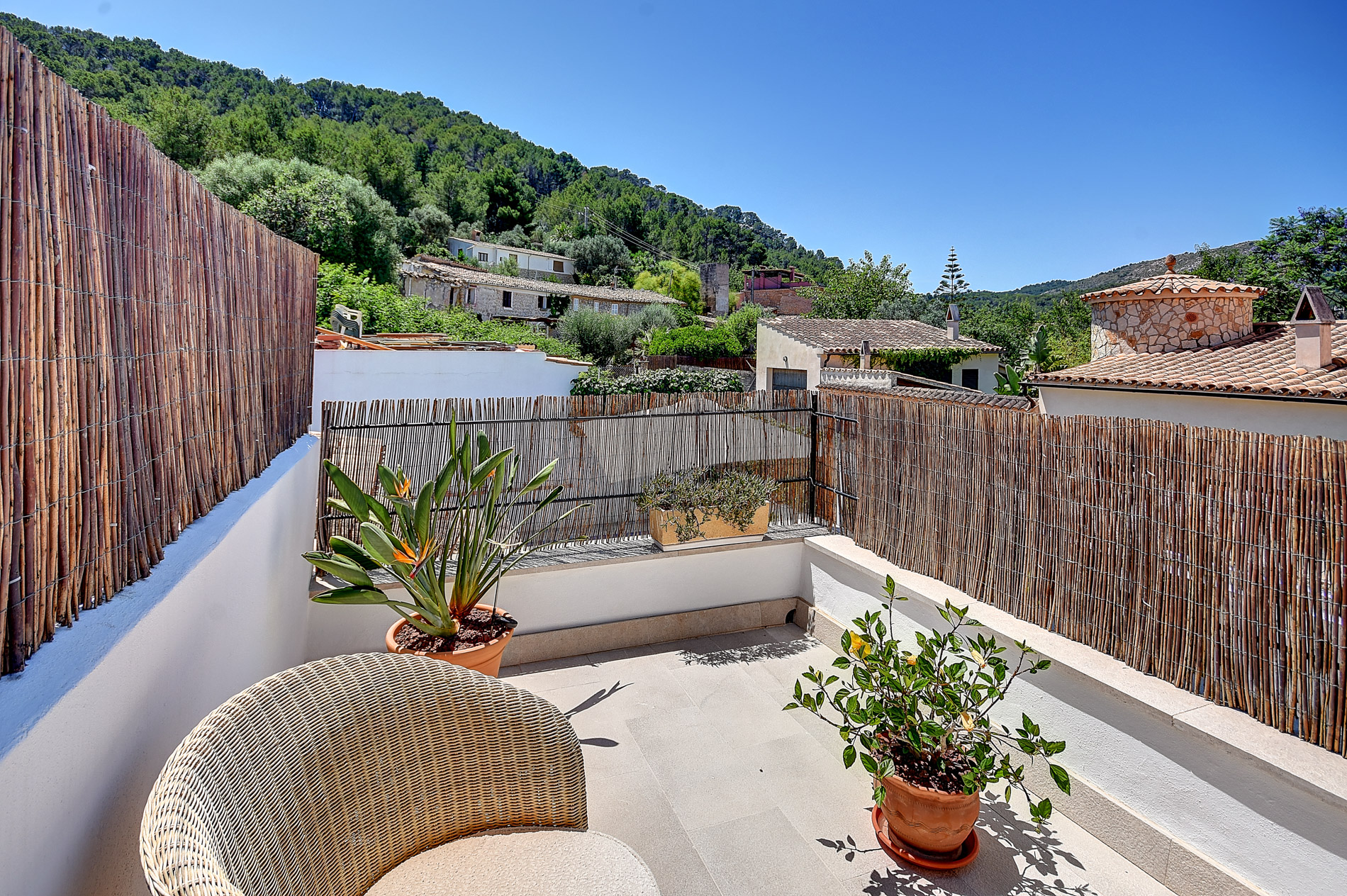Esta hermosa y encantadora casa adosada está ubicada en el corazón del pintoresco pueblo de S'Arraco en el suroeste de Mallorca. La casa está ubicada en una parcela de unos 202 m2 orientada al sur y tiene una superficie construida de unos 154 m2. Ha sido reformada siempre con la idea de mantener el carácter de una casa mallorquina. La casa ofrece 3 dormitorios, 2 baños (1 en suite) y una amplia habitación que se puede utilizar como cuarto dormitorio, vestidor o oficina. Además hay varios trasteros. Lo más destacado es el jardín soleado con la piscina privada de agua salada y terrazas con espacio para cenar y relajarse.La azotea ofrece hermosas vistas abiertas. Otras características incluyen: Chimenea, aire acondicionado frío/calor en el salón/comedor y en el dormitorio principal, calefacción por infrarrojos “Redtherm” en toda la casa, piscina de agua salada, ducha exterior con agua fría y caliente, trastero/ coladuria, internet de alta velocidad de fibra óptica, jardín con sistema de riego de la marca "Hunter", descalcificador de agua, ventanas de doble acristalamiento y mosquiteras. El hermoso pueblo S'Arraco está situado entre Puerto d'Andratx, donde encontrará una buena selección de restaurantes, bares, tiendas y boutiques elegantes de alta calidad, y el encantador pueblo de pescadores de San Telmo, con su playa de arena, donde encontrará buenos restaurantes directamente en el mar que sirven excelente pescado fresco. En S'Arraco vive gente de todo el mundo, muchos artistas, autores y pintores, que dan a S'Arraco un encanto y un ambiente especial. MallorcaSite, su agencia inmobiliaria en Mallorca, recomienda esta propiedad por su encanto.