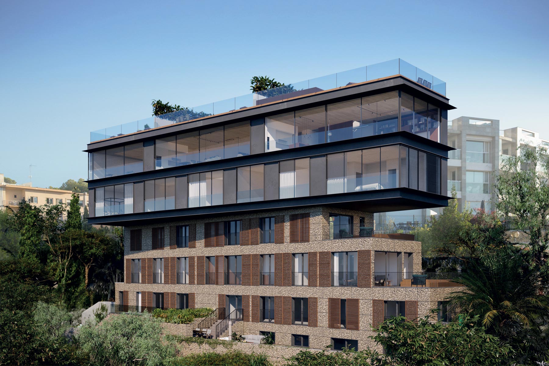 Ático de diseño interior nórdico con increíbles vistas al mar Mediterraneo, en Cala Mayor. El icónico diseño arquitectónico destaca en la costa panorámica como una expresión moderna que conecta a sus residentes con el Mediterráneo. La forma y la orientación del edificio, las ventanas del suelo al techo y el diseño de sus terrazas tienen como objetivo optimizar esta conexión. Las plantas inferiores, cuentan con frondosos jardines con un claro estilo mallorquín. La ubicación en Cala Major proporciona un fácil acceso a todo lo que Palma tiene para ofrecer, mientras que el Mediterráneo se encuentra a sus pies. La propiedad ofrecen una vida de ensueño: desde nuestros conceptos de diseño hasta la innovación arquitectónica y todos los materiales de alta calidad. Se han reinterpretado los materiales locales para un uso moderno, funcionando dentro de la gran extensión de áreas de estar de planta abierta. Este proyecto es el lujo mediterráneo en su forma más moderna. Este es tu hogar, a pocos minutos de la cosmopolita Palma, en su zona costera más próxima, Cala Mayor. MallorcaSite, su agencia inmobiliaria en Mallorca, le recomienda esta propiedad por su diseño, por las vistas, por su amplitud, por su proximidad a la playa y a Palma.