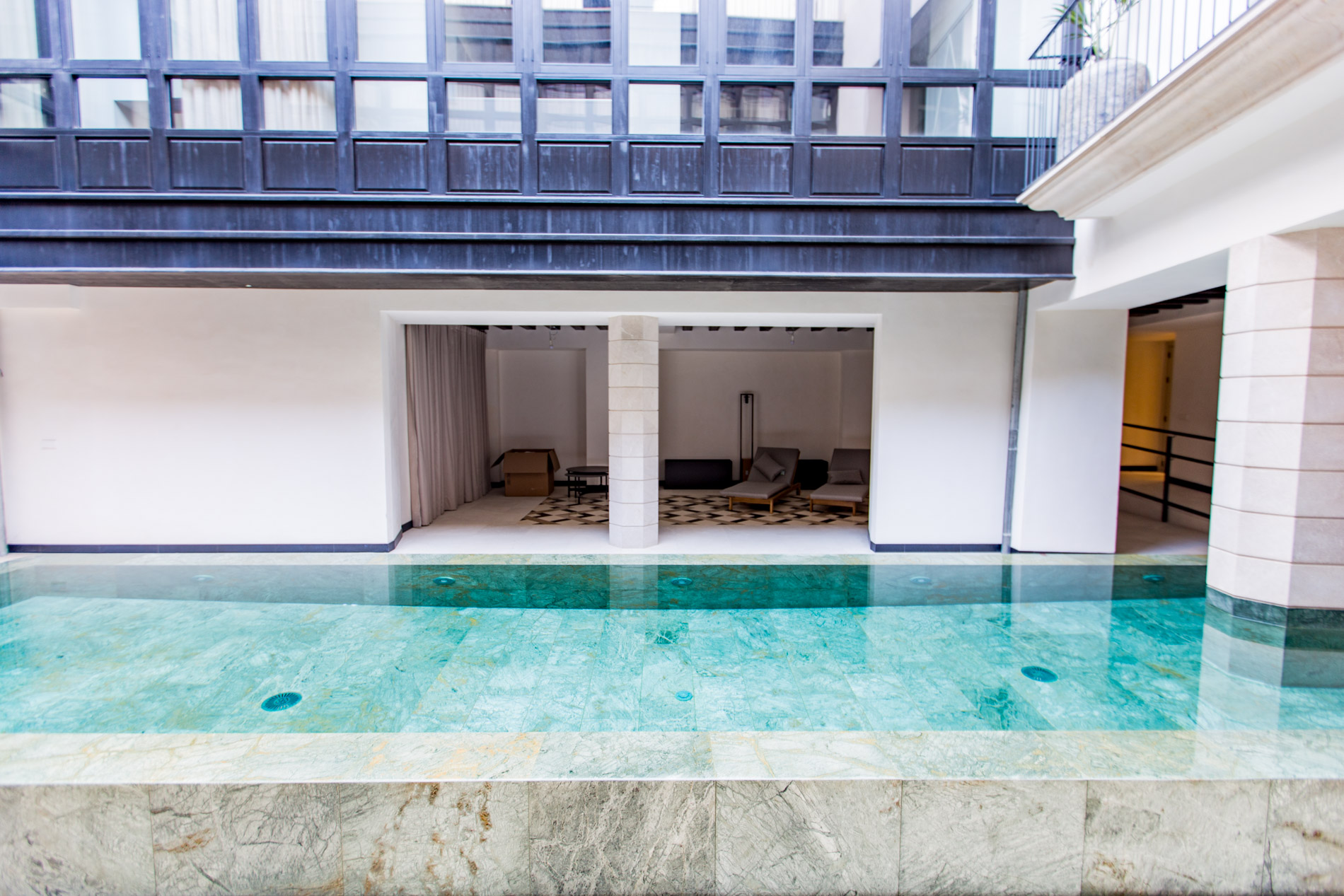 Atico de diseño a estrenar en el corazón del casco antiguo de Palma ubicado en un edificio cuyo interiorismo y concepto no tiene parangón en la isla. El piso cuenta con una terraza privada de 40 m2. A destacar el concepto comunitario con piscina central y apartamento de invitados para el deleite de todos los vecinos.