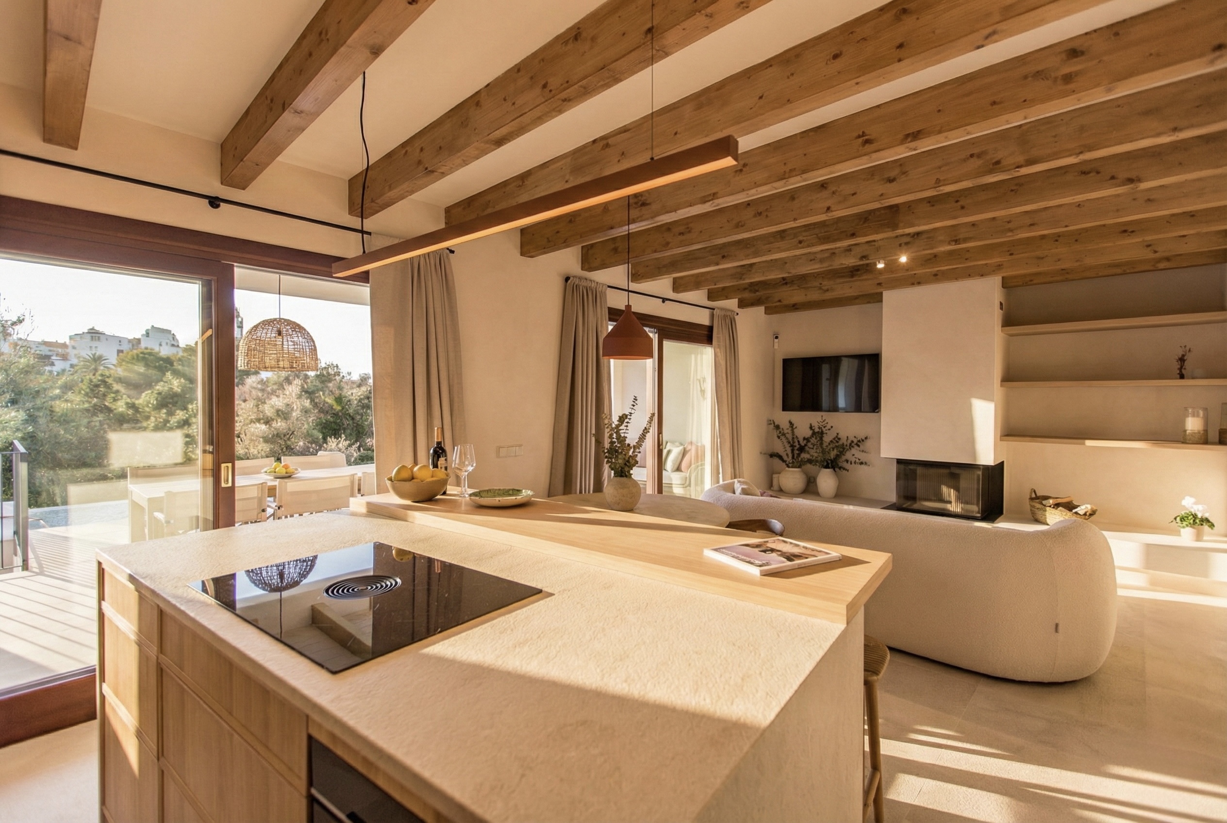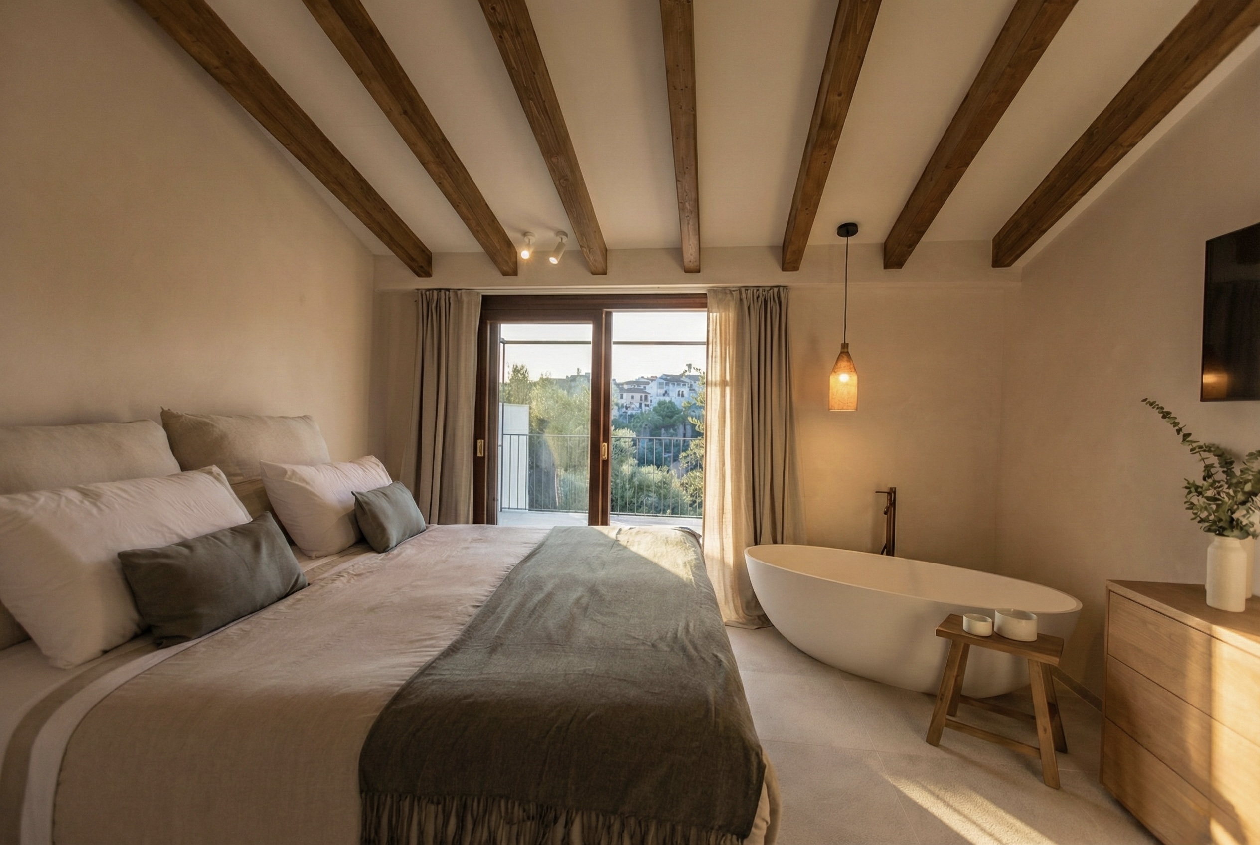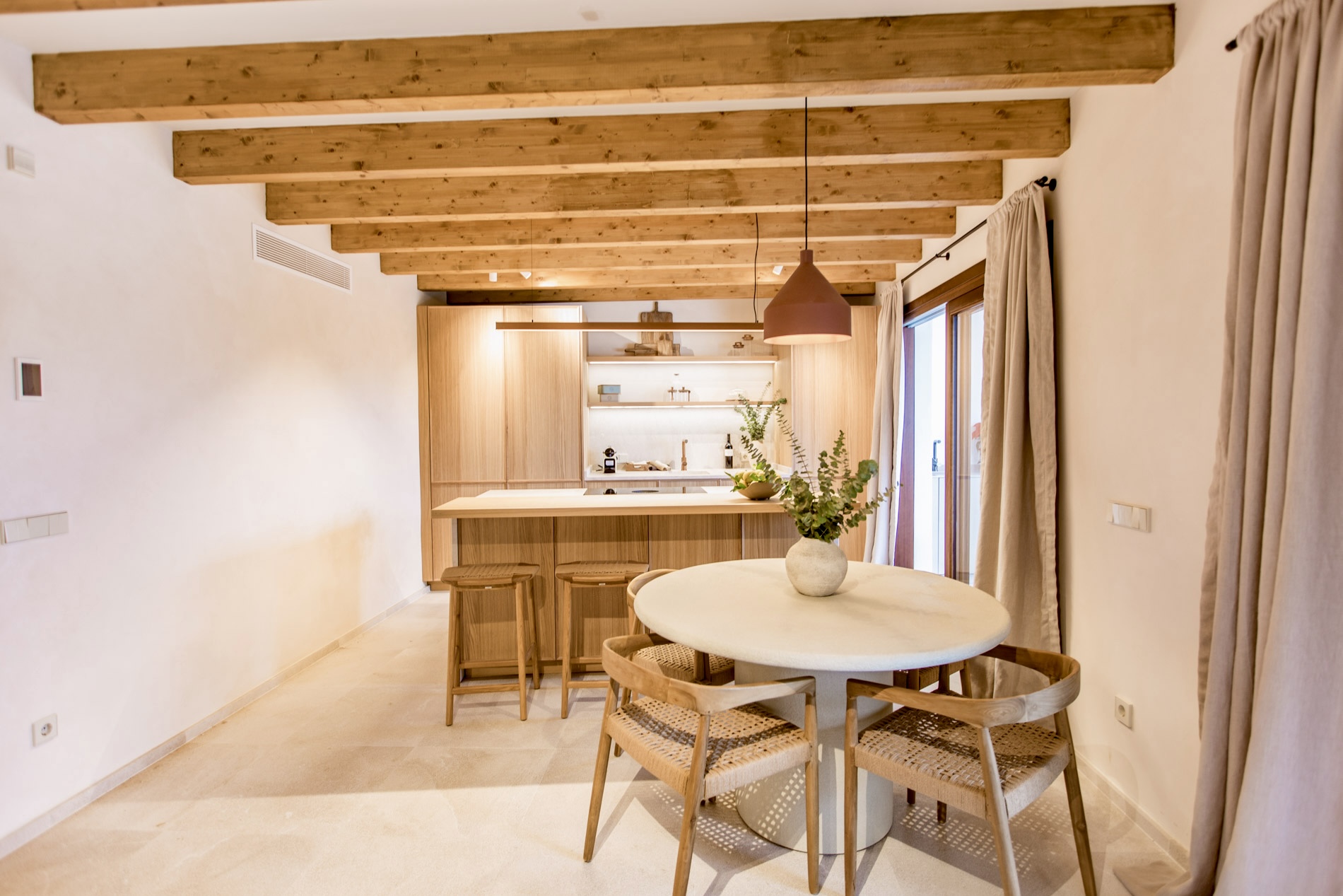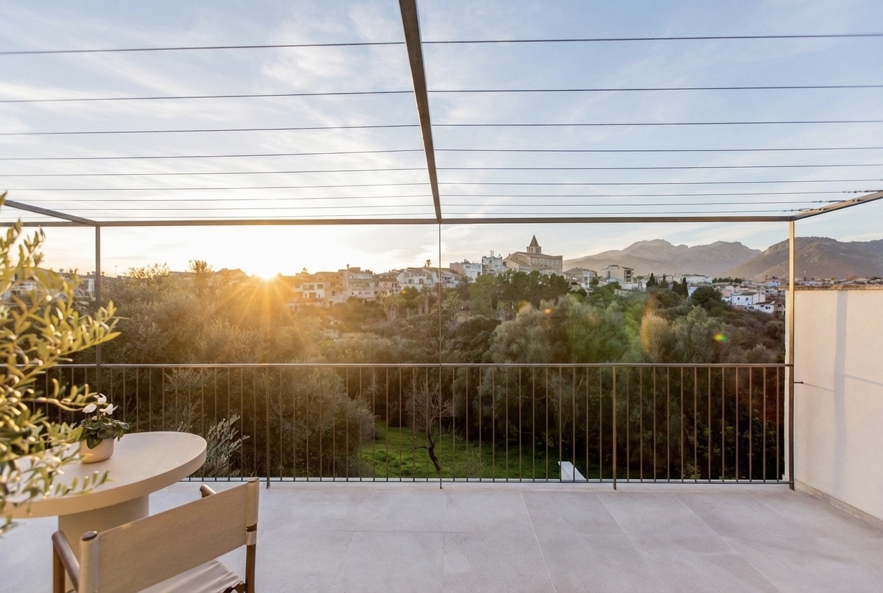 Casa de pueblo a estrenar, amueblada y de diseño, en el encantador pueblo de Campanet, con una ubicación especialmente estratégica entre Palma y una de las mejores playas de la isla, Playa de Muro, ambas a tan solo 20 minutos, ideal para vivir todo el año. Disfruta de vistas abiertas a la Serra de Tramuntana y al pintoresco entorno del propio pueblo, frente a un campo verde protegido que garantiza privacidad y vistas despejadas. La vivienda se entrega lista para entrar a vivir, con un equipamiento cuidadosamente integrado que permite disfrutarla desde el primer día sin necesidad de añadidos. Concebida como un proyecto integral, la casa combina arquitectura tradicional mallorquina y una mirada contemporánea, con espacios equilibrados, luminosos y una relación fluida entre interior y exterior, pensados para aprovechar la luz natural y el paisaje. La madera natural y la piedra definen el carácter de la vivienda, aportando calidez y una estética atemporal. Carpinterías, cocina y baños dialogan con la arquitectura original, mientras que las vigas vistas y los suelos de piedra natural refuerzan la identidad del conjunto. Con aproximadamente 212 m² construidos, la vivienda se distribuye en varias plantas e incluye cuatro dormitorios y tres baños. La suite principal, amplia y bien resuelta, cuenta con zona de baño y vestidor. Las zonas de estar son luminosas y fluidas, pensadas tanto para el día a día como para recibir invitados. La propiedad dispone además de espacios complementarios y zonas exteriores cuidadosamente integradas, desde las que se disfrutan vistas abiertas al pueblo de Campanet y a la Serra de Tramuntana. Campanet destaca por su excelente conexión, con acceso directo a la autopista, lo que permite llegar en aproximadamente 15 minutos tanto a las playas de Muro como a Palma, combinando tranquilidad y accesibilidad. MallorcaSite.com recomienda esta propiedad por la experiencia que ofrece: vivir en Campanet, frente a un paisaje protegido y con vistas abiertas a la Serra de Tramuntana, en una casa a estrenar, amueblada y de diseño, pensada para disfrutar del entorno y la luz de Mallorca.