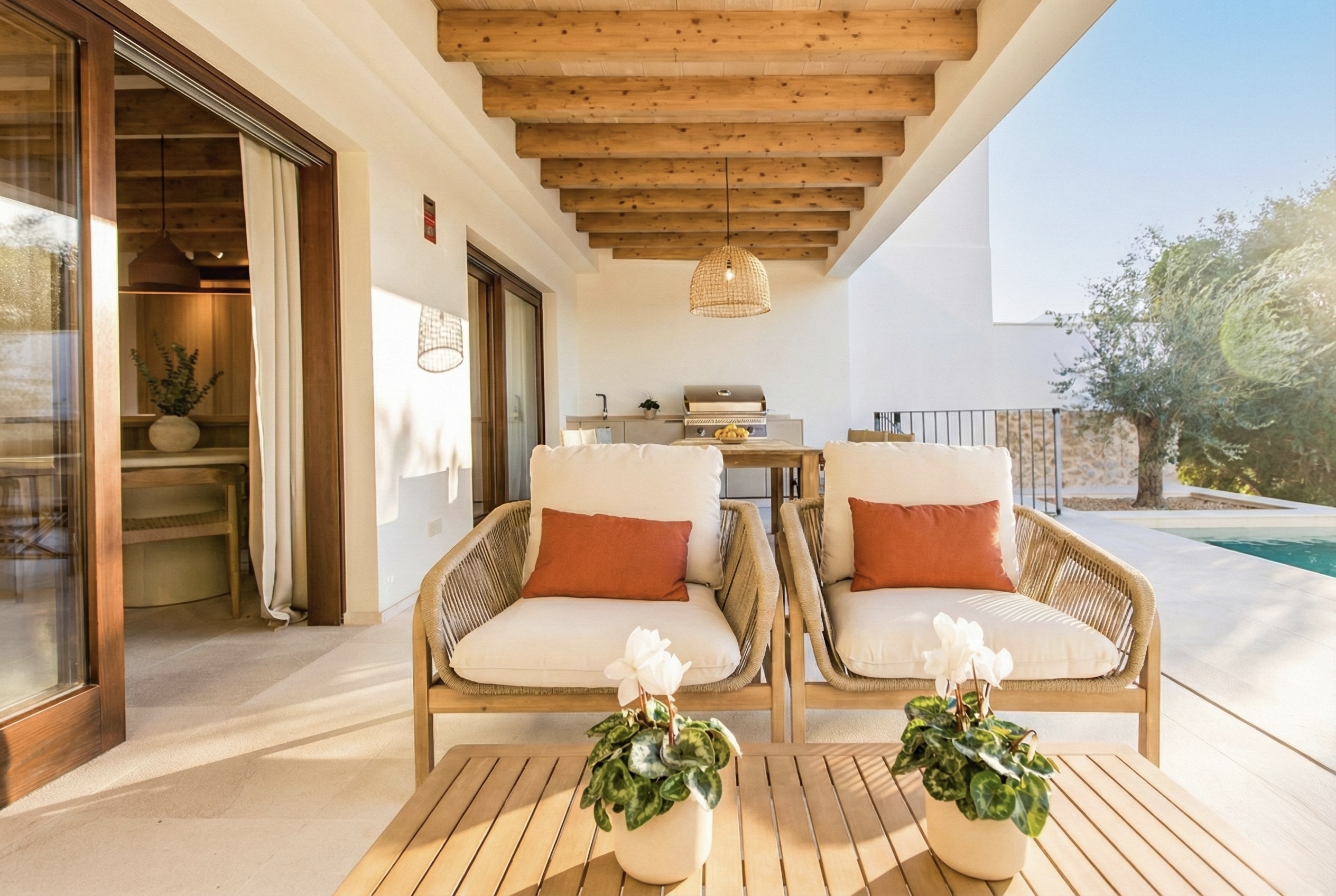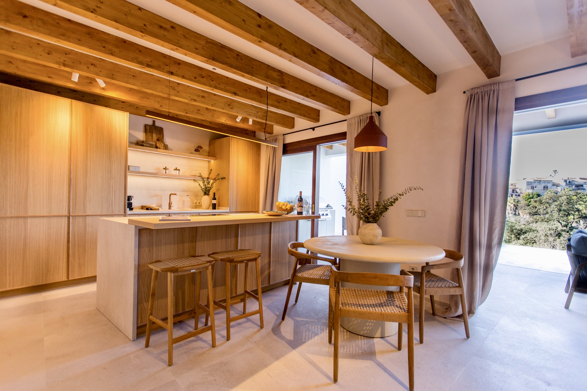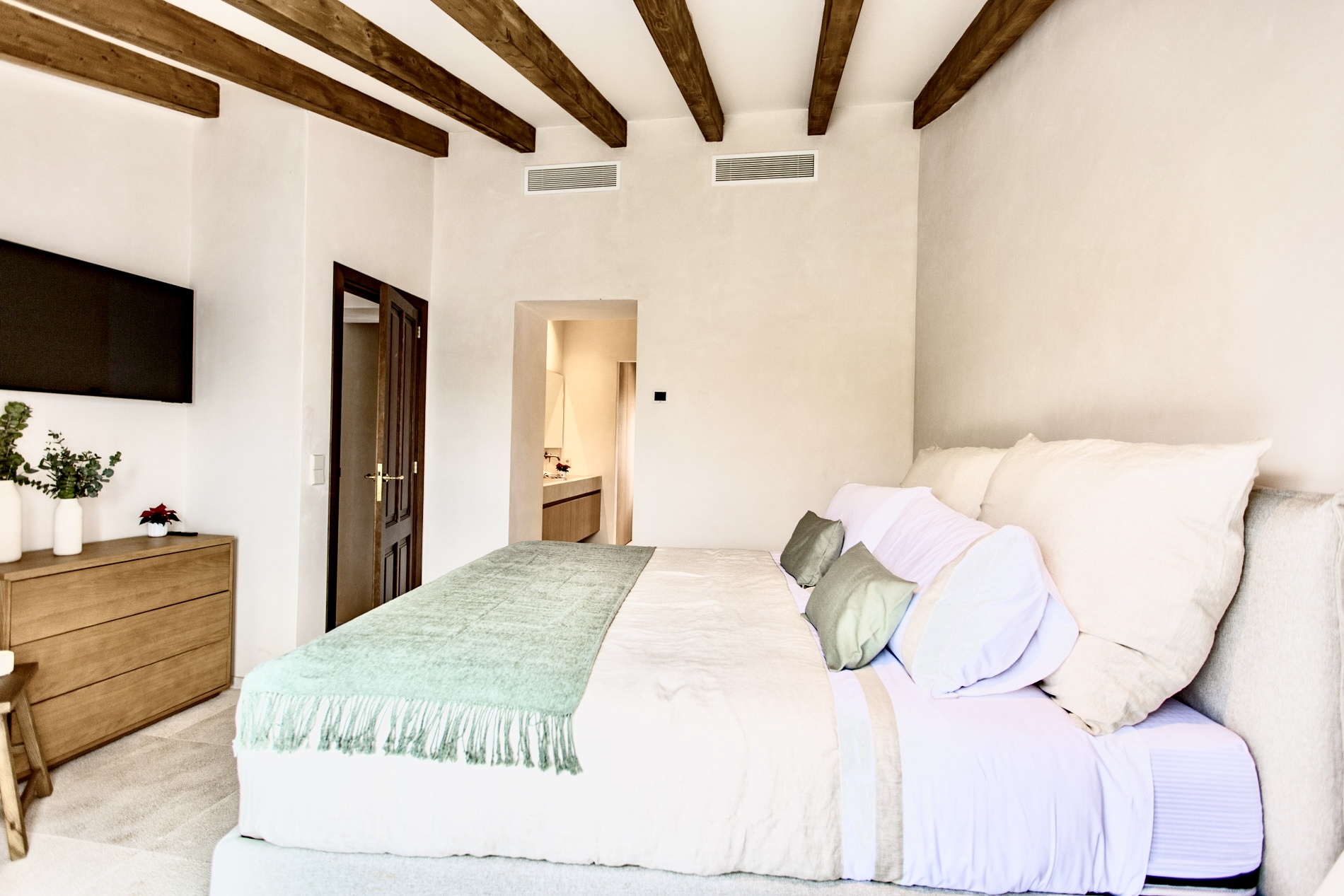 Casa de pueblo a estrenar, amueblada y de diseño, en el encantador pueblo de Campanet, con una ubicación especialmente estratégica entre Palma y una de las mejores playas de la isla, Playa de Muro, ambas a tan solo 20 minutos, ideal para vivir todo el año. Disfruta de vistas abiertas a la Serra de Tramuntana y al pintoresco entorno del propio pueblo, frente a un campo verde protegido que garantiza privacidad y vistas despejadas. La vivienda se entrega lista para entrar a vivir, con un equipamiento cuidadosamente integrado que permite disfrutarla desde el primer día sin necesidad de añadidos. Concebida como un proyecto integral, la casa combina arquitectura tradicional mallorquina y una mirada contemporánea, con espacios equilibrados, luminosos y una relación fluida entre interior y exterior, pensados para aprovechar la luz natural y el paisaje. La madera natural y la piedra definen el carácter de la vivienda, aportando calidez y una estética atemporal. Carpinterías, cocina y baños dialogan con la arquitectura original, mientras que las vigas vistas y los suelos de piedra natural refuerzan la identidad del conjunto. Con aproximadamente 212 m² construidos, la vivienda se distribuye en varias plantas e incluye cuatro dormitorios y tres baños. La suite principal, amplia y bien resuelta, cuenta con zona de baño y vestidor. Las zonas de estar son luminosas y fluidas, pensadas tanto para el día a día como para recibir invitados. La propiedad dispone además de espacios complementarios y zonas exteriores cuidadosamente integradas, desde las que se disfrutan vistas abiertas al pueblo de Campanet y a la Serra de Tramuntana. Campanet destaca por su excelente conexión, con acceso directo a la autopista, lo que permite llegar en aproximadamente 15 minutos tanto a las playas de Muro como a Palma, combinando tranquilidad y accesibilidad. MallorcaSite.com recomienda esta propiedad por la experiencia que ofrece: vivir en Campanet, frente a un paisaje protegido y con vistas abiertas a la Serra de Tramuntana, en una casa a estrenar, amueblada y de diseño, pensada para disfrutar del entorno y la luz de Mallorca.