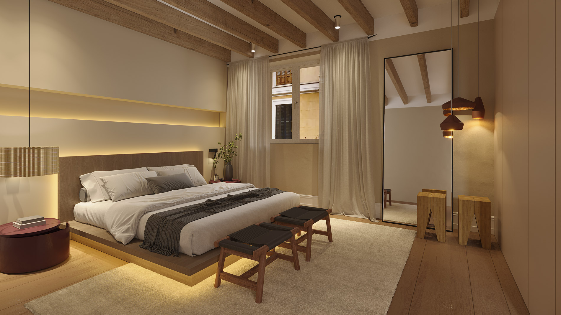 Palacete con mas de ocho siglos de antigüedad, parte del importante patrimonio arquitectónico de la ciudad con licencia para ser reformada maximizando sus espacios y magnificando sus vistas. Los detalles originales del inmueble datan del siglo XVI y han sido cuidadosamente conservados, destacando el estilo mediterráneo y el carácter señorial. El proyecto arquitectónico de la vivienda ha sido concebido para dignificar una vivienda histórica y adecuando sus estancias a las comodidades de hoy en día. Destacar los items protegidos los cuales aportan el carácter señorial a la propiedad: el artesonado medieval con restos de decoración policroma y escritura cúfica que pueden ser datados entre primer terco del siglo XIII y mediados del siglo XIV. El muro medianero meridional data también de la época medieval. Todo sugiere que el origen del inmueble es como mínimo de la época del alto medievo, si bien es posible que la medianera meridional existiera con anterioridad. La casa principal de 394 m2 construidos más 57m2 de terrazas distribuidas en tres plantas. El proyecto de licencia cuenta con la siguiente distribución: en el semisótano hay un garaje. En la planta baja a un lado tenemos un dormitorio con baño en suite y vestidor. En esta misma planta hay una bogeda, conectada a través del entresuelo con una zona de spa con gimnasio y piscina interior. En la primera planta a la que se puede acceder mediante escalera o ascensor está toda la zona de día con cocina, salón, amplio comedor, aseo y acceso a una gran terraza con vistas totalmente despejadas, gracias a que en frente están los jardines de varias casas del casco antiguo, lo que gracias a su orientación sur le permite tener mucha luz. En la segunda planta hay un gran dormitorio principal con baño en suite, 2 vestidores y salida a una terraza privada. En esta misma planta hay un segundo dormitorio con baño en suite. Además hay una tercera terraza en la azotea con espectaculares vistas sobre el casco antiguo, la Catedral y el mar. MallorcaSite, su agencia inmobiliaria en Mallorca, le recomienda esta propiedad por su ubicación, por contar con licencia, por su historia, por contar con terrazas, ascensor, spa, gimnasio, parking.