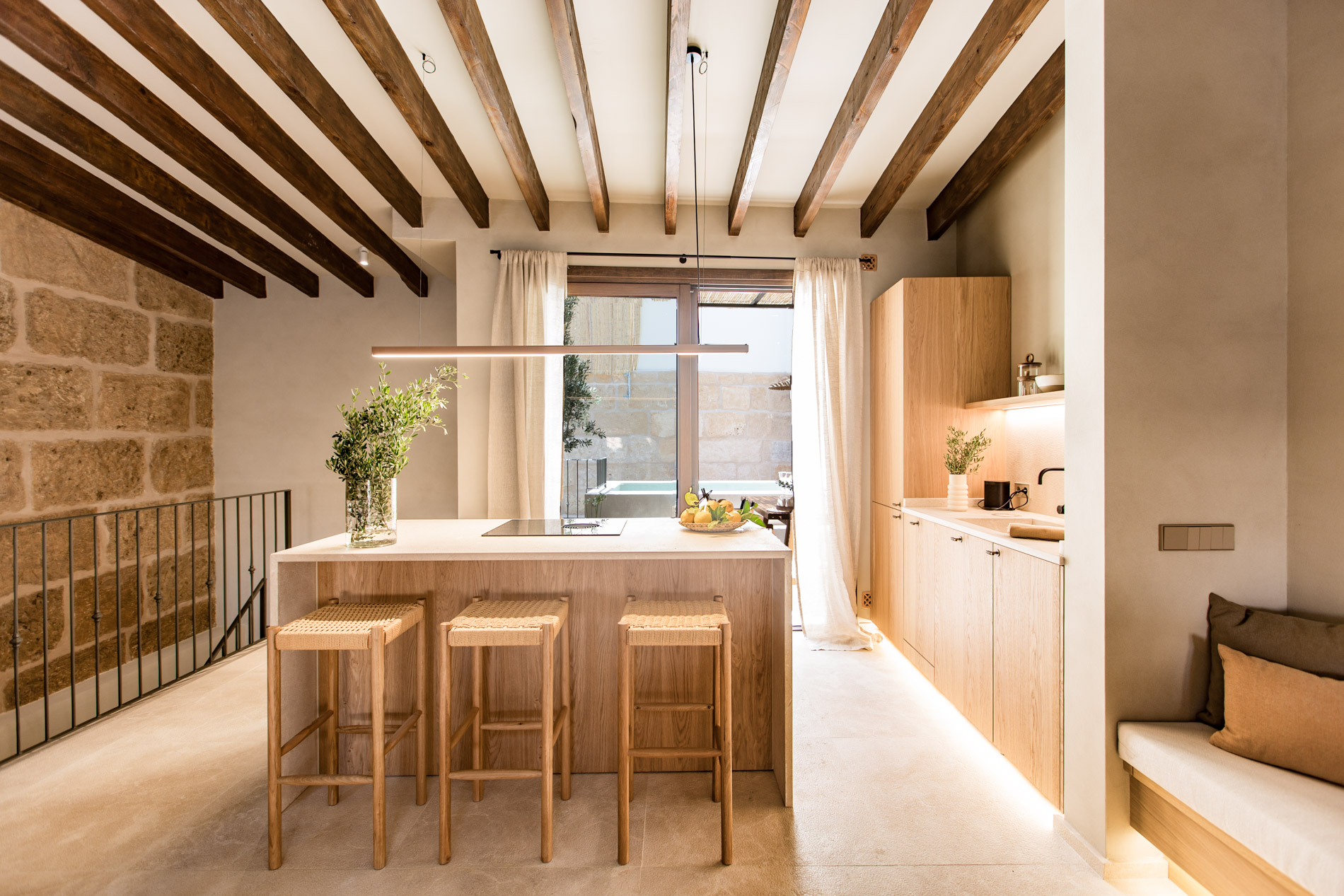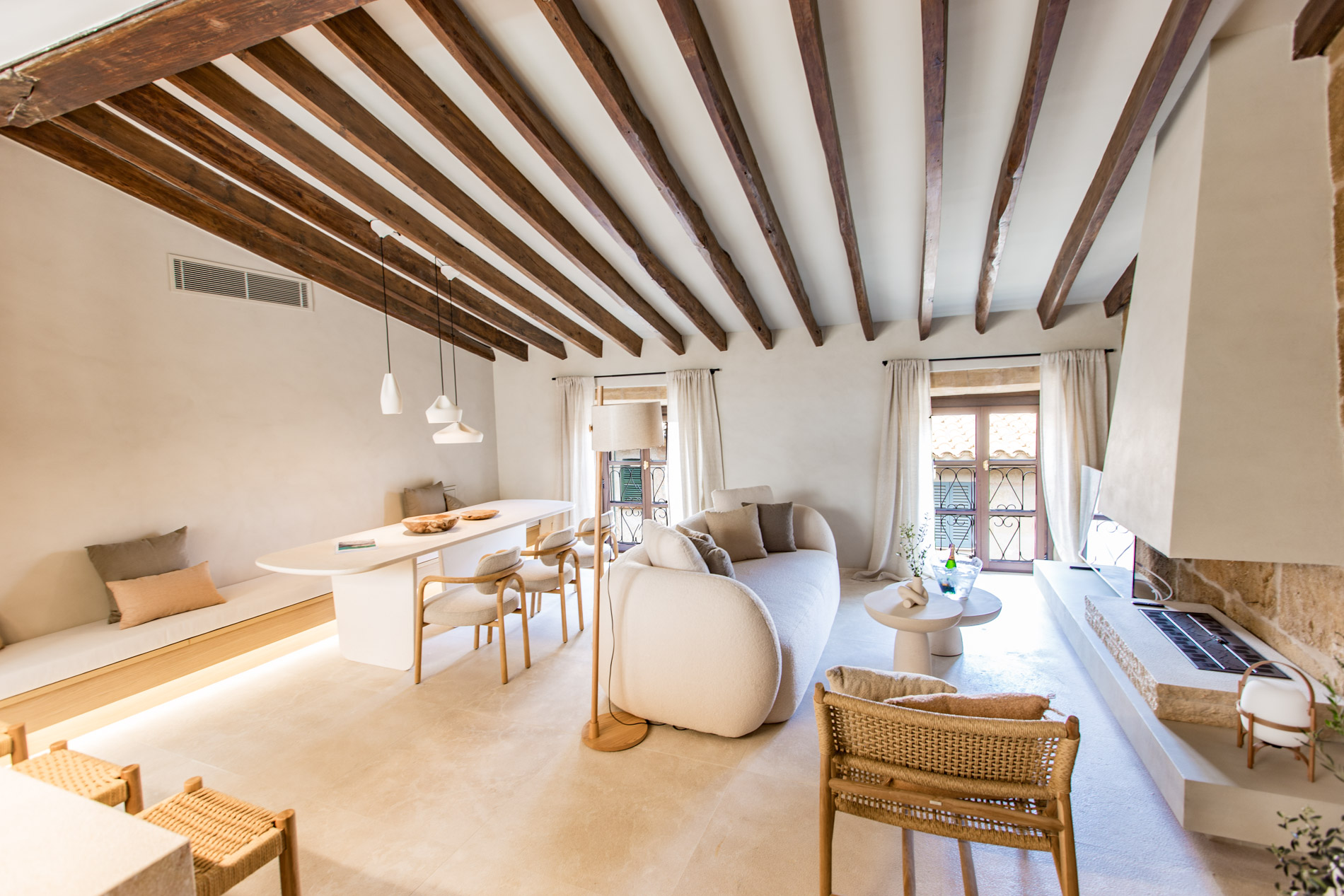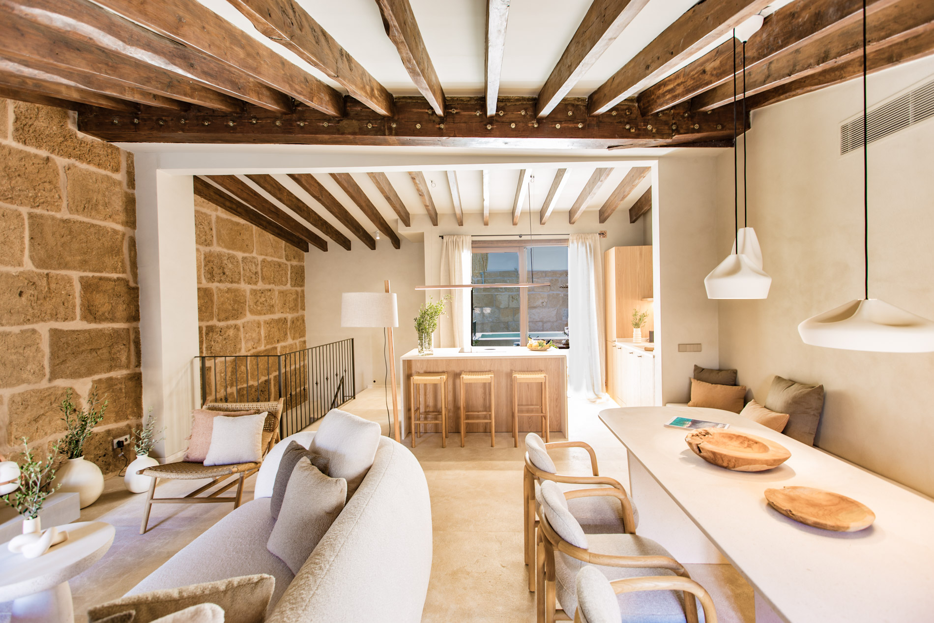 La belleza de la sencillez mediterránea llevada a su máximo lujo. Así se podría definir el espiritu de la rehabilitación arquitectónica de esta obra de arte en el corazón del pueblo de Pollensa. Diseño contemporáneo respetando a máximo los materiales y métodos constructivos tradicionales de Mallorca.