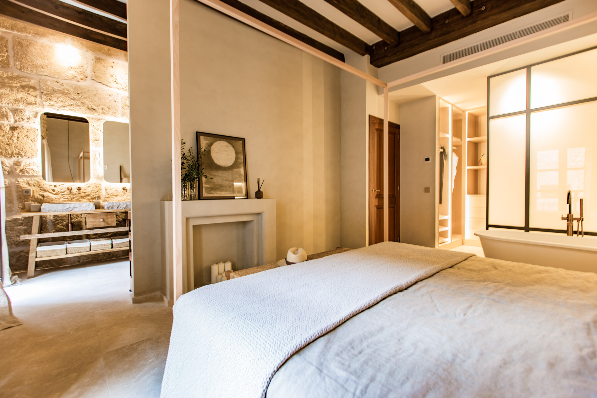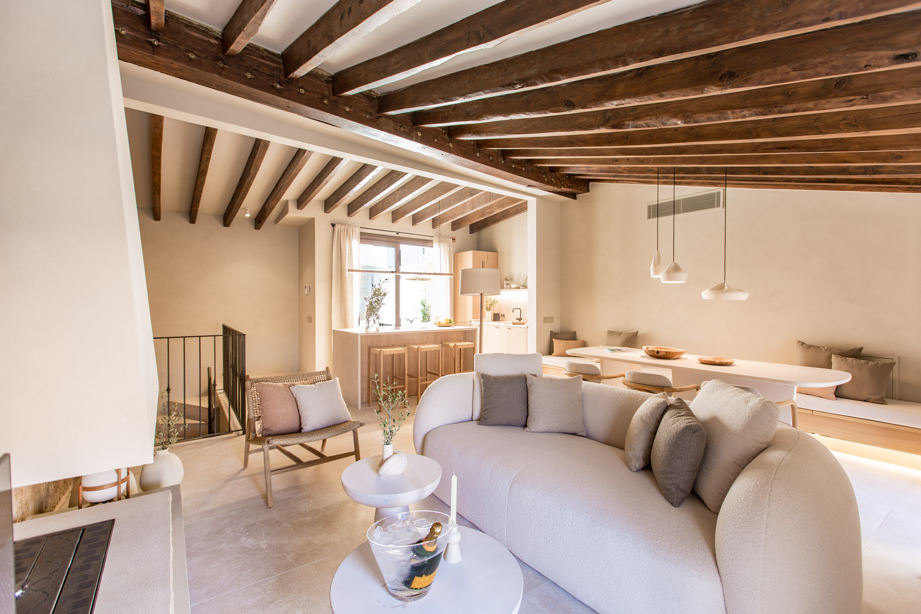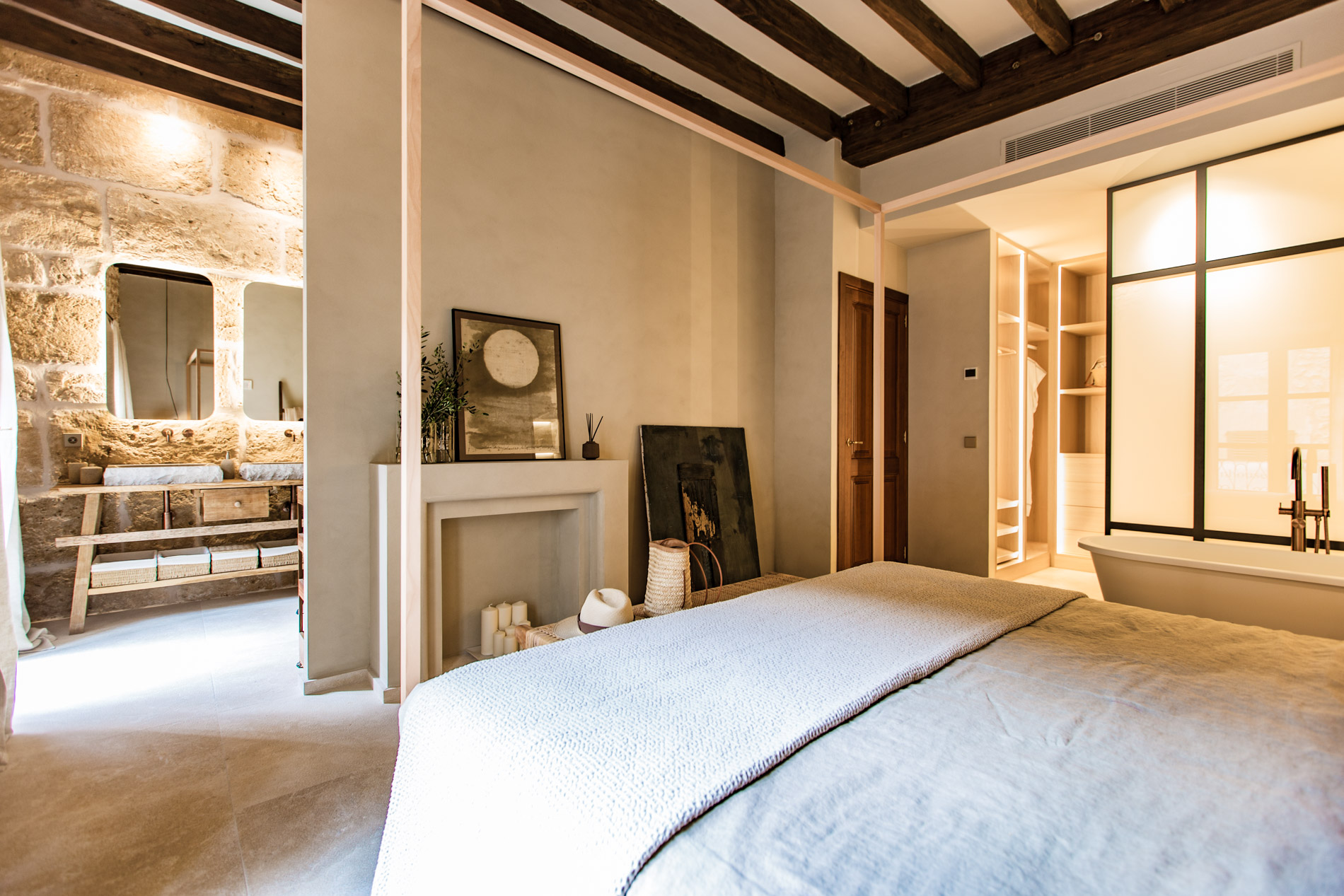 La belleza de la sencillez mediterránea llevada a su máximo lujo. Así se podría definir el espiritu de la rehabilitación arquitectónica de esta obra de arte en el corazón del pueblo de Pollensa. Diseño contemporáneo respetando a máximo los materiales y métodos constructivos tradicionales de Mallorca.