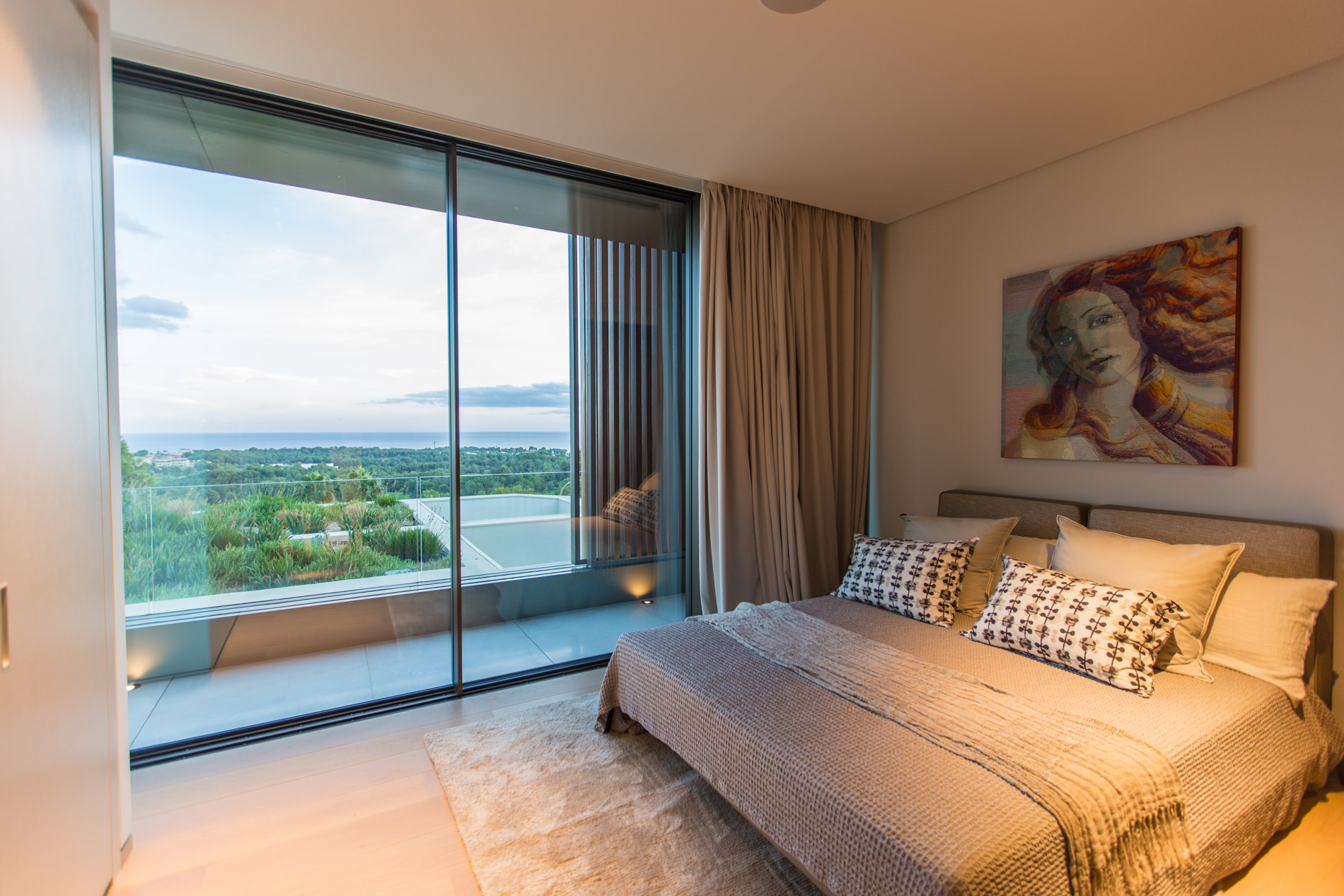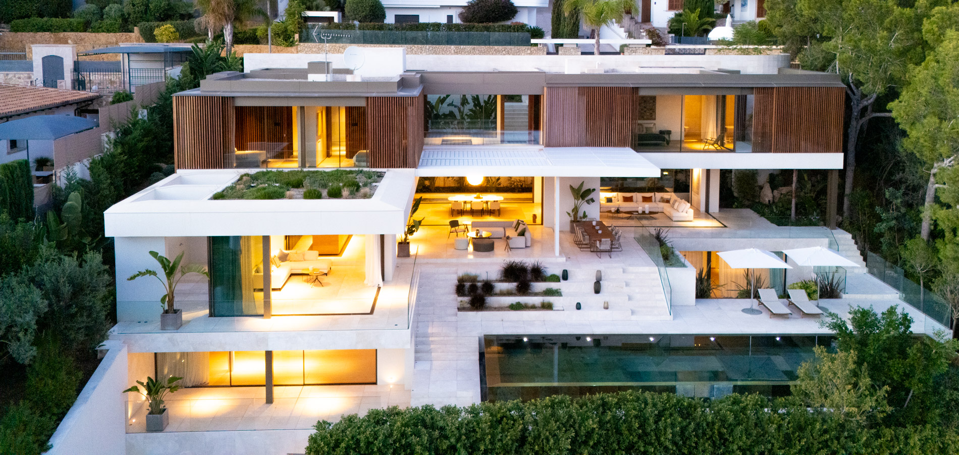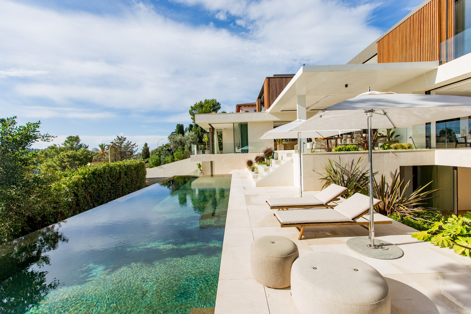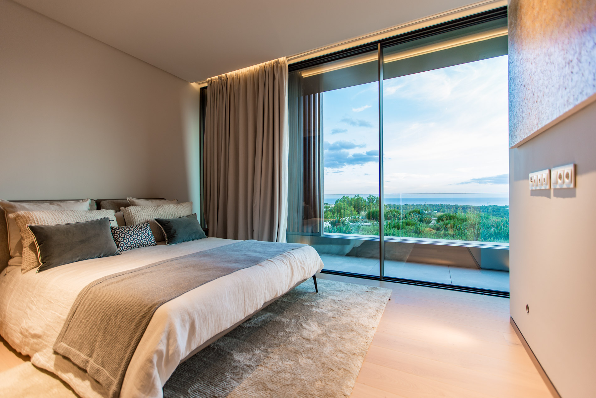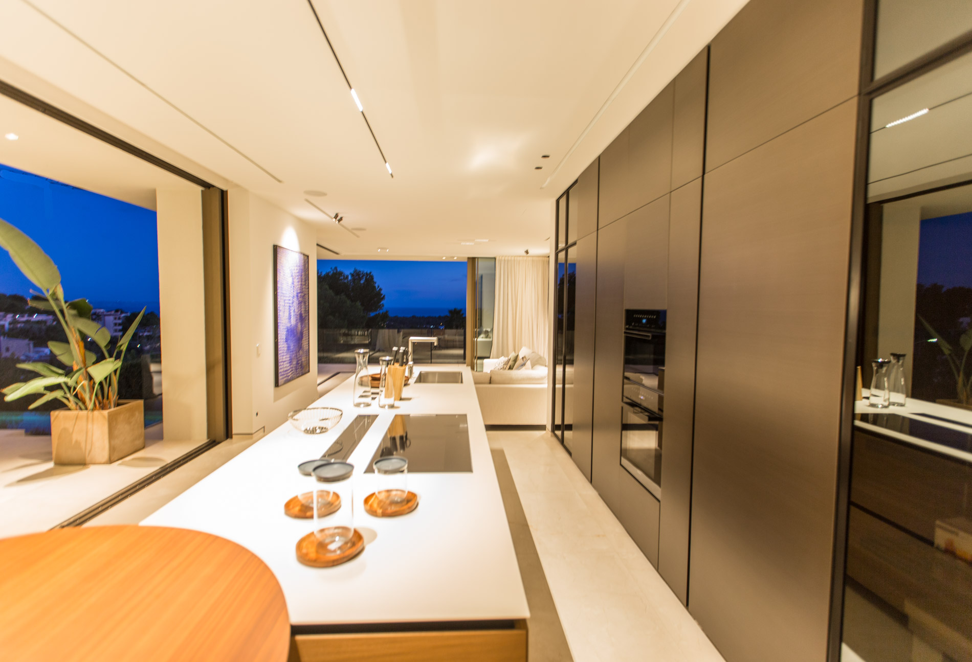 Esta villa es una auténtica obra de arte arquitectónica, diseñada con un nivel de detalle excepcional para resaltar las impresionantes vistas que la rodean. Su concepto vanguardista, desarrollado por un equipo internacional, fusiona materiales naturales de la isla con un entorno de ensueño, creando una propiedad única e inigualable. Distribuida en tres niveles, la villa cuenta con un nivel principal que alberga tres dormitorios, entre ellos una amplia y elegante suite principal con vistas al mar. Para el disfrute de los invitados, dos junior suites adicionales se encuentran en el nivel de la piscina, donde también se ubican una lujosa zona de spa y bienestar y un espacioso gimnasio. El nivel de vida, con su magnífica terraza al aire libre, es otro de los puntos culminantes de esta propiedad. Además de una sala de estar con comedor formal, la villa incluye una amplia y lujosa cocina Poliform con una sala contigua. Un elaborado sistema de iluminación aporta la atmósfera perfecta para cada ocasión. Con grandes ventanales minimalistas de Panoramah!, techos altos, y suelos de piedra natural y parquet de madera de alta calidad en las zonas de descanso, la villa se presenta como un espacio de lujo y confort incomparables. Su sistema domótico, de uso intuitivo y accesible desde cualquier dispositivo móvil, permite un control total del hogar. Las amplias zonas de aparcamiento están preparadas con estaciones de carga para vehículos eléctricos, ofreciendo todas las comodidades de una propiedad moderna y sostenible. Rodeada de exuberantes plantas tropicales y mediterráneas que complementan su diseño galardonado, esta villa es el epítome de la elegancia y el confort. MallorcaSite, su agencia inmobiliaria de confianza en Mallorca, recomienda esta propiedad por su diseño impecable, sus vistas espectaculares y la calidad excepcional de sus materiales.