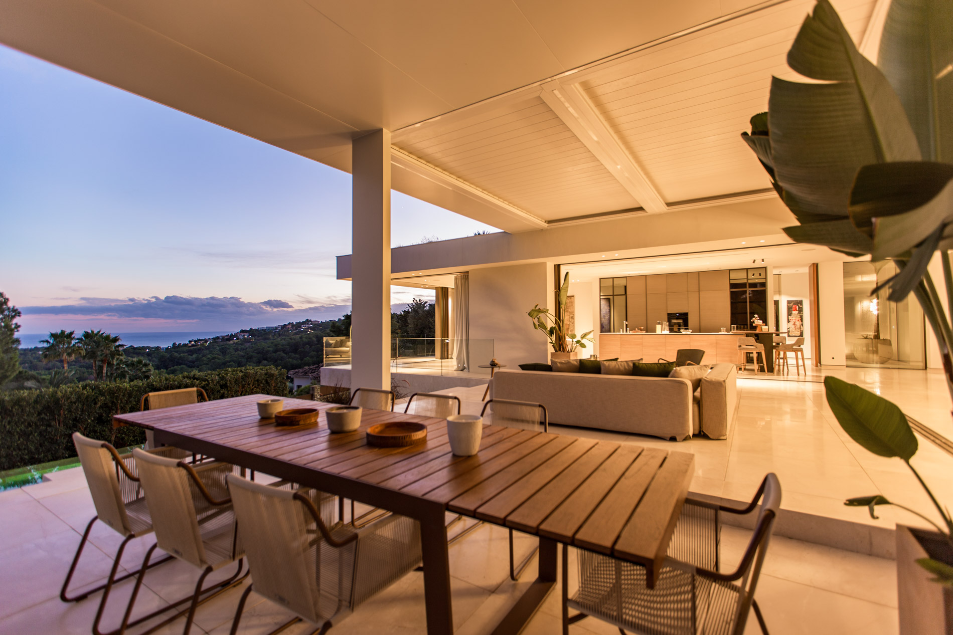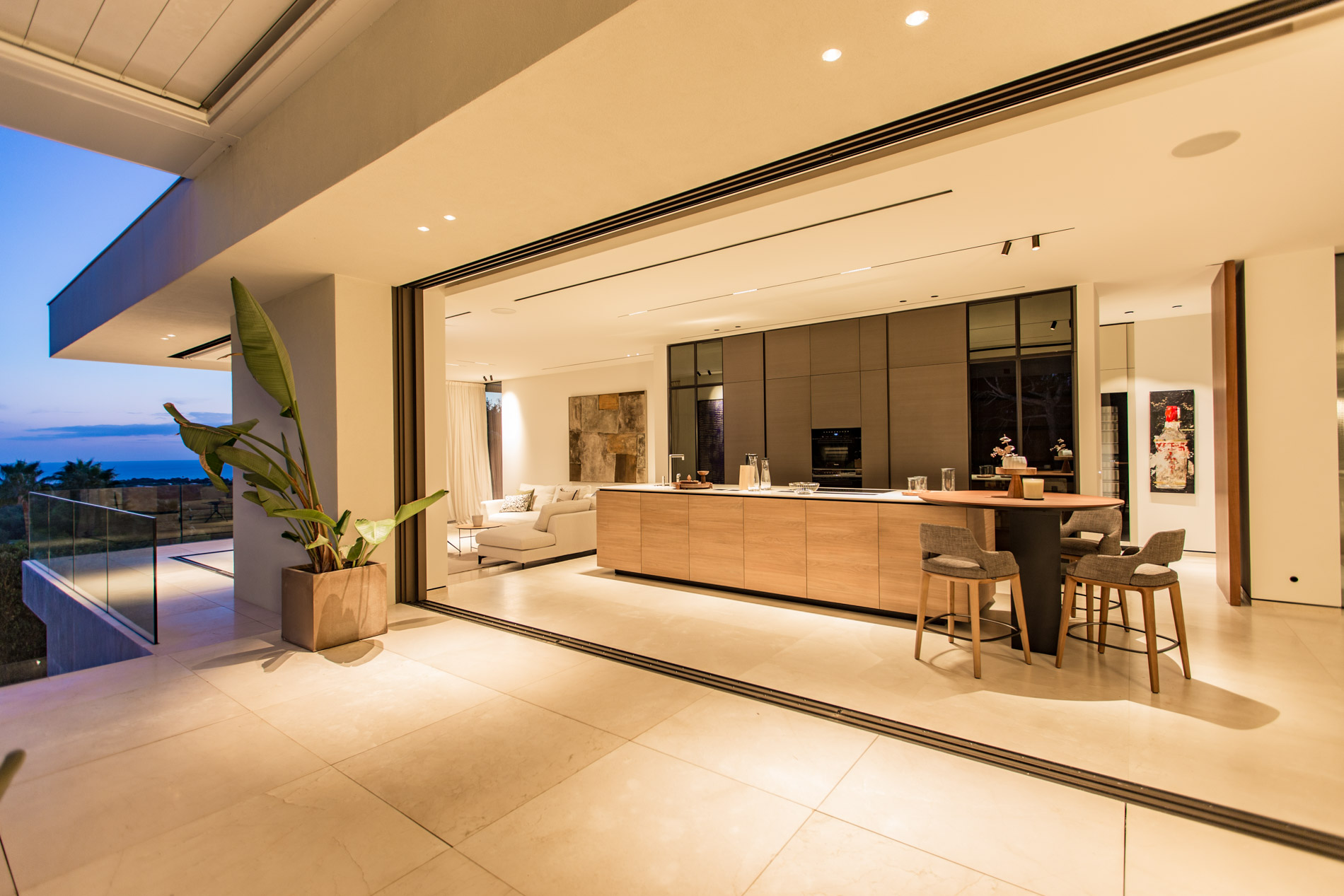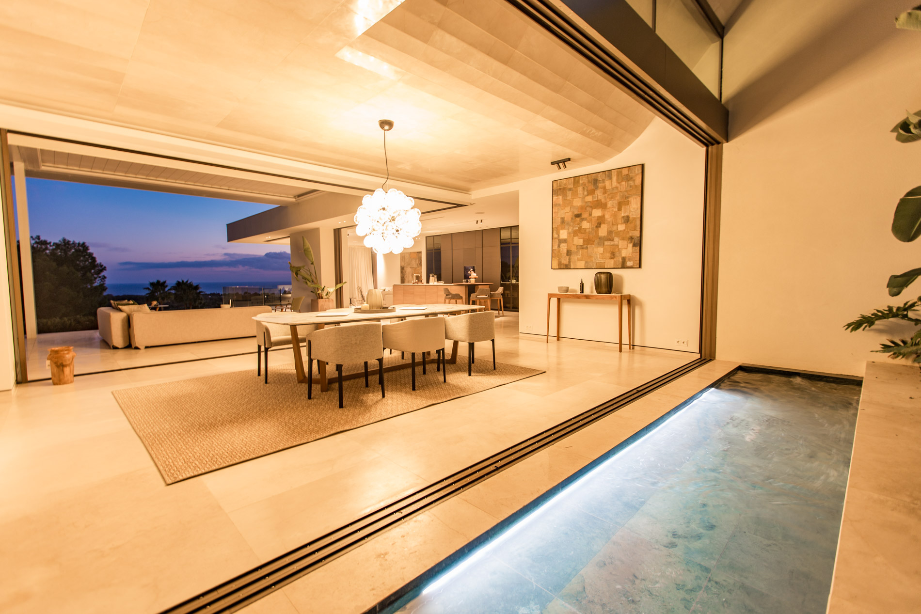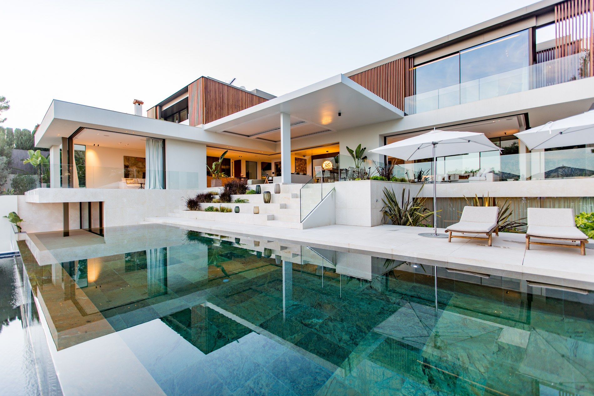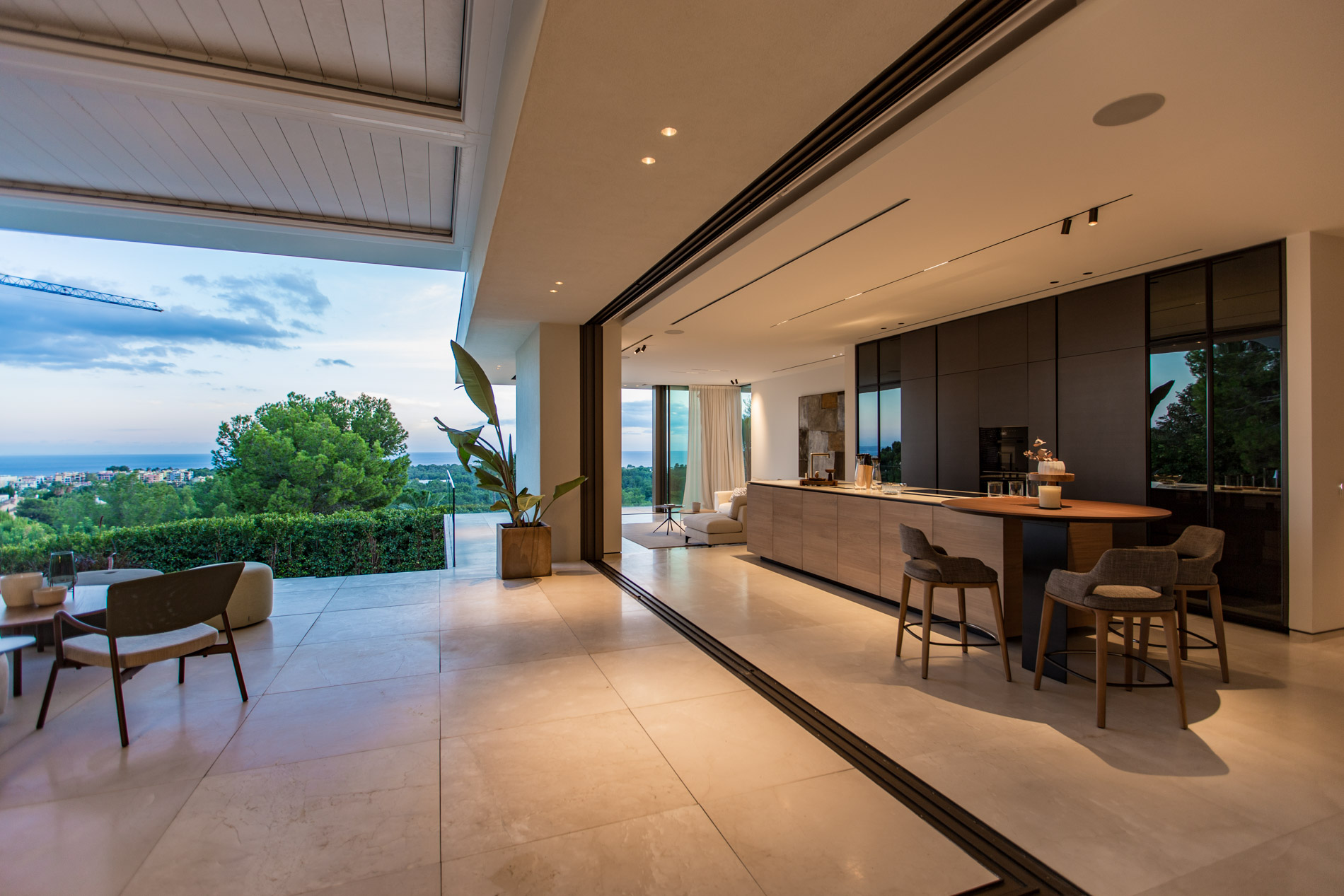 Esta villa es una auténtica obra de arte arquitectónica, diseñada con un nivel de detalle excepcional para resaltar las impresionantes vistas que la rodean. Su concepto vanguardista, desarrollado por un equipo internacional, fusiona materiales naturales de la isla con un entorno de ensueño, creando una propiedad única e inigualable. Distribuida en tres niveles, la villa cuenta con un nivel principal que alberga tres dormitorios, entre ellos una amplia y elegante suite principal con vistas al mar. Para el disfrute de los invitados, dos junior suites adicionales se encuentran en el nivel de la piscina, donde también se ubican una lujosa zona de spa y bienestar y un espacioso gimnasio. El nivel de vida, con su magnífica terraza al aire libre, es otro de los puntos culminantes de esta propiedad. Además de una sala de estar con comedor formal, la villa incluye una amplia y lujosa cocina Poliform con una sala contigua. Un elaborado sistema de iluminación aporta la atmósfera perfecta para cada ocasión. Con grandes ventanales minimalistas de Panoramah!, techos altos, y suelos de piedra natural y parquet de madera de alta calidad en las zonas de descanso, la villa se presenta como un espacio de lujo y confort incomparables. Su sistema domótico, de uso intuitivo y accesible desde cualquier dispositivo móvil, permite un control total del hogar. Las amplias zonas de aparcamiento están preparadas con estaciones de carga para vehículos eléctricos, ofreciendo todas las comodidades de una propiedad moderna y sostenible. Rodeada de exuberantes plantas tropicales y mediterráneas que complementan su diseño galardonado, esta villa es el epítome de la elegancia y el confort. MallorcaSite, su agencia inmobiliaria de confianza en Mallorca, recomienda esta propiedad por su diseño impecable, sus vistas espectaculares y la calidad excepcional de sus materiales.