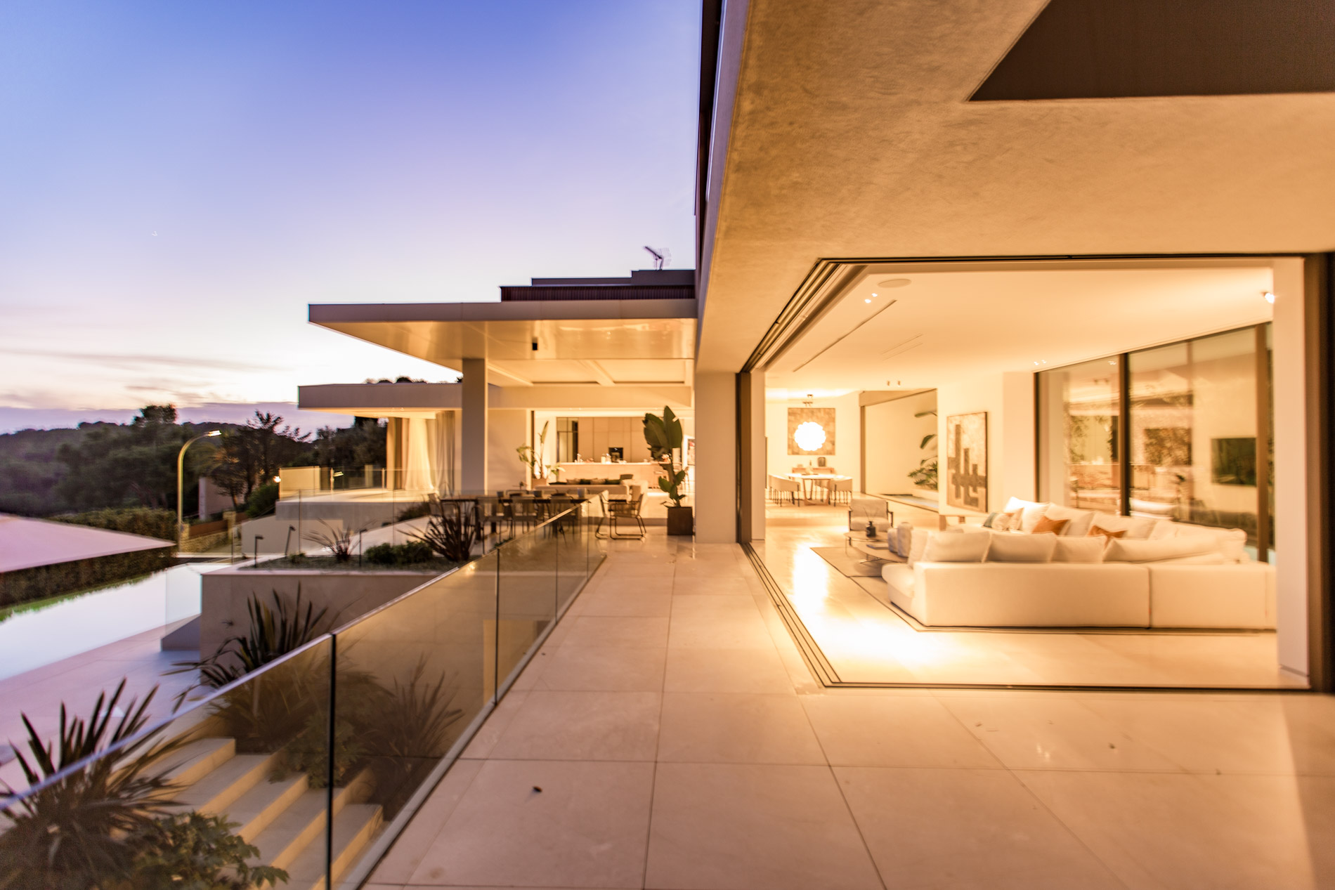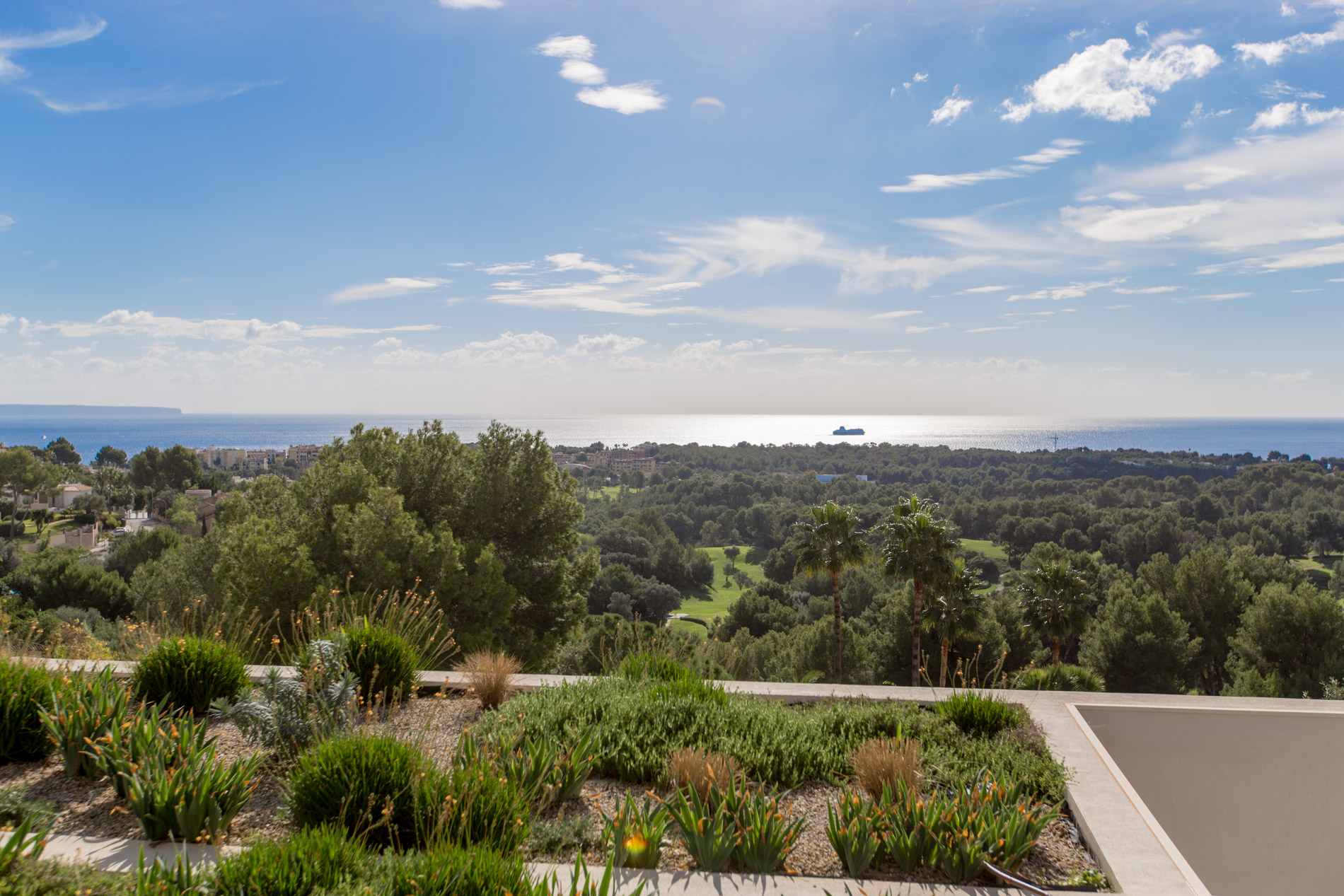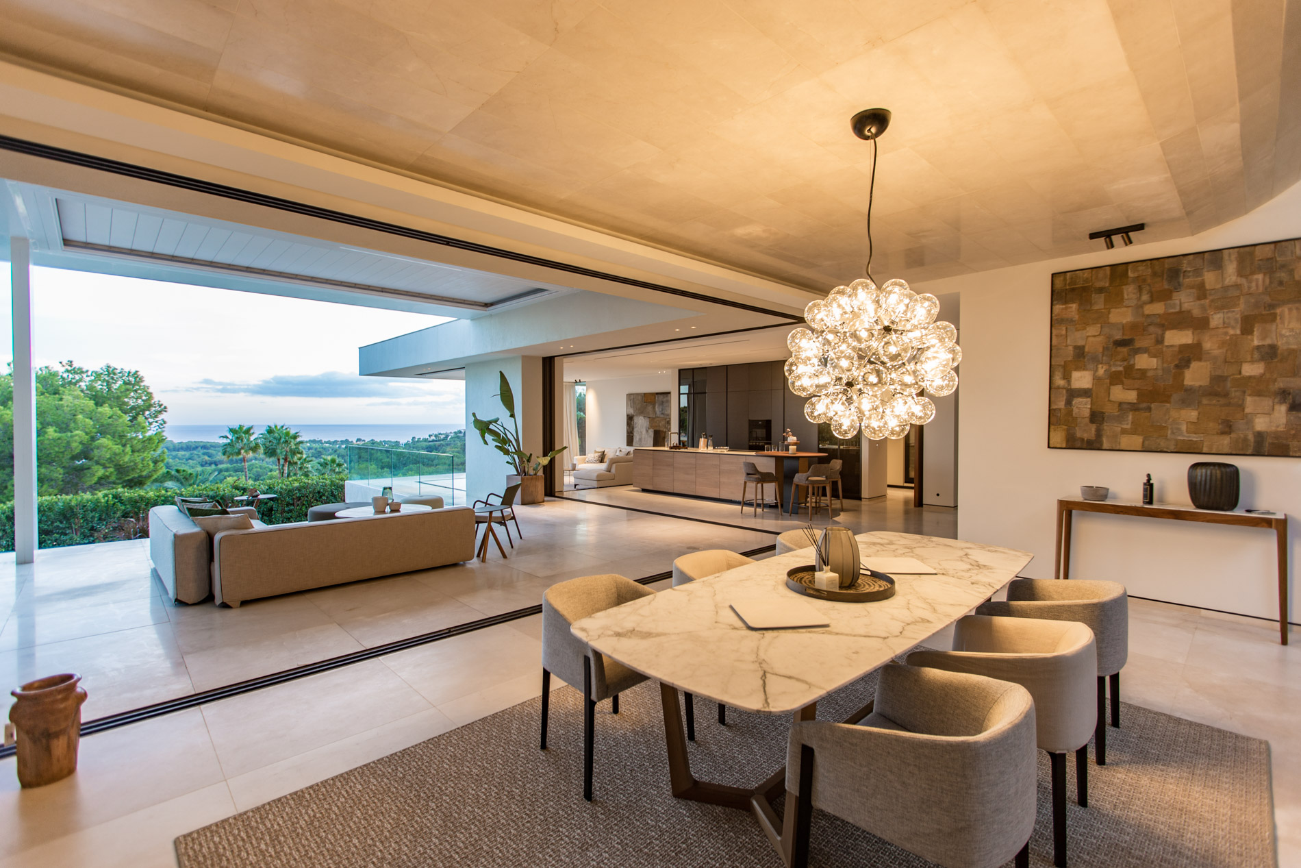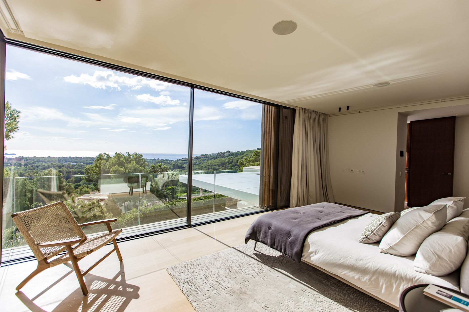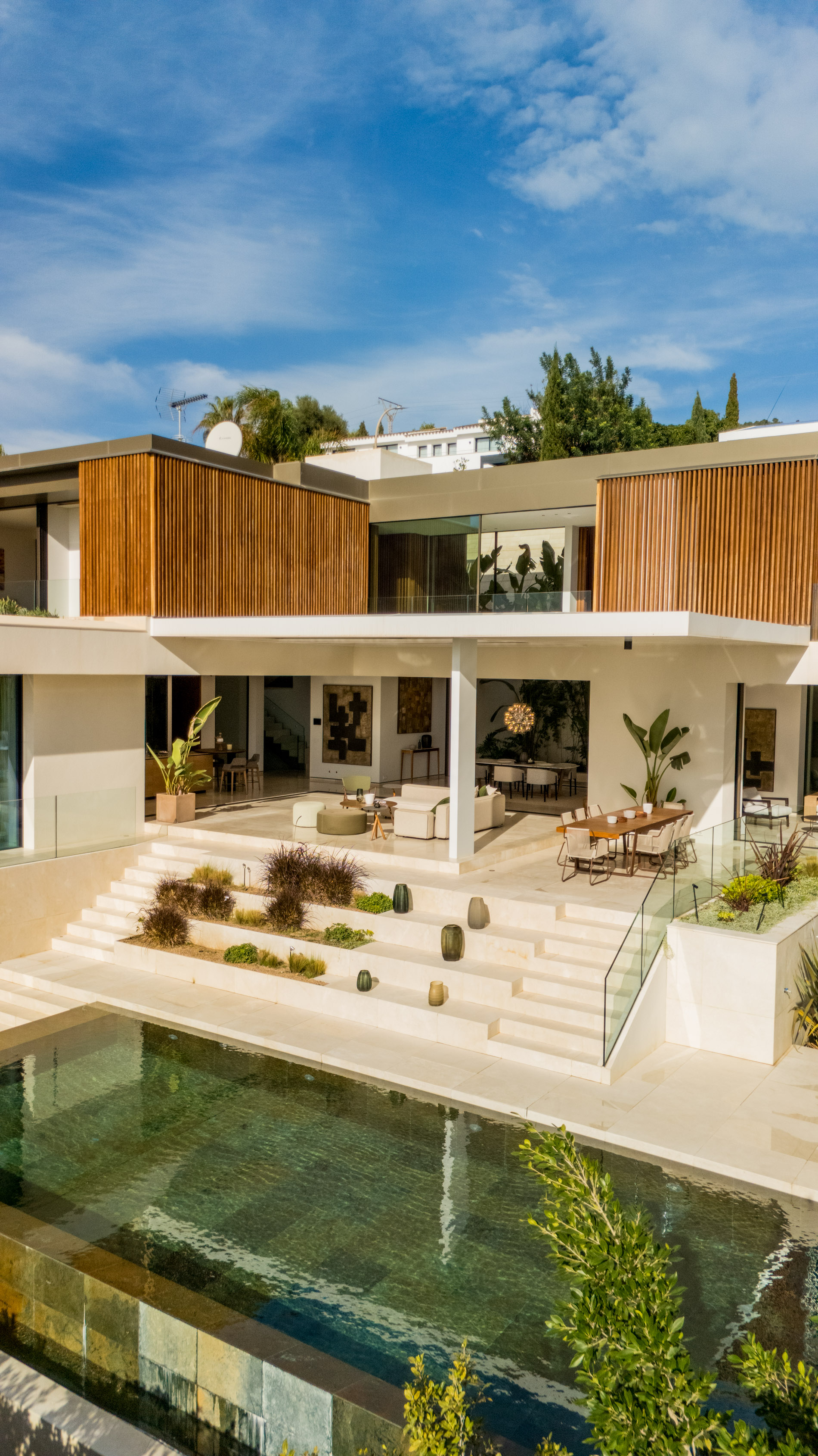 Esta villa es una auténtica obra de arte arquitectónica, diseñada con un nivel de detalle excepcional para resaltar las impresionantes vistas que la rodean. Su concepto vanguardista, desarrollado por un equipo internacional, fusiona materiales naturales de la isla con un entorno de ensueño, creando una propiedad única e inigualable. Distribuida en tres niveles, la villa cuenta con un nivel principal que alberga tres dormitorios, entre ellos una amplia y elegante suite principal con vistas al mar. Para el disfrute de los invitados, dos junior suites adicionales se encuentran en el nivel de la piscina, donde también se ubican una lujosa zona de spa y bienestar y un espacioso gimnasio. El nivel de vida, con su magnífica terraza al aire libre, es otro de los puntos culminantes de esta propiedad. Además de una sala de estar con comedor formal, la villa incluye una amplia y lujosa cocina Poliform con una sala contigua. Un elaborado sistema de iluminación aporta la atmósfera perfecta para cada ocasión. Con grandes ventanales minimalistas de Panoramah!, techos altos, y suelos de piedra natural y parquet de madera de alta calidad en las zonas de descanso, la villa se presenta como un espacio de lujo y confort incomparables. Su sistema domótico, de uso intuitivo y accesible desde cualquier dispositivo móvil, permite un control total del hogar. Las amplias zonas de aparcamiento están preparadas con estaciones de carga para vehículos eléctricos, ofreciendo todas las comodidades de una propiedad moderna y sostenible. Rodeada de exuberantes plantas tropicales y mediterráneas que complementan su diseño galardonado, esta villa es el epítome de la elegancia y el confort. MallorcaSite, su agencia inmobiliaria de confianza en Mallorca, recomienda esta propiedad por su diseño impecable, sus vistas espectaculares y la calidad excepcional de sus materiales.
