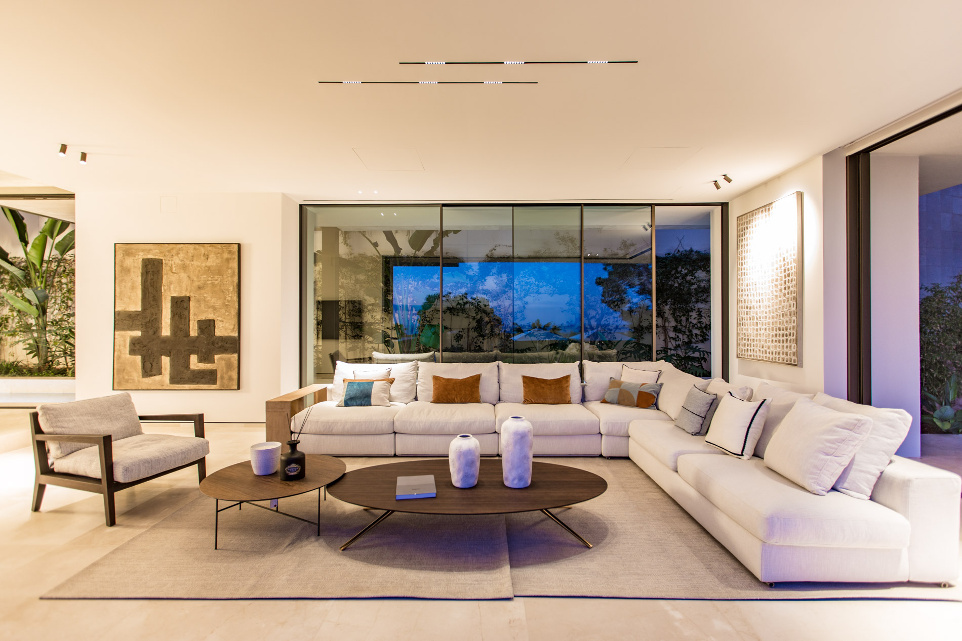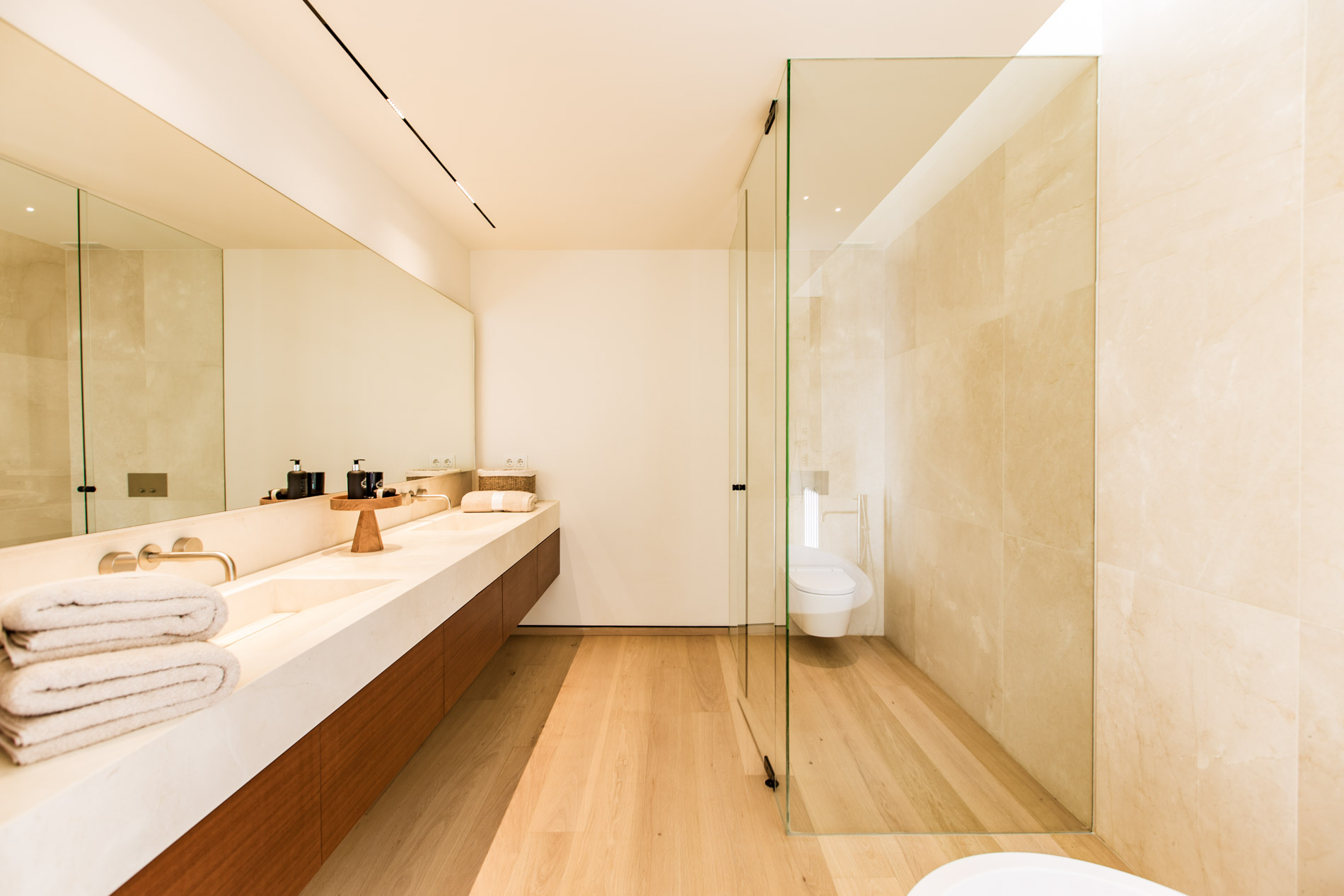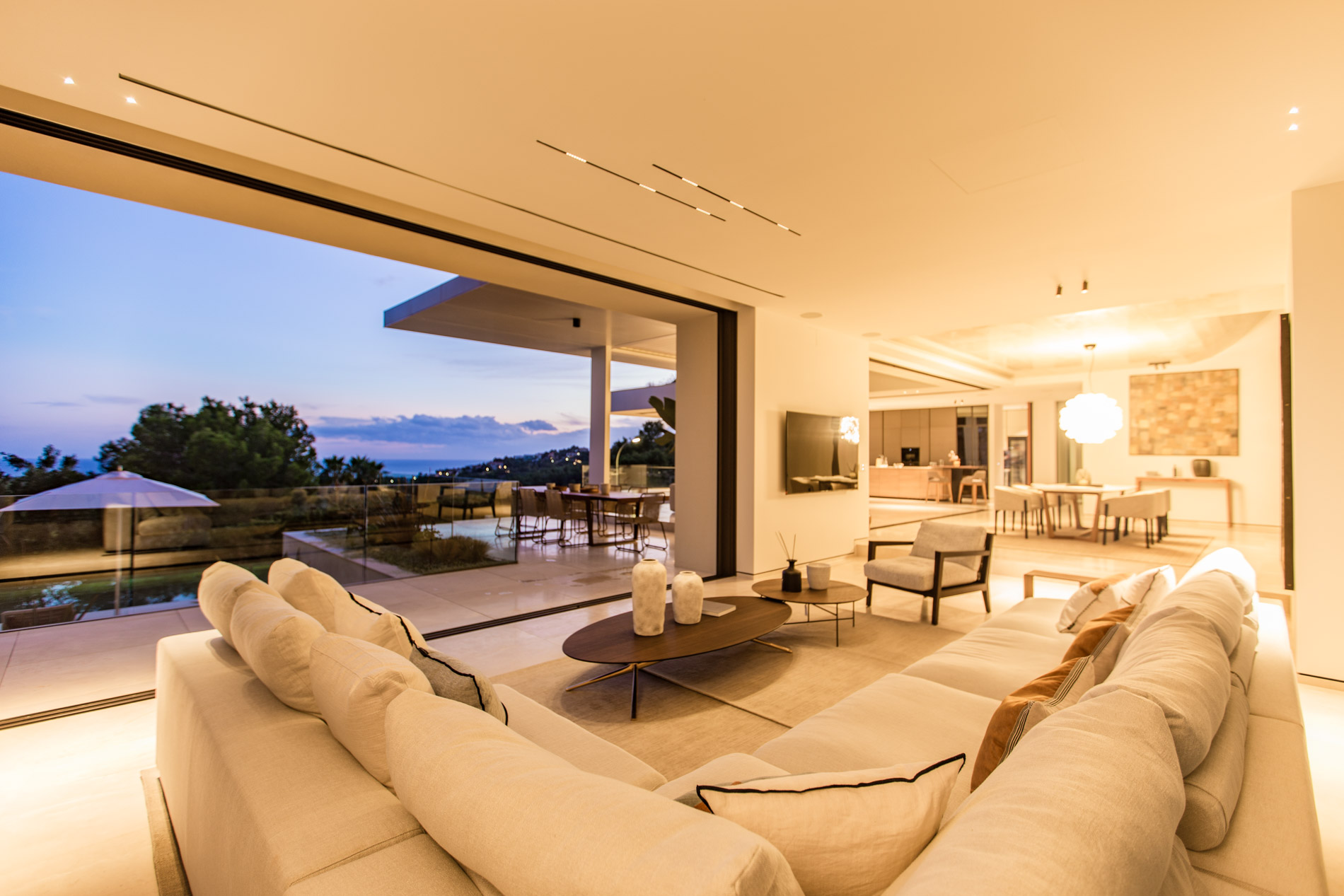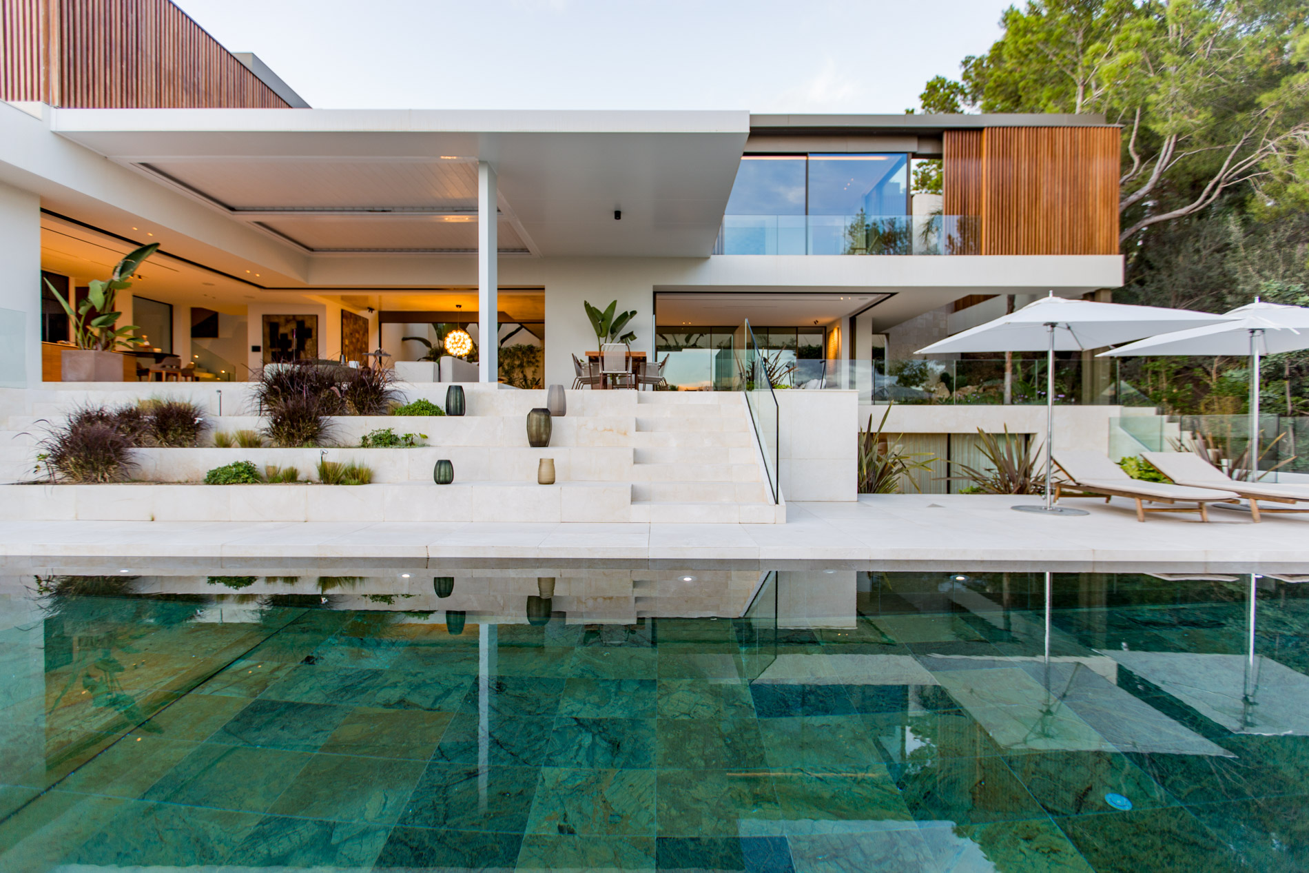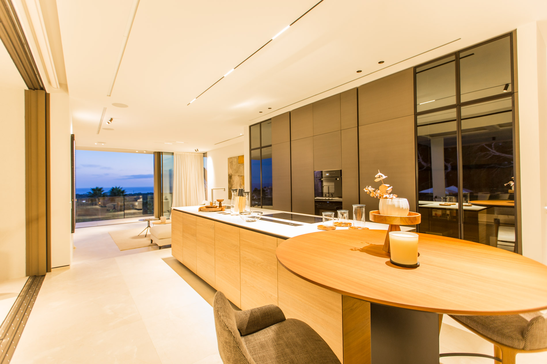 Esta villa es una auténtica obra de arte arquitectónica, diseñada con un nivel de detalle excepcional para resaltar las impresionantes vistas que la rodean. Su concepto vanguardista, desarrollado por un equipo internacional, fusiona materiales naturales de la isla con un entorno de ensueño, creando una propiedad única e inigualable. Distribuida en tres niveles, la villa cuenta con un nivel principal que alberga tres dormitorios, entre ellos una amplia y elegante suite principal con vistas al mar. Para el disfrute de los invitados, dos junior suites adicionales se encuentran en el nivel de la piscina, donde también se ubican una lujosa zona de spa y bienestar y un espacioso gimnasio. El nivel de vida, con su magnífica terraza al aire libre, es otro de los puntos culminantes de esta propiedad. Además de una sala de estar con comedor formal, la villa incluye una amplia y lujosa cocina Poliform con una sala contigua. Un elaborado sistema de iluminación aporta la atmósfera perfecta para cada ocasión. Con grandes ventanales minimalistas de Panoramah!, techos altos, y suelos de piedra natural y parquet de madera de alta calidad en las zonas de descanso, la villa se presenta como un espacio de lujo y confort incomparables. Su sistema domótico, de uso intuitivo y accesible desde cualquier dispositivo móvil, permite un control total del hogar. Las amplias zonas de aparcamiento están preparadas con estaciones de carga para vehículos eléctricos, ofreciendo todas las comodidades de una propiedad moderna y sostenible. Rodeada de exuberantes plantas tropicales y mediterráneas que complementan su diseño galardonado, esta villa es el epítome de la elegancia y el confort. MallorcaSite, su agencia inmobiliaria de confianza en Mallorca, recomienda esta propiedad por su diseño impecable, sus vistas espectaculares y la calidad excepcional de sus materiales.