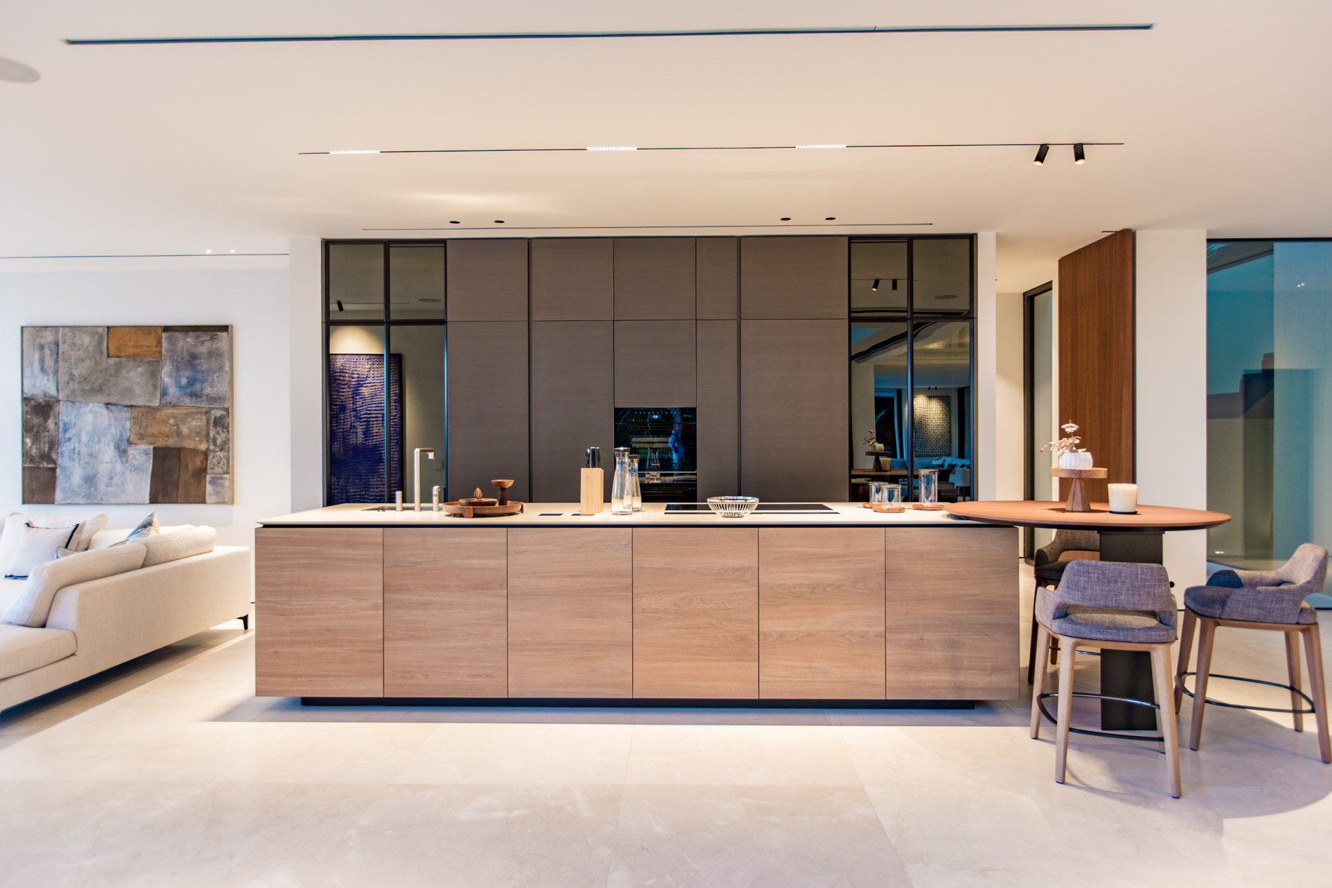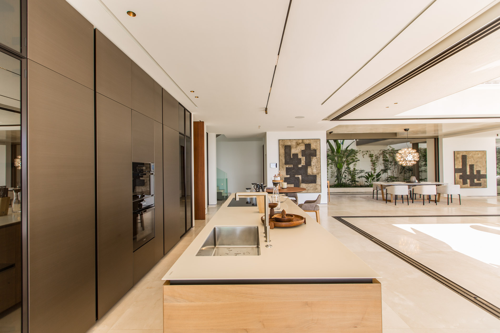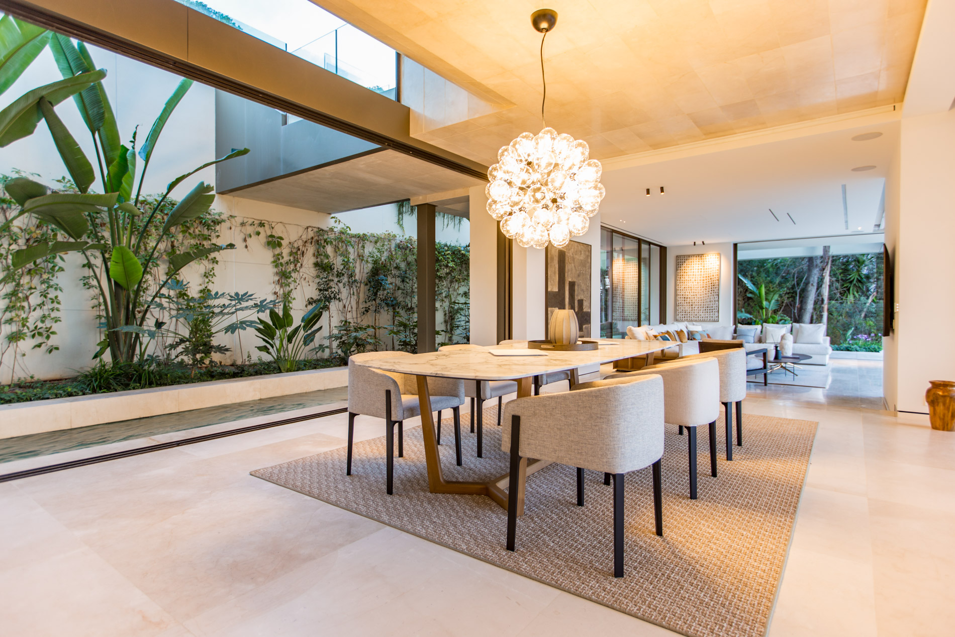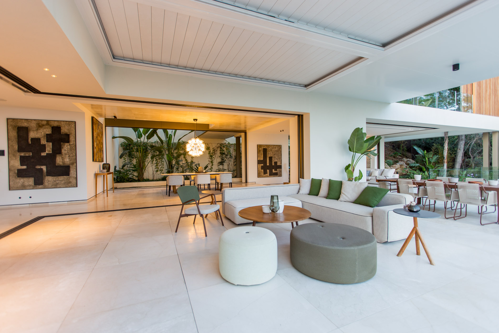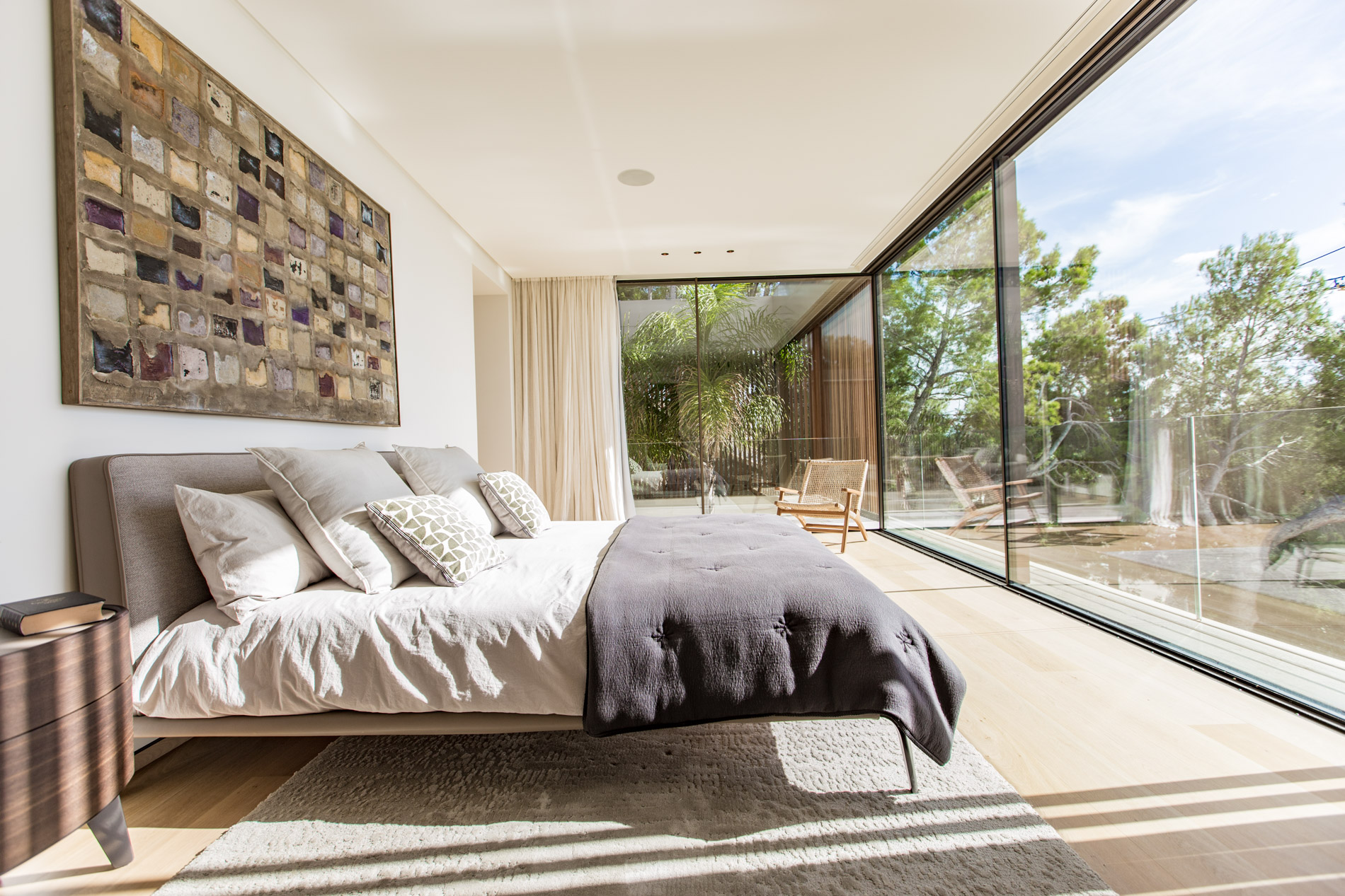 Esta villa es una auténtica obra de arte arquitectónica, diseñada con un nivel de detalle excepcional para resaltar las impresionantes vistas que la rodean. Su concepto vanguardista, desarrollado por un equipo internacional, fusiona materiales naturales de la isla con un entorno de ensueño, creando una propiedad única e inigualable. Distribuida en tres niveles, la villa cuenta con un nivel principal que alberga tres dormitorios, entre ellos una amplia y elegante suite principal con vistas al mar. Para el disfrute de los invitados, dos junior suites adicionales se encuentran en el nivel de la piscina, donde también se ubican una lujosa zona de spa y bienestar y un espacioso gimnasio. El nivel de vida, con su magnífica terraza al aire libre, es otro de los puntos culminantes de esta propiedad. Además de una sala de estar con comedor formal, la villa incluye una amplia y lujosa cocina Poliform con una sala contigua. Un elaborado sistema de iluminación aporta la atmósfera perfecta para cada ocasión. Con grandes ventanales minimalistas de Panoramah!, techos altos, y suelos de piedra natural y parquet de madera de alta calidad en las zonas de descanso, la villa se presenta como un espacio de lujo y confort incomparables. Su sistema domótico, de uso intuitivo y accesible desde cualquier dispositivo móvil, permite un control total del hogar. Las amplias zonas de aparcamiento están preparadas con estaciones de carga para vehículos eléctricos, ofreciendo todas las comodidades de una propiedad moderna y sostenible. Rodeada de exuberantes plantas tropicales y mediterráneas que complementan su diseño galardonado, esta villa es el epítome de la elegancia y el confort. MallorcaSite, su agencia inmobiliaria de confianza en Mallorca, recomienda esta propiedad por su diseño impecable, sus vistas espectaculares y la calidad excepcional de sus materiales.
