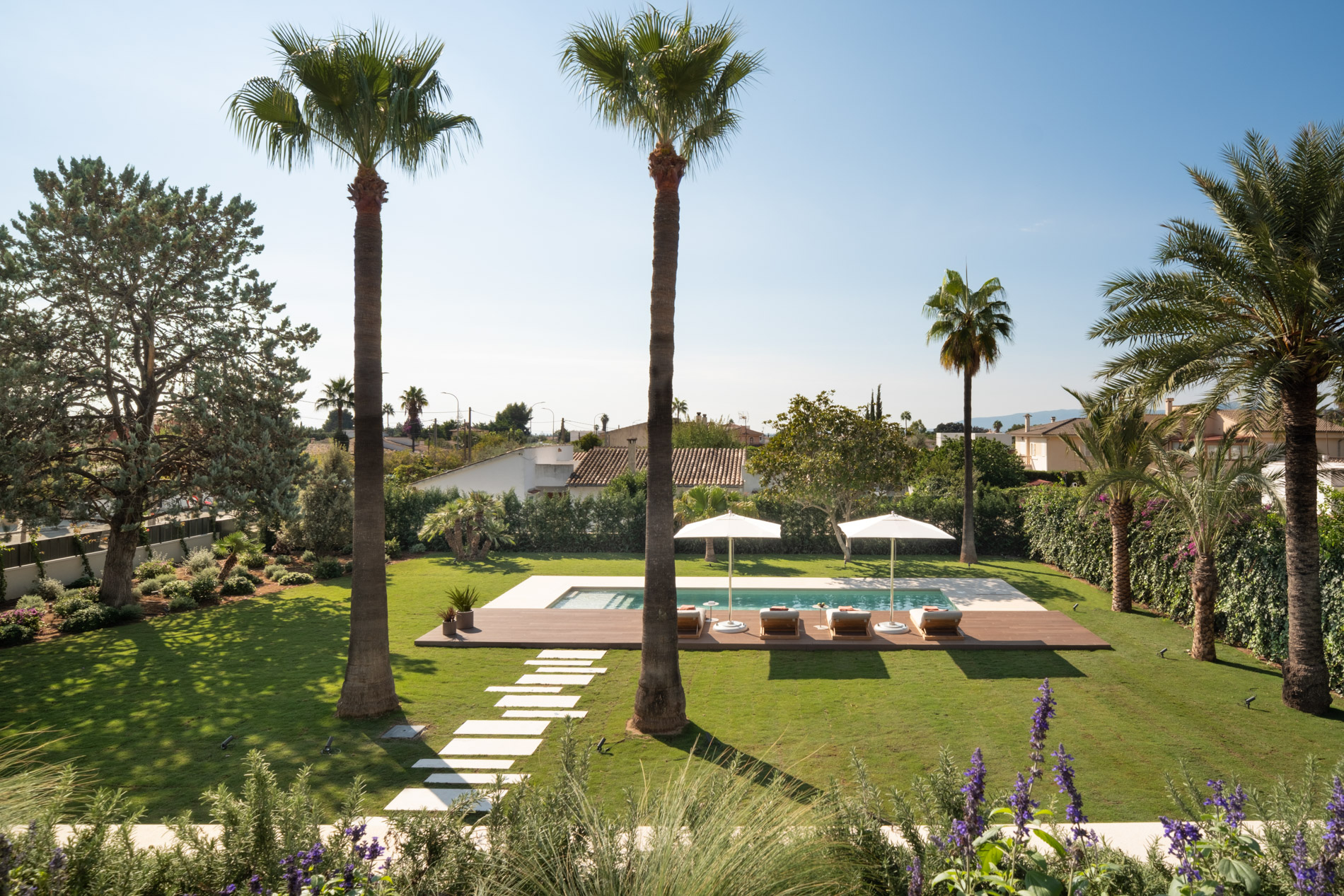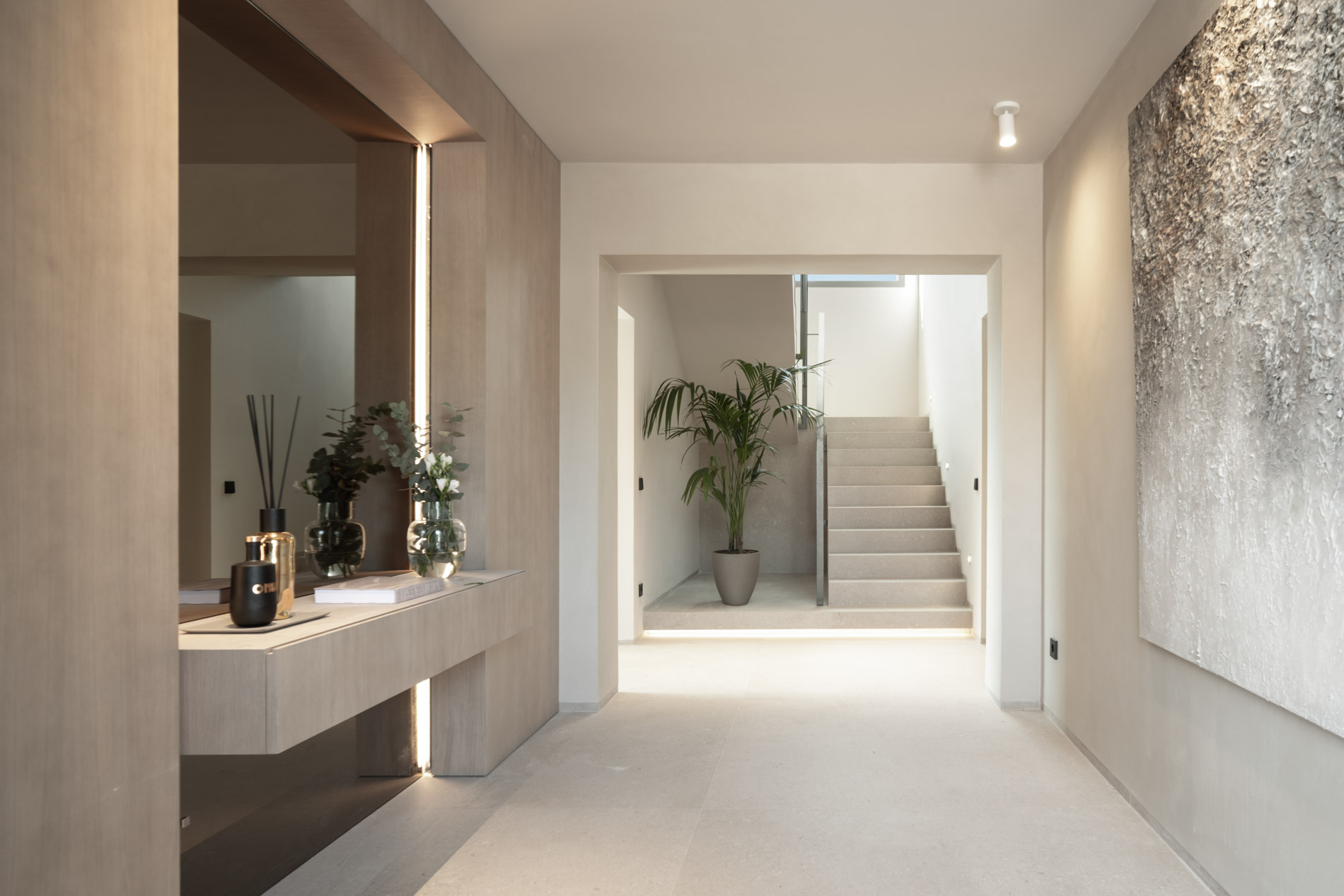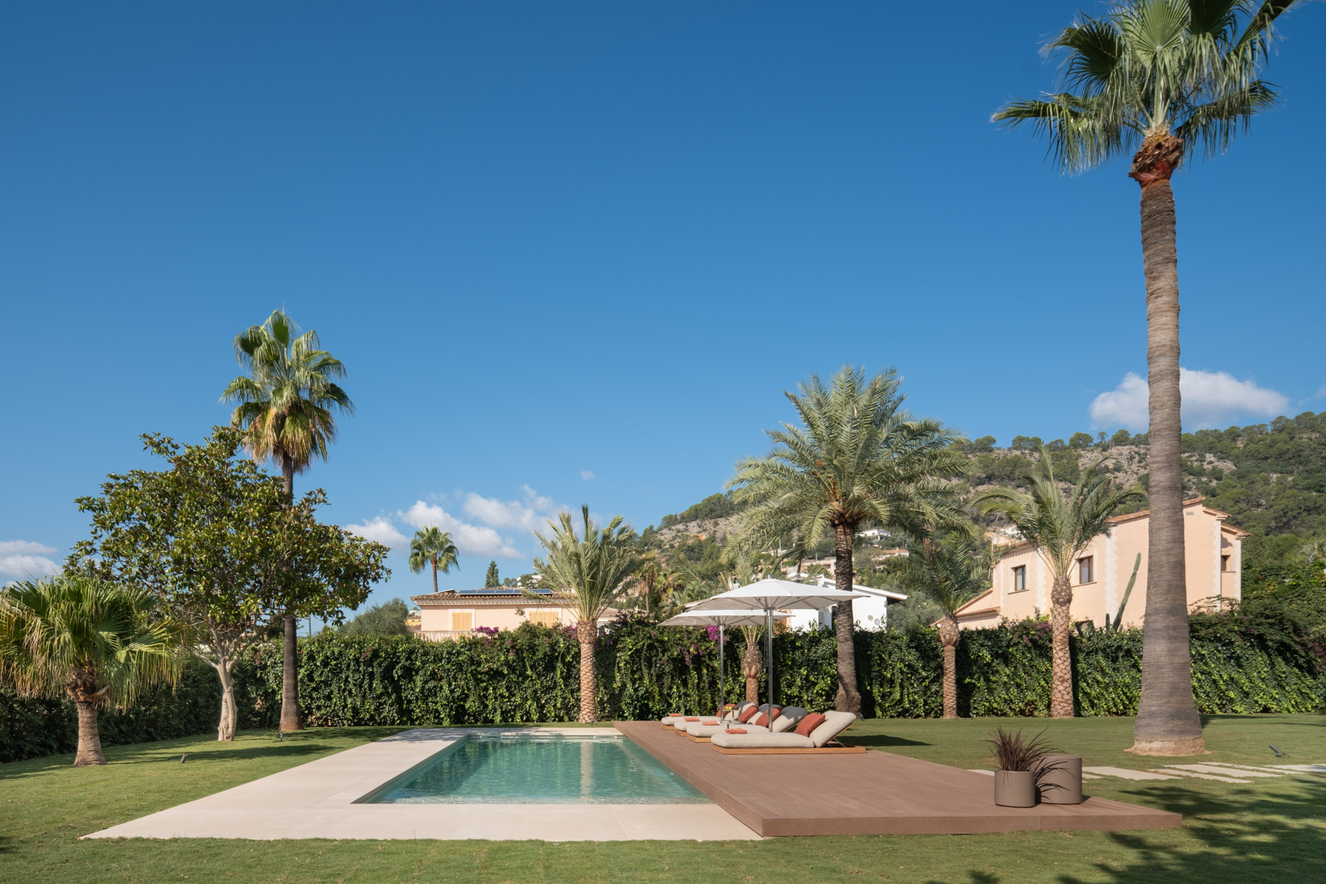 En la tranquila zona residencial de Sa Font Seca, a pocos minutos de Bunyola y con vistas abiertas a la Serra de Tramuntana, se encuentra esta villa contemporánea que encarna la elegancia mediterránea desde un enfoque arquitectónico actual y equilibrado. Muy cerca se encuentra el campo de golf de Son Termes, ideal para los amantes de este deporte, y el centro de Palma está a tan solo 20 minutos en coche, lo que permite disfrutar de la serenidad de la naturaleza sin renunciar a la cercanía de la ciudad. Sobre una parcela de 2.500 m², la propiedad ofrece 450 m² construidos rodeados de jardines con especies autóctonas y amplios porches que invitan a disfrutar de la calma del entorno. Su diseño combina líneas limpias y materiales nobles —piedra técnica Dekton Avorio y madera de roble— con una paleta neutra que aporta serenidad y luminosidad a cada estancia. El interior se organiza en espacios fluidos y abiertos, con cinco dormitorios en suite (uno actualmente utilizado como despacho) y una master suite de aproximadamente 70 m² con vestidor, zona de lectura y chimenea. La zona de día integra salón, comedor y cocina de diseño Gunni & Trentino, equipada con electrodomésticos Miele de alta gama, conectando con las terrazas cubiertas y una piscina de 50 m² rodeada de vegetación. El área wellness —con gimnasio, sauna finlandesa y jacuzzi— ofrece un auténtico espacio de bienestar privado, pensado para disfrutar sin salir de casa. La vivienda incorpora un completo sistema de domótica KNX Zennio, climatización VRV Daikin, calefacción por suelo radiante y control inteligente de iluminación con mecanismos Jung LS 990 Dark, garantizando confort, eficiencia y tecnología avanzada. Completan la propiedad un garaje doble y un huerto con más de 40 árboles frutales —naranjos, limoneros, granados, olivos y manzanos— que aportan frescor y autenticidad al conjunto. MallorcaSite.com recomienda esta propiedad por la experiencia que ofrece: vivir en Sa Font Seca, entre naturaleza y diseño, disfrutando de una casa que equilibra bienestar, privacidad y arquitectura contemporánea.
