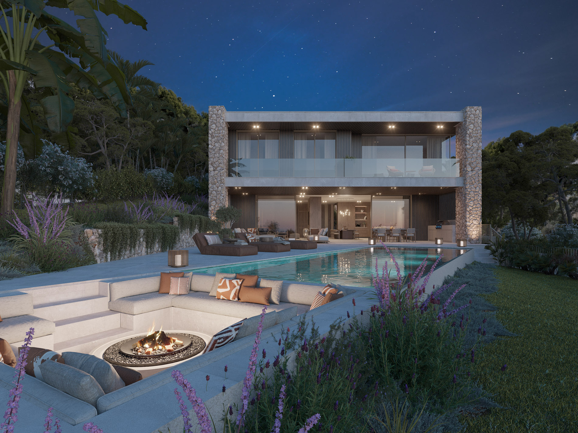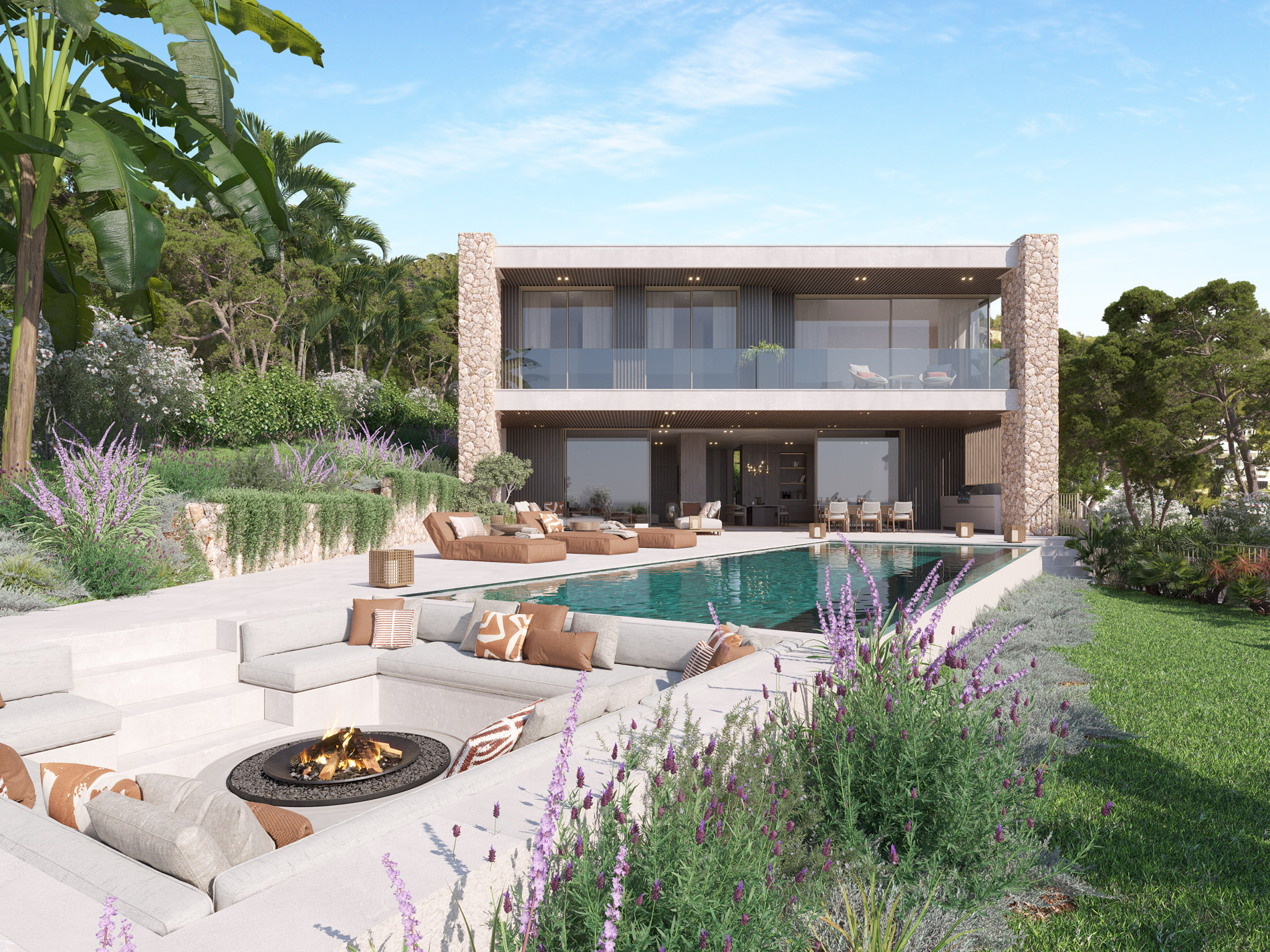 Esta espectacular villa de obra nueva en Costa d’en Blanes combina un diseño mediterráneo moderno con una distribución funcional y materiales de alta calidad. Con una superficie construida de 589 m² sobre una parcela de 970 m², la propiedad ofrece amplios espacios interiores y exteriores, todo orientado a maximizar las impresionantes vistas al mar. Su finalización está prevista para finales de febrero 2026. Desde el momento en que se accede a la planta baja, se percibe una sensación de luz, amplitud y conexión con el entorno. El gran salón-comedor de planta abierta se integra de forma natural con la terraza cubierta, la zona chill-out y la piscina, creando un ambiente perfecto para relajarse o disfrutar con amigos. La cocina, moderna y abierta, se comunica directamente con el comedor y la terraza, permitiendo disfrutar de las vistas al mar en todo momento. En la planta superior se encuentra la zona de descanso, donde destaca una amplia suite principal con vestidor y baño privado, acompañada de tres suites adicionales, todas ellas con baño en suite. El sótano ofrece un espacio exclusivo dedicado al bienestar y el ocio, con gimnasio privado, bodega, sala de cine y un garaje con capacidad para dos coches. Esta villa representa una oportunidad única para quienes buscan una residencia contemporánea, funcional y elegante con vistas al mar, ubicada en una de las zonas residenciales más exclusivas del suroeste de Mallorca. MallorcaSite, su agencia inmobiliaria en Mallorca, recomienda esta propiedad por su ubicación privilegiada, su diseño y su alto nivel de acabados.