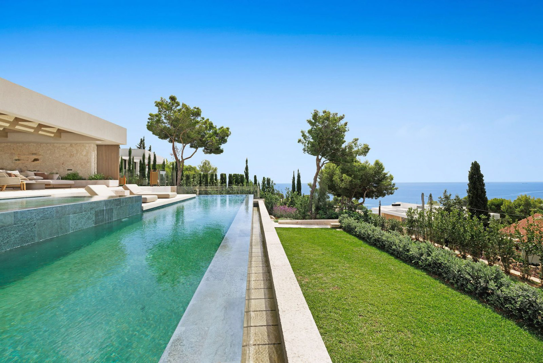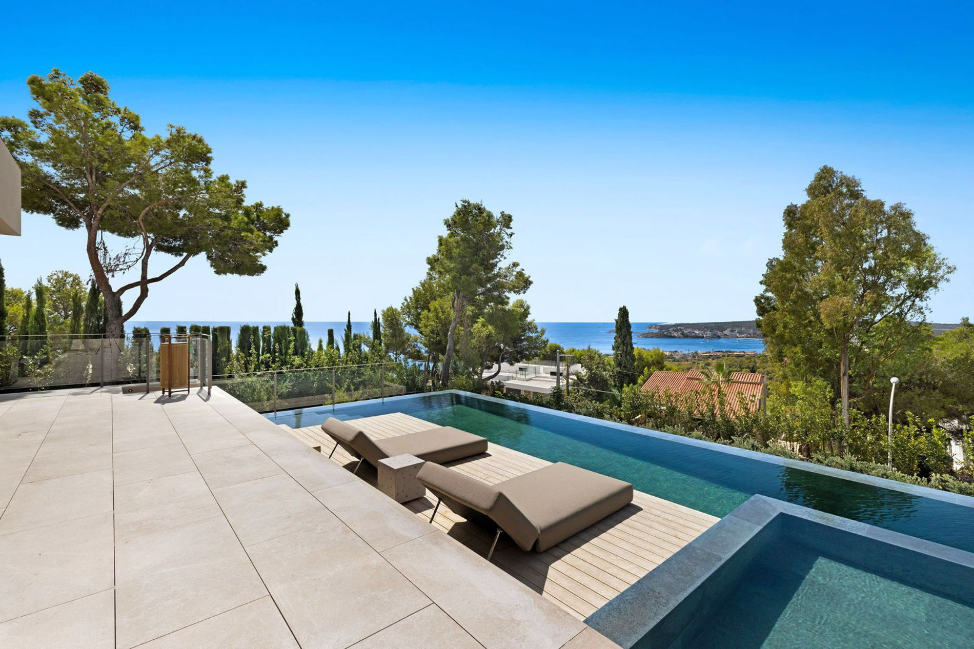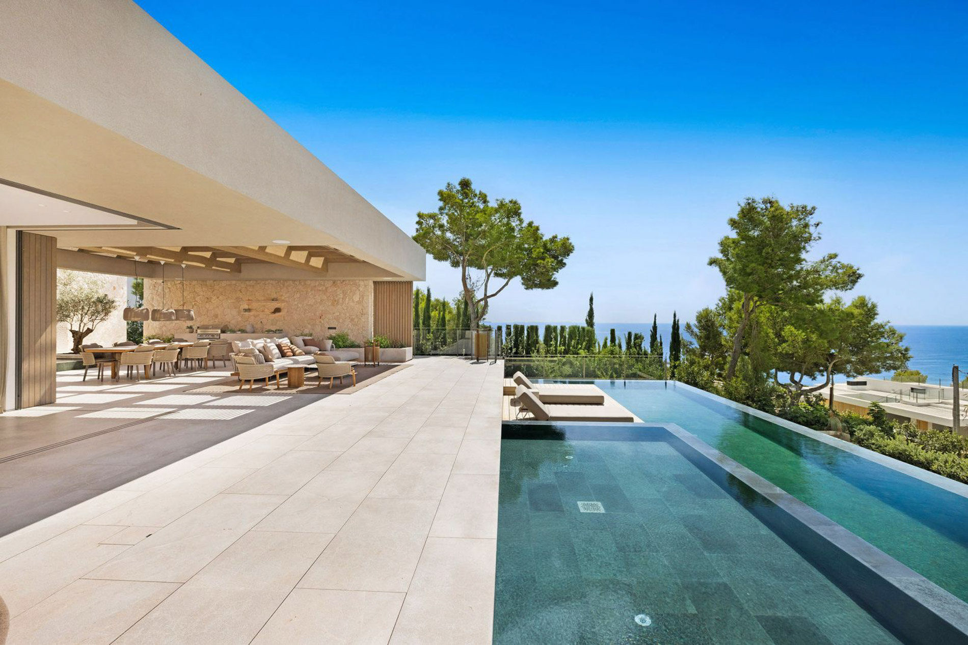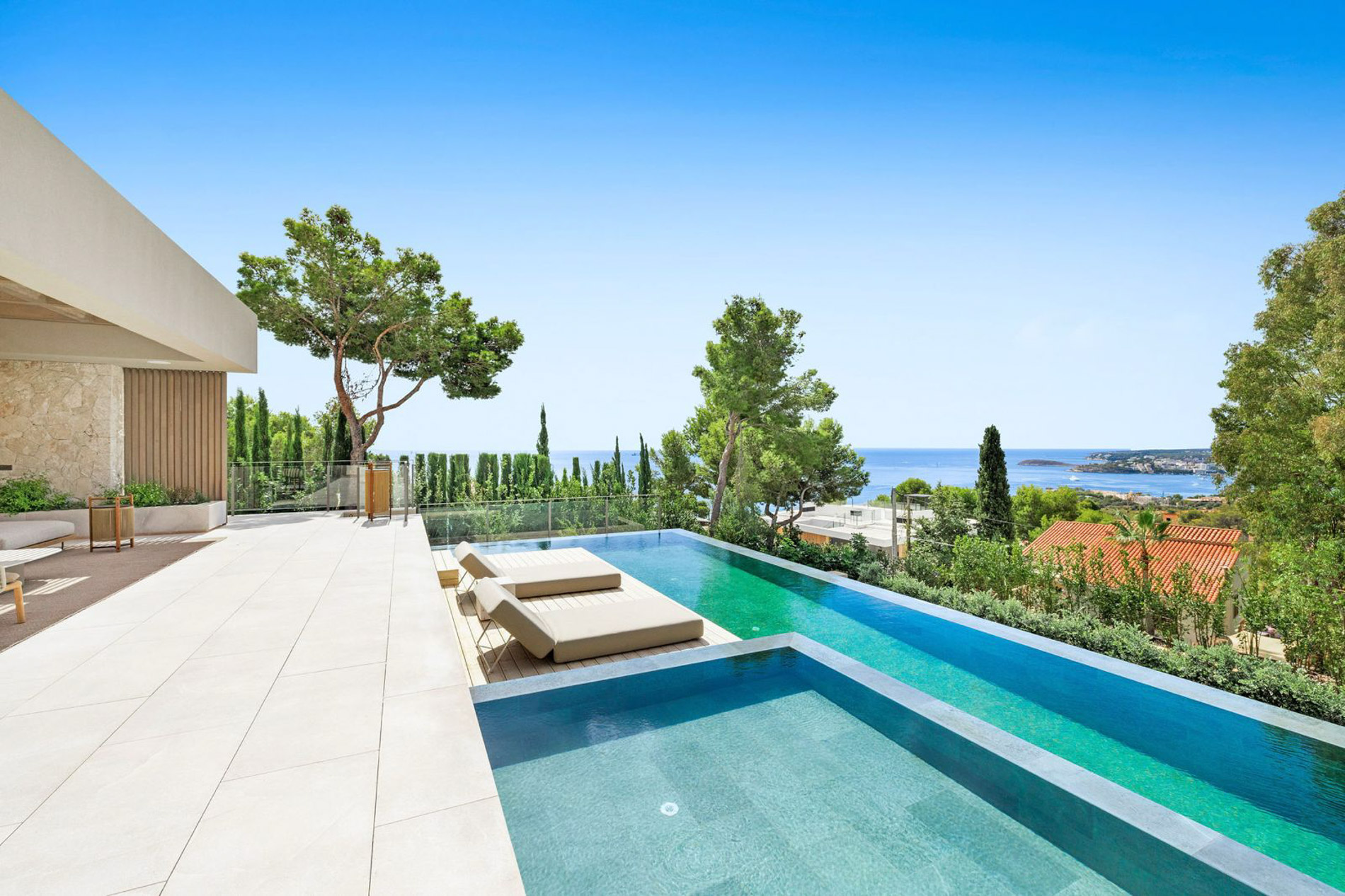 En una de las zonas más exclusivas del suroeste de Mallorca, sobre una amplia parcela de 2.500 m² en las colinas de Costa d’en Blanes, se alza esta residencia única que combina privacidad absoluta, diseño mediterráneo contemporáneo y unas vistas panorámicas que se extienden desde el mar hasta la bahía de Palmanova.
