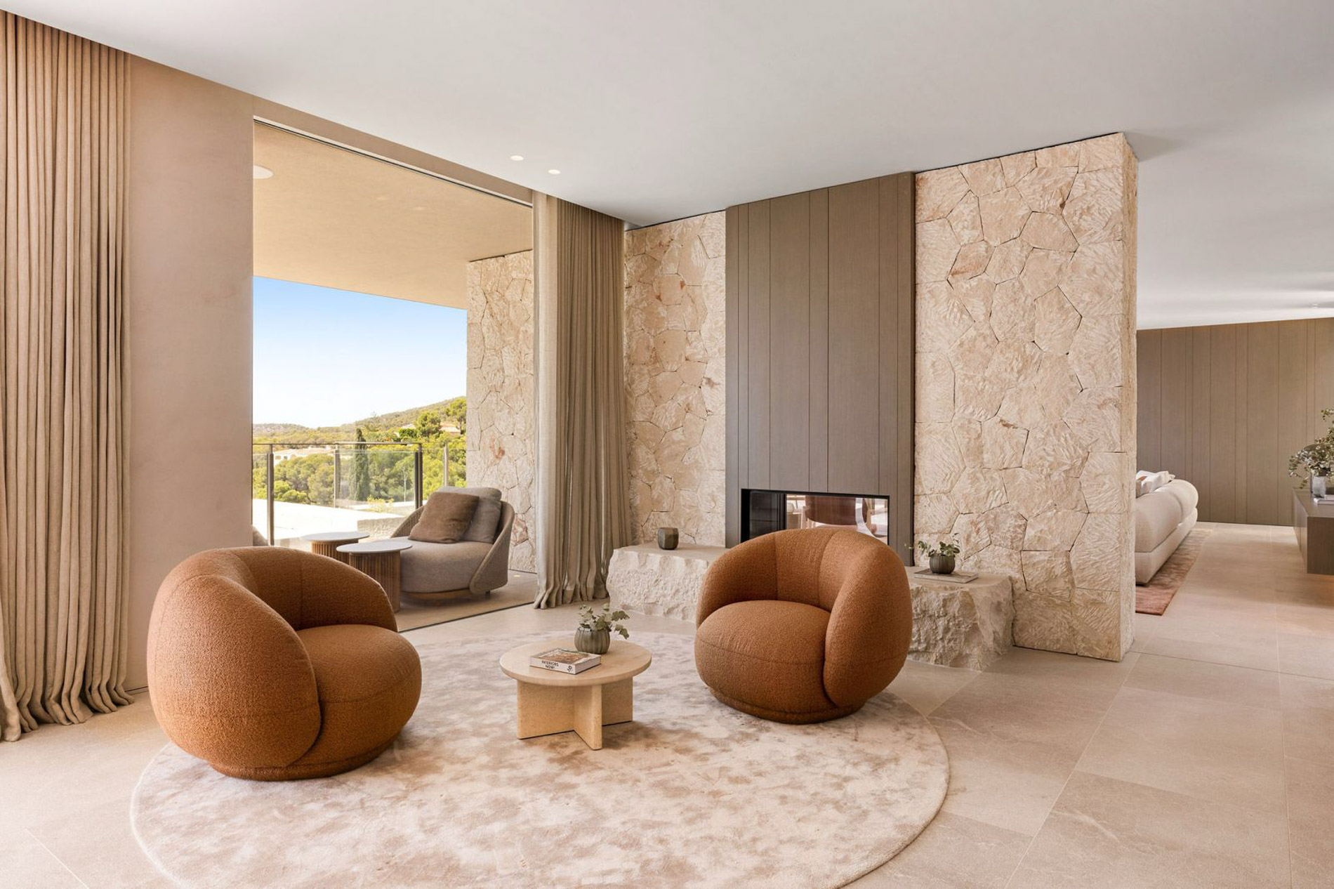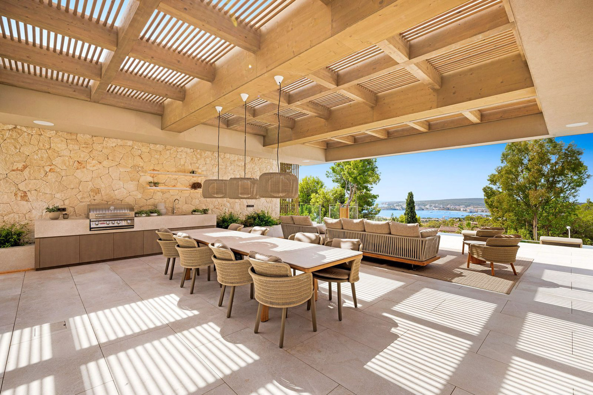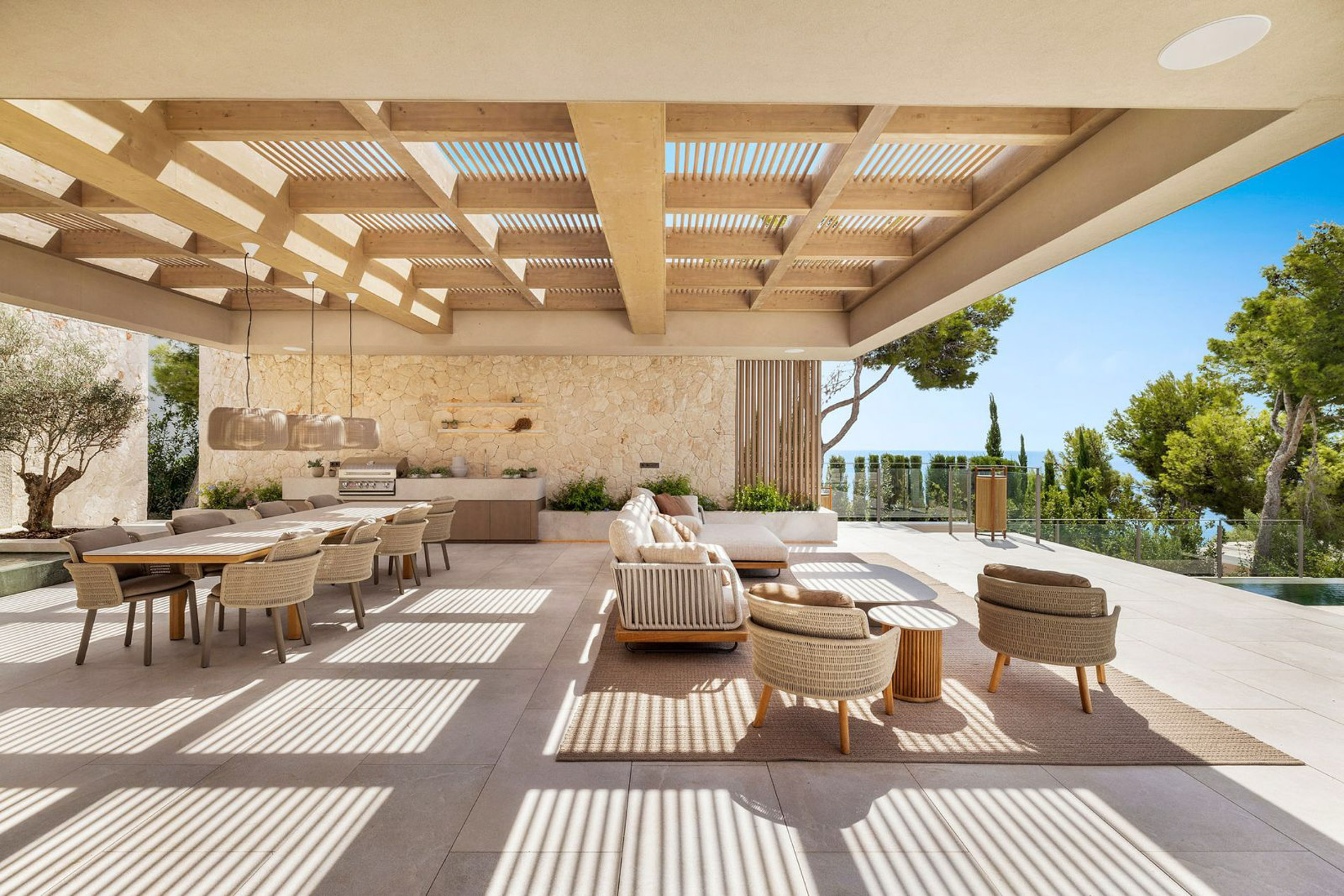 En una de las zonas más exclusivas del suroeste de Mallorca, sobre una amplia parcela de 2.500 m² en las colinas de Costa d’en Blanes, se alza esta residencia única que combina privacidad absoluta, diseño mediterráneo contemporáneo y unas vistas panorámicas que se extienden desde el mar hasta la bahía de Palmanova.