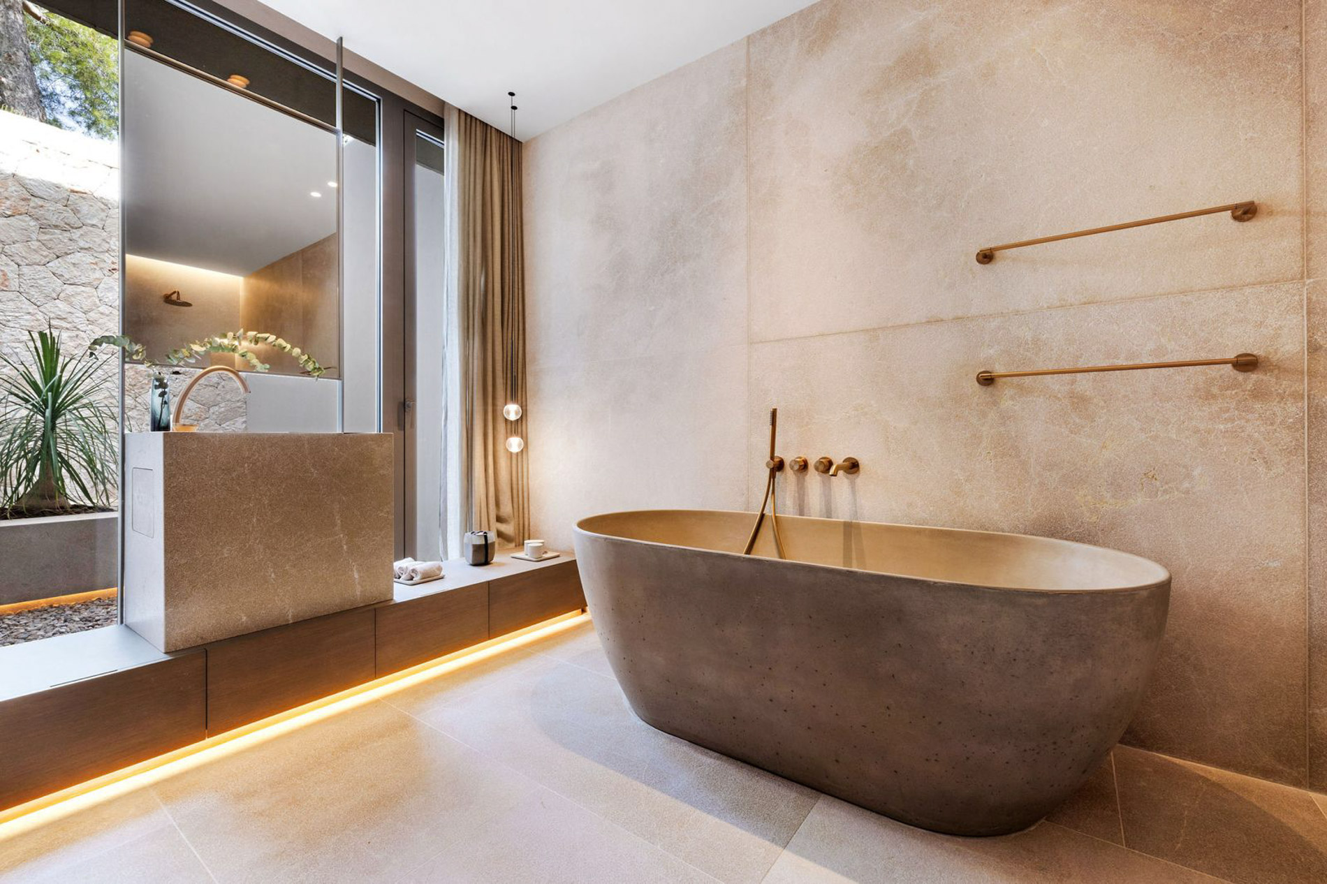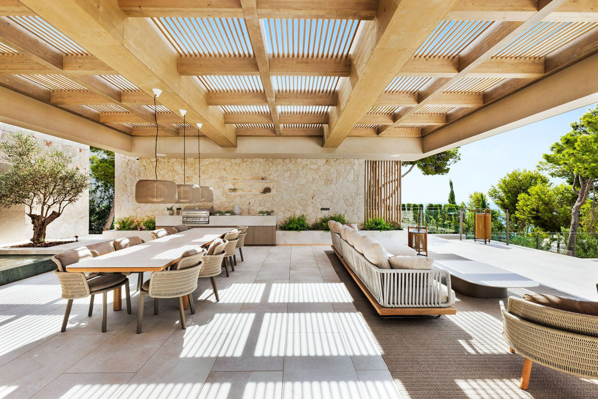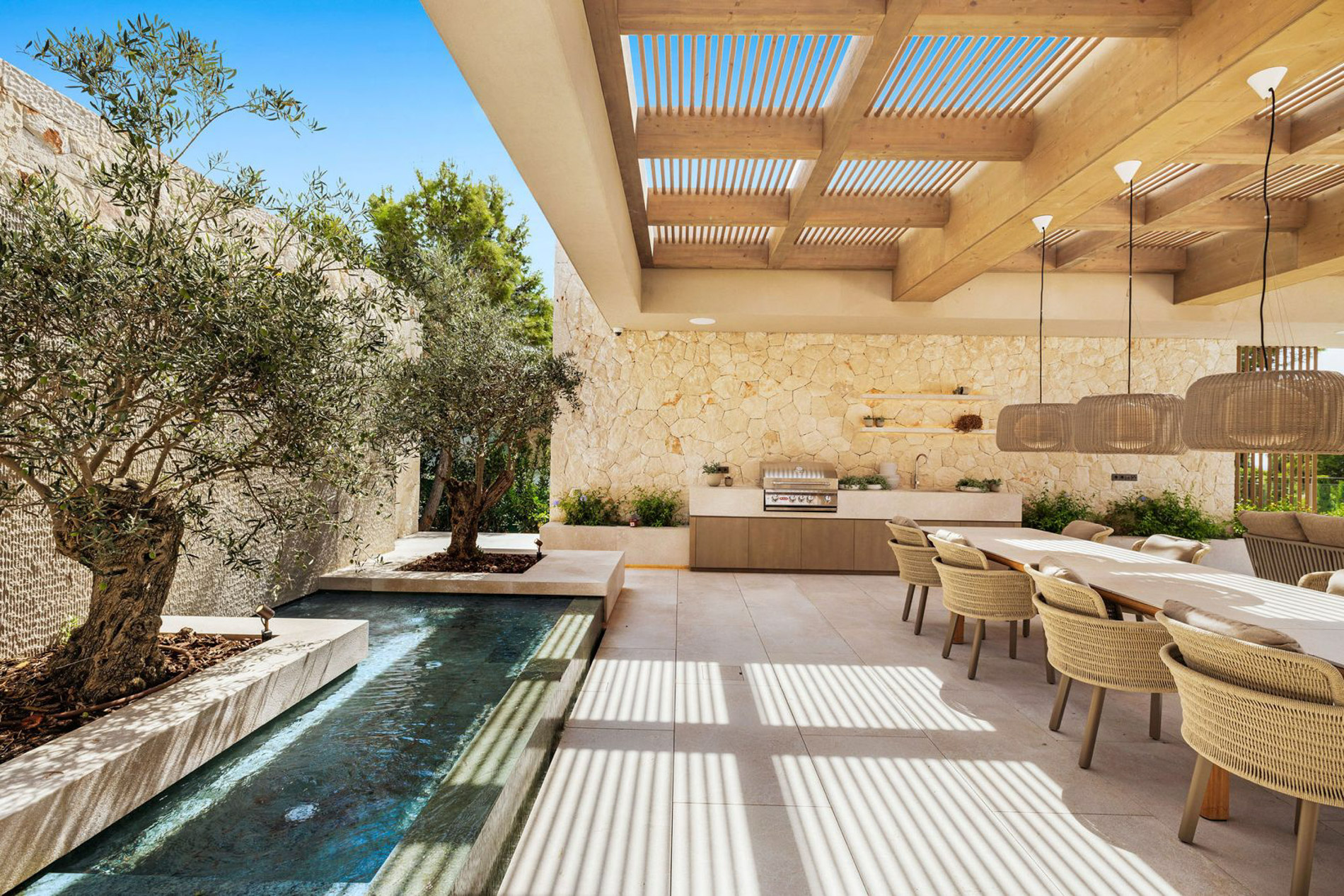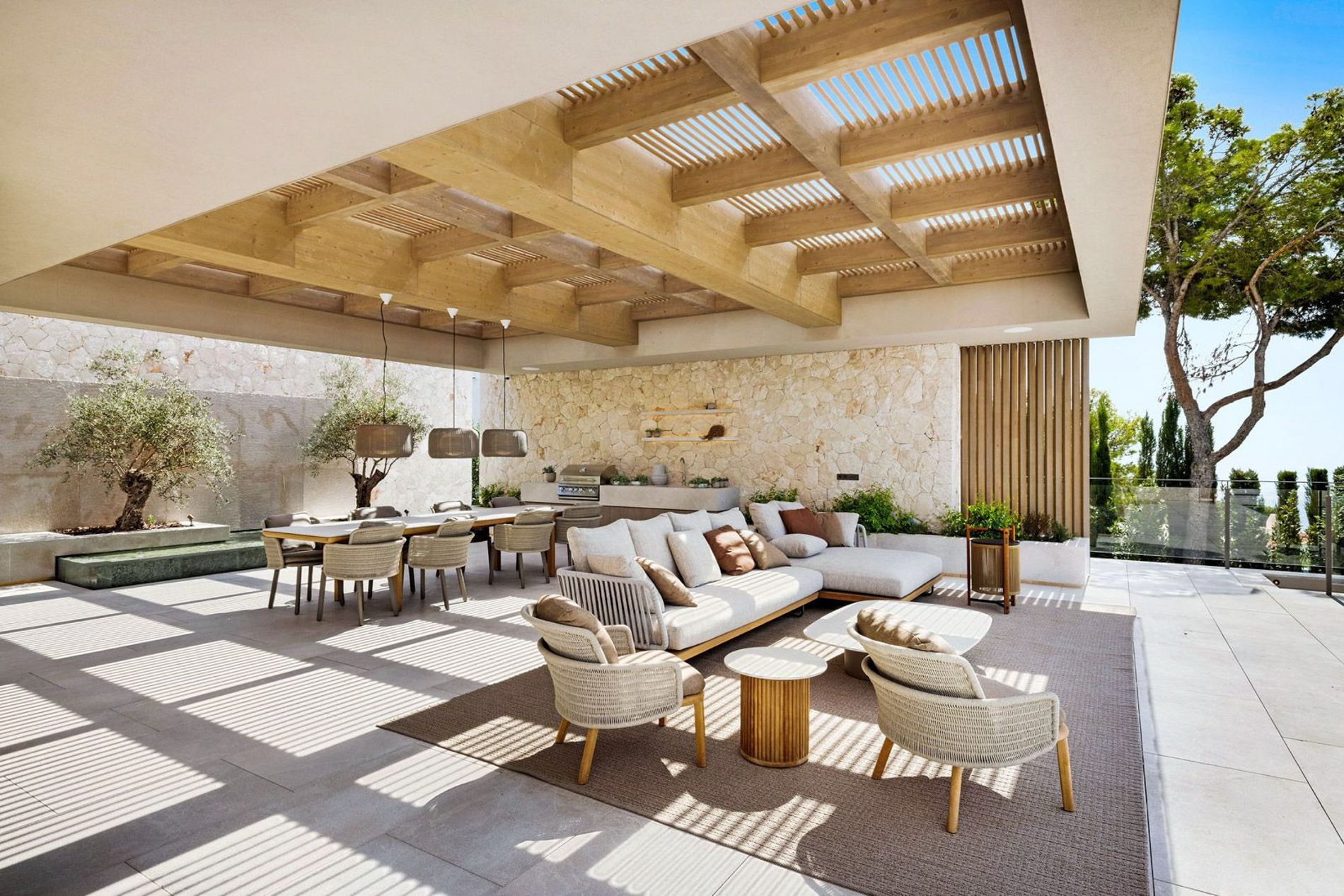 En una de las zonas más exclusivas del suroeste de Mallorca, sobre una amplia parcela de 2.500 m² en las colinas de Costa d’en Blanes, se alza esta residencia única que combina privacidad absoluta, diseño mediterráneo contemporáneo y unas vistas panorámicas que se extienden desde el mar hasta la bahía de Palmanova.