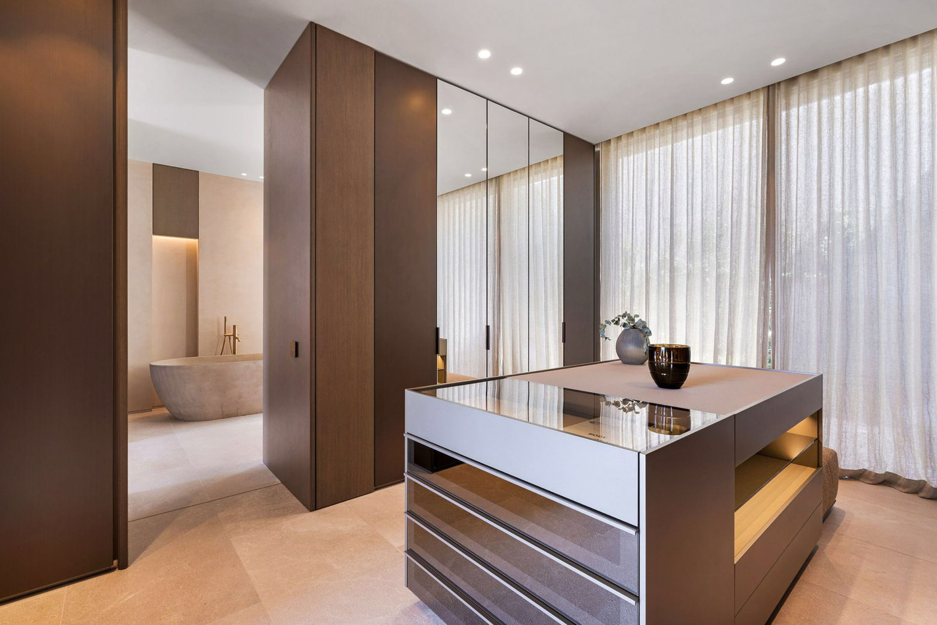 En una de las zonas más exclusivas del suroeste de Mallorca, sobre una amplia parcela de 2.500 m² en las colinas de Costa d’en Blanes, se alza esta residencia única que combina privacidad absoluta, diseño mediterráneo contemporáneo y unas vistas panorámicas que se extienden desde el mar hasta la bahía de Palmanova. Desde la llegada, la propiedad sorprende por su arquitectura elegante y sus líneas limpias, con una orientación suroeste que permite disfrutar de la luz natural durante todo el día, creando ambientes cálidos y acogedores. La planta baja está concebida para la practicidad sin renunciar al lujo: un amplio garaje con capacidad para hasta seis coches, un cine privado, un cuarto de lavandería y un ascensor que conecta cómodamente todos los niveles de la vivienda. En la primera planta se encuentran cuatro dormitorios en suite, amplios y luminosos, con acabados de alta calidad y vistas tranquilas. Un gimnasio con zona de spa completa este nivel, ofreciendo jacuzzi, sauna y baño completo, pensado como un espacio íntimo para relajarse y recuperar energía. La segunda planta está reservada para el gran dormitorio principal, un verdadero refugio privado con vestidor, baño de diseño y acceso directo a una terraza con vistas infinitas al mar. En este mismo nivel se abre la zona de día, articulada alrededor de una sofisticada cocina Poliform y una cocina auxiliar que facilitan tanto la vida cotidiana como las reuniones sociales. La gran terraza exterior invita a vivir al aire libre: dos piscinas, área de barbacoa totalmente equipada, comedor y salones exteriores, además de un elegante espacio presidido por una chimenea moderna, crean el escenario perfecto para disfrutar del clima mediterráneo. Este hogar, dotado con todas las comodidades actuales —desde calefacción por suelo radiante y climatización por conductos hasta accesos sin barreras y materiales nobles en piedra y madera— está concebido para quienes buscan un estilo de vida distinguido, ya sea como residencia principal o como refugio vacacional. En Costa d’en Blanes, esta propiedad se convierte en sinónimo de exclusividad, confort y unas de las vistas más deseadas de la isla. MallorcaSite, su agencia inmobiliaria en Mallorca, recomienda esta propiedad por su zona, estilo y las vistas espectaculares.