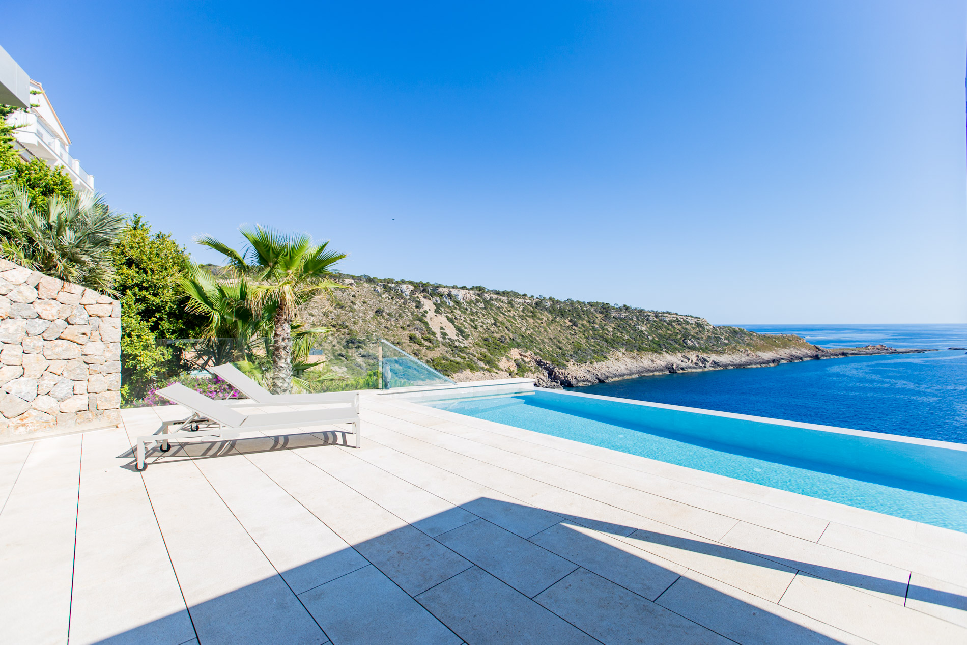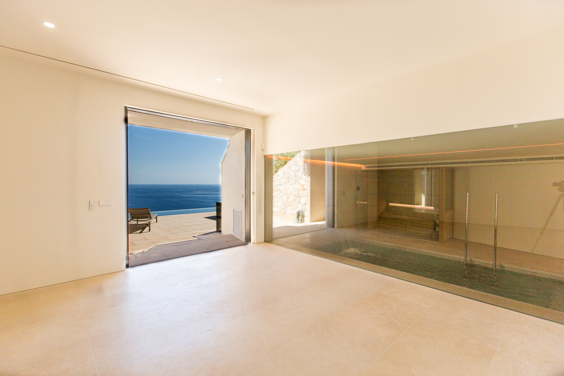 Excepcional villa en primera linea del mar frente a la reserva marina del Toro, a pocos minutos del lujoso puerto deportivo Port Adriano y ofrece espectaculares vistas al mar. La propiedad se presenta en un diseño moderno con muchos detalles. La zona de dormitorios se encuentran en la planta superior, dejando en la inferior la zona de día con un amplio salón-comedor, cocina totalmente equipada y bodega. Además cuenta con una zona de spa con piscina interior, bodega, piscina exterior, apartamento independiente para invitados y amplias terrazas para poder disfrutar del sol y de las vistas. MallorcaSite, tu agencia inmobiliaria en Mallorca, te recomienda esta propiedad por su diseño, por las vistas, por su ubicación.