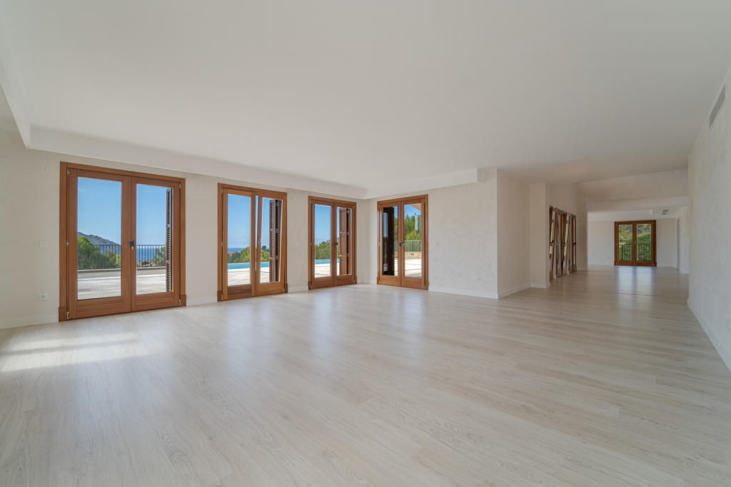 Descubre esta impresionante mansión que se alza majestuosa sobre la bahía de Camp de Mar, ofreciendo una amplia panorámica de la pintoresca región costera del suroeste. Esta finca, construida con un estándar excepcional en 200,759 m2 de terreno, es una verdadera obra maestra de privacidad y exclusividad. Con una superficie construida de 800 m2, esta residencia cuenta con 5 dormitorios y 7 baños, incluyendo 50 m2 de terrazas cubiertas y 500 m2 de terrazas al aire libre, diseñadas para aprovechar al máximo las vistas impresionantes. Entre sus comodidades adicionales se encuentra un garaje para 4 autos, un gimnasio totalmente equipado, un área destinada al personal y una bodega para los amantes del vino. La proximidad a la exclusiva playa y campo de golf de Camp de Mar, a tan solo 3 minutos de distancia, así como a los encantadores cafés del puerto, restaurantes, tiendas y marinas, a menos de 10 minutos en coche, añaden un valor incomparable a esta propiedad de ensueño. MallorcaSite, su inmobiliaria en Mallorca le recomienda esta propiedad por sus vistas, privacidad y calidad incomparables.