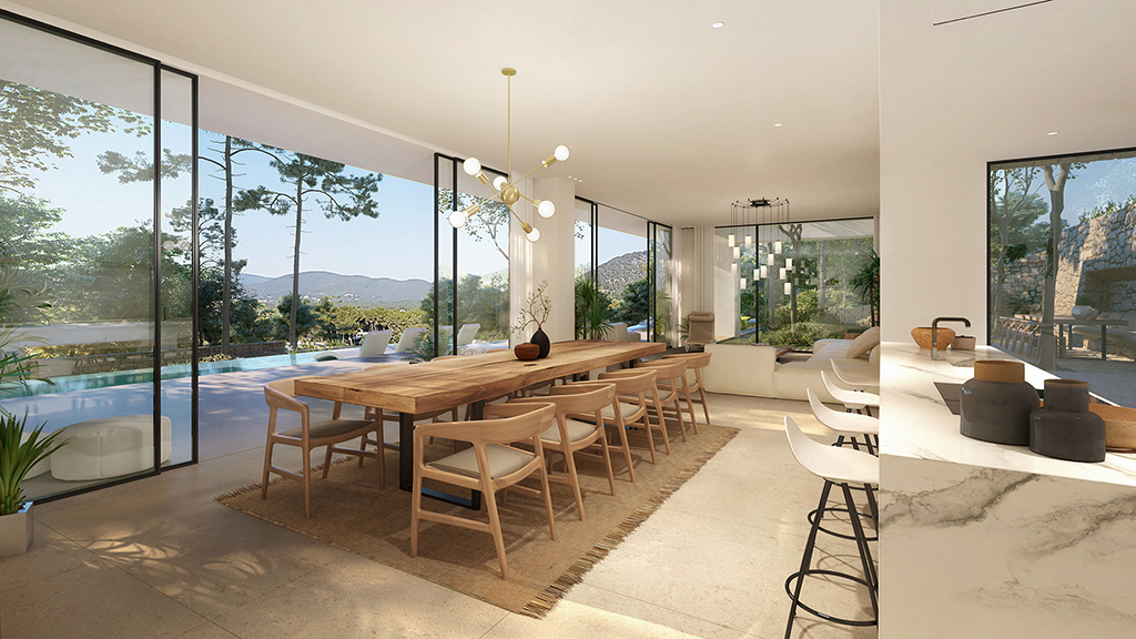 Villa de un solo nivel con cuatro dormitorios vistas abiertas y considerable privacidad. Lujo en una sola planta con una clara separación entre la zona de ocio y la zona de dormitorios. La sala de estar, la cocina abierta y las áreas al aire libre son perfectas para reuniones. Amplio sótano y garaje con espacio para hasta cuatro coches. Es único por su proximidad a la ciudad de Ibiza y sus puertos deportivos, a la vez que ofrece un tranquilo aislamiento y privacidad en una de las zonas más impresionantes y buscadas de la isla. Este desarrollo no solo es exclusivo porque limita y tiene vista al campo de golf Roca Llisa, sino que también cuenta con un acceso controlado y una seguridad excepcional, y brinda todos los servicios premium de una comunidad cerrada de alta gama. Throughout Ibiza you will not find a more authentically styled, exceptionally designed, prestigious development that respects and integrates with its natural environment and surroundings and offers enchanting views. Cada villa disfruta de una posición elevada que ofrece impresionantes vistas panorámicas tanto de la prístina vegetación del campo de golf como de los bosques de pinos más allá. La privacidad no se ve comprometida ya que cada villa cuenta con un aislamiento completo e inquebrantable. El desarrollo ofrece sistemas de seguridad premium en todo el dominio, garantizando una seguridad y protección óptimas en el corazón de la naturaleza virgen. La exclusividad de la finca comienza con el acceso seguro a cada villa. Los propietarios, y sus invitados autorizados, pasarán primero por la entrada asegurada de Roca Llisa, luego por la puerta de seguridad vigilada que permite el acceso al dominio, desde donde caminos privados conducen a cada propiedad que se ingresa a través de un sistema de seguridad individual y personalizado. Cada propiedad se encuentra en una parcela ajardinada de al menos 1.500m2 con total privacidad de las residencias vecinas. La densidad de construcción se ha mantenido al mínimo para que cada villa coexista mágicamente con su bosque circundante en este hermoso y privilegiado entorno.MallorcaSite, su agencia inmobiliaria en Mallorca, le recomienda esta propiedad por su ubicación única y sus materiales de alta gama.