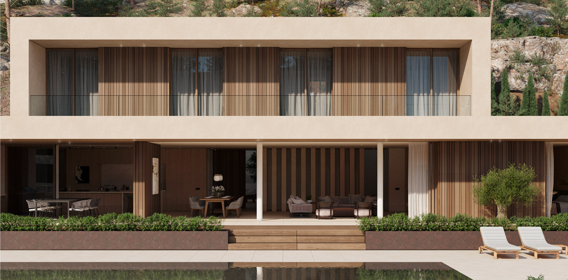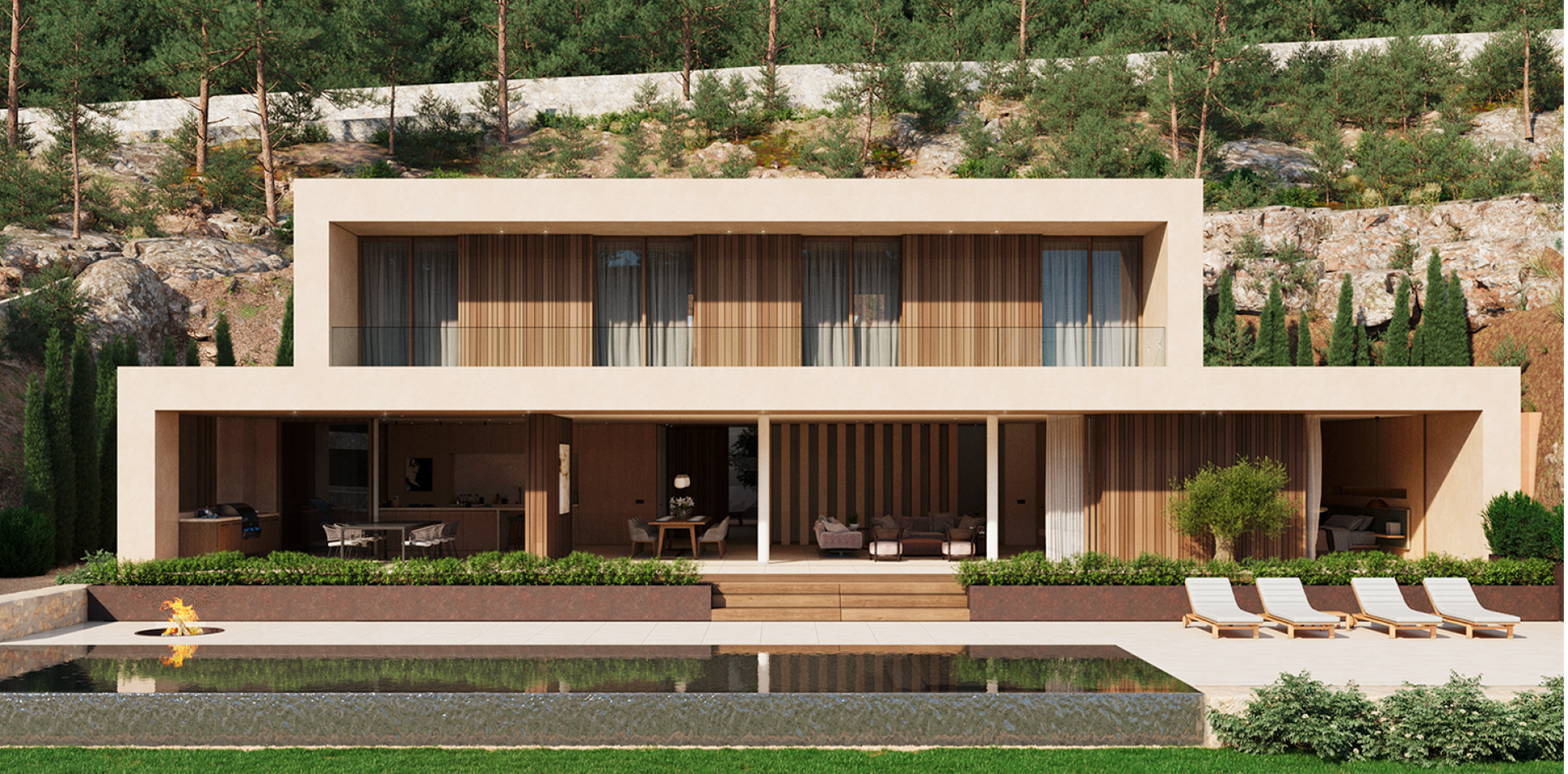 ¡Bienvenido a una obra maestra de la vida moderna en la prestigiosa zona de Son Vida! Esta villa de nueva construcción ofrece una combinación armoniosa de lujo, diseño y confort, personificando el epítome de la arquitectura contemporánea. Ubicada dentro de un vecindario exclusivo, esta propiedad presenta una oportunidad única de ser propietario de una residencia verdaderamente extraordinaria. Al entrar a la villa, quedará inmediatamente impresionado por la perfecta integración de los espacios. La planta baja cuenta con una amplia sala de estar que conecta a la perfección una cocina de planta abierta, un comedor y un salón. Bañado por la luz natural que entra a través de grandes ventanales, este espacio irradia una sensación de amplitud y sofisticación. Toda la sala de estar se extiende sin esfuerzo a una terraza notablemente espaciosa, que ofrece impresionantes vistas panorámicas de los jardines meticulosamente diseñados y la pieza central: una piscina de generosas proporciones. Esta terraza está destinada a ser un punto focal tanto para la relajación tranquila como para el entretenimiento animado, ofreciendo el escenario perfecto para cenar al aire libre, descansar bajo el sol y celebrar reuniones inolvidables. Completando el encanto de la planta baja se encuentra un dormitorio en suite cuidadosamente diseñado que puede servir como refugio para invitados o como un espacio conveniente para la vida multigeneracional. El baño contemporáneo añade un toque de elegancia y practicidad. Al aventurarse al piso superior, encontrará un remanso de privacidad y opulencia. Tres suntuosos dormitorios, cada uno acompañado de su propio baño en suite, brindan un escape sereno tanto para los ocupantes como para los invitados. Estas habitaciones están cuidadosamente ubicadas para maximizar la privacidad y ofrecer magníficas vistas de los alrededores. Disfrute de la comodidad de un amplio garaje con capacidad para hasta cuatro coches. Esta característica garantiza que tanto sus preciados vehículos como su tranquilidad estén bien cuidados. Más allá de los lujos que se encuentran dentro de la villa, la prestigiosa ubicación de Son Vida realza aún más su atractivo. Esta codiciada zona es conocida por su exclusividad, ofrece un entorno seguro y tranquilo y al mismo tiempo está cerca de la vibrante vida urbana que Palma de Mallorca tiene para ofrecer.