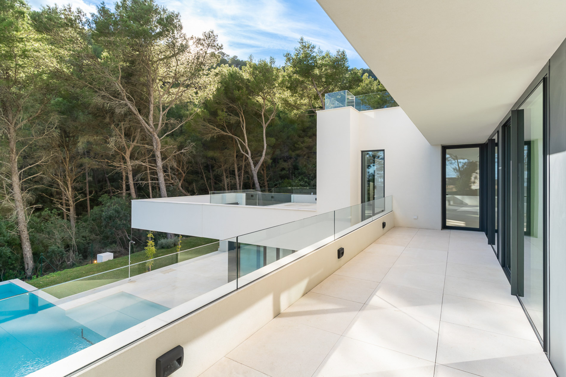 Situada en las colinas más prestigiosas de Son Vida, la dirección residencial más exclusiva de Palma, esta residencia de nueva construcción representa una interpretación refinada del estilo de vida mediterráneo contemporáneo. La propiedad ha sido concebida por arquitectos con un enfoque claro en la elegancia, la innovación y el confort. Se asienta sobre una parcela de 1.009 m² y ofrece aproximadamente 400 m² de espacios interiores cuidadosamente diseñados. Desde el primer momento, un sistema de acceso por huella dactilar introduce un hogar completamente inteligente, donde iluminación, climatización y seguridad responden de forma intuitiva a las exigencias de la vida moderna, creando una atmósfera de sofisticación natural. El corazón de la vivienda se articula en torno a una espectacular piscina de 25 metros, ubicada en el nivel principal y conectada de manera fluida con una elegante cocina Siematic equipada con electrodomésticos Gaggenau de alta gama. El salón y el comedor de concepto abierto se prolongan hacia amplias terrazas soleadas y patios sombreados, enmarcando vistas serenas sobre el paisaje verde de Son Vida. Los espacios interiores y exteriores se funden con naturalidad, creando un escenario ideal tanto para el descanso íntimo como para encuentros sociales con estilo. La planta de dormitorios ofrece privacidad y comodidad en perfecta armonía. Una generosa suite principal con vestidor y baño en suite se complementa con tres dormitorios dobles adicionales, cada uno con su propio baño, garantizando independencia y confort para familia e invitados. El nivel inferior abre un abanico de posibilidades, ya sea como gimnasio privado, sala de cine o espacio de ocio. Un impactante detalle arquitectónico —una ventana desde la piscina superior— inunda esta planta de luz natural, aportando carácter y calidez, mientras que una bodega climatizada refuerza la sensación de un lujo discreto y bien pensado. Cada detalle ha sido cuidadosamente estudiado, desde la calefacción por suelo radiante y el aire acondicionado integrado hasta el jardín paisajístico con sistema de riego automático. Un garaje doble con pérgola y paneles solares subraya el compromiso con la eficiencia y la sostenibilidad. Al tratarse del último proyecto en la calle, la propiedad disfruta de un entorno plenamente consolidado, ofreciendo calma y privacidad desde el primer día. Son Vida es sinónimo de exclusividad atemporal en Mallorca. Conocida por su seguridad, tranquilidad y prestigio, esta comunidad cerrada se encuentra rodeada de colinas verdes y vistas panorámicas sobre la bahía de Palma. Alberga tres de los mejores campos de golf de la isla y se sitúa a pocos minutos de algunas de las playas y beach clubs más apreciados del suroeste. Colegios internacionales, las elegantes zonas comerciales de Palma y el centro histórico están muy cerca, mientras que el aeropuerto internacional se alcanza en apenas veinte minutos, combinando comodidad absoluta y privacidad total. Más que una vivienda, esta propiedad es una declaración de arquitectura contemporánea, innovación y conexión con el entorno natural. MallorcaSite recomienda esta propiedad para quienes buscan un estilo de vida refinado en una de las ubicaciones más exclusivas de la isla.