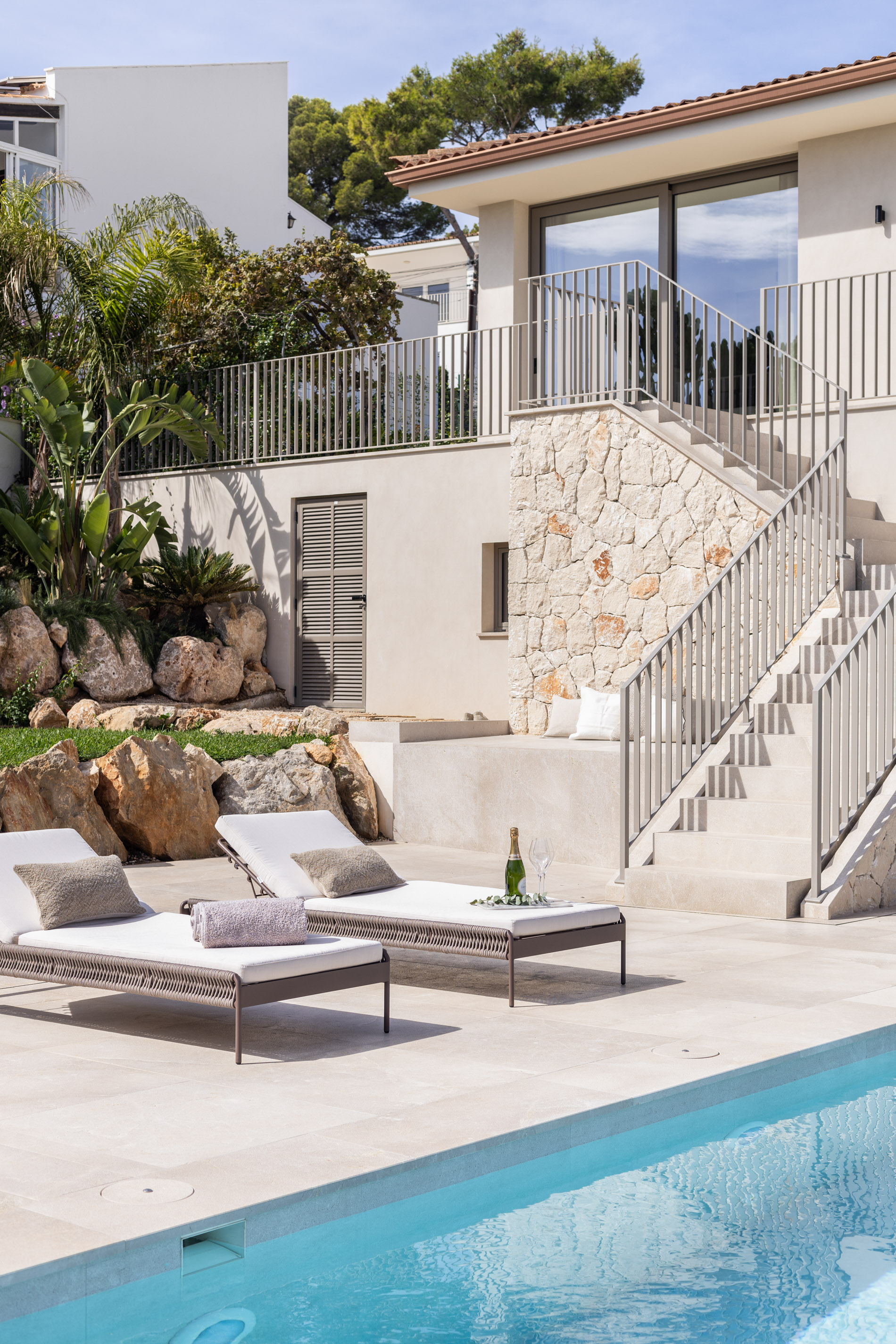 Exclusiva Villa Familiar en Palmanova, ideal para familias que buscan disfrutar de un estilo de vida mediterráneo único. Con una arquitectura que maximiza la luz natural y amplios espacios diseñados para aprovechar cada rincón, esta propiedad es un refugio perfecto en Mallorca. Atractiva y elegante villa completamente reformada en una ubicación tranquila y privilegiada en Palmanova, situada a pocos pasos de la playa, una variada selección de restaurantes, transporte público, clubes de tenis y prestigiosos colegios internacionales. Esta propiedad destaca por su cercanía a todos los servicios necesarios para un estilo de vida cómodo y, al mismo tiempo, se encuentra a solo 10 minutos en coche de la vibrante ciudad de Palma, lo que la convierte en un refugio ideal tanto para vivir todo el año como para disfrutar durante las vacaciones. Reformada con atención al detalle y un gusto exquisito, esta residencia logra combinar a la perfección el lujo moderno con el encanto atemporal del Mediterráneo. Cada aspecto del diseño ha sido cuidadosamente pensado para desprender elegancia y sofisticación, creando una atmósfera armoniosa que se fusiona con la belleza natural de su entorno. El resultado es un refugio sereno y acogedor en el corazón de Palmanova, perfecto para quienes valoran la tranquilidad sin renunciar a las comodidades. Los espacios exteriores de la propiedad son igualmente impresionantes. Un jardín paisajístico exuberante, lleno de árboles frutales maduros y plantas mediterráneas, aporta una sensación de frescura y tranquilidad, mientras que la elegante piscina contemporánea invita a refrescarse y relajarse bajo el sol. Varias zonas de terrazas rodean la casa, ideales para disfrutar de cenas al aire libre, reuniones familiares o simplemente para relajarse y apreciar la calma del entorno. Para aquellos que buscan un estilo de vida refinado y apacible, esta residencia ofrece una perfecta fusión de elementos arquitectónicos tradicionales con las comodidades más modernas. Los interiores son sofisticados y están diseñados para maximizar el confort, mientras que el atractivo de la vida al aire libre se refleja en las amplias terrazas y espacios ajardinados, logrando así un equilibrio que permite disfrutar al máximo de la vida mediterránea. Mallorcasite, su agencia inmobiliaria en Mallorca, recomienda encarecidamente esta propiedad no solo por su excelente ubicación y la calidad de su reciente renovación, sino también por la cercanía a la playa y la conveniencia de tener todos los servicios necesarios al alcance de la mano.