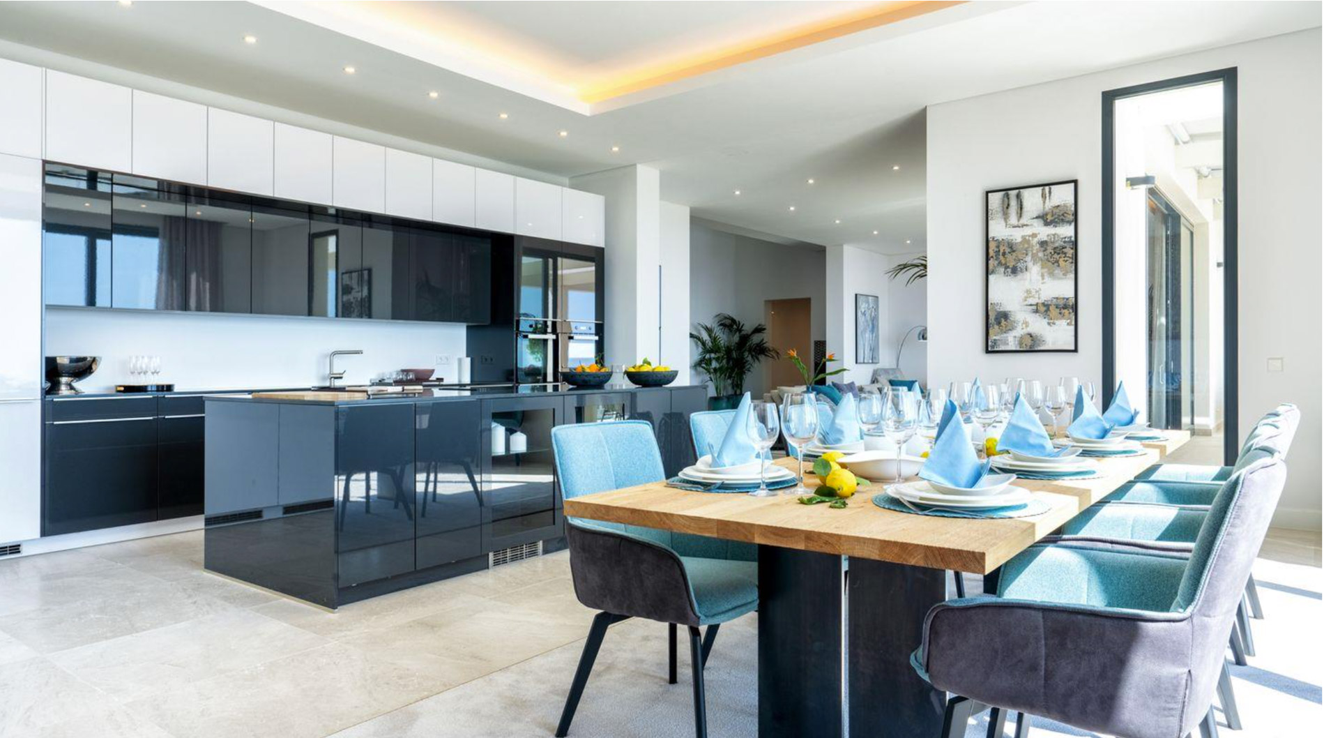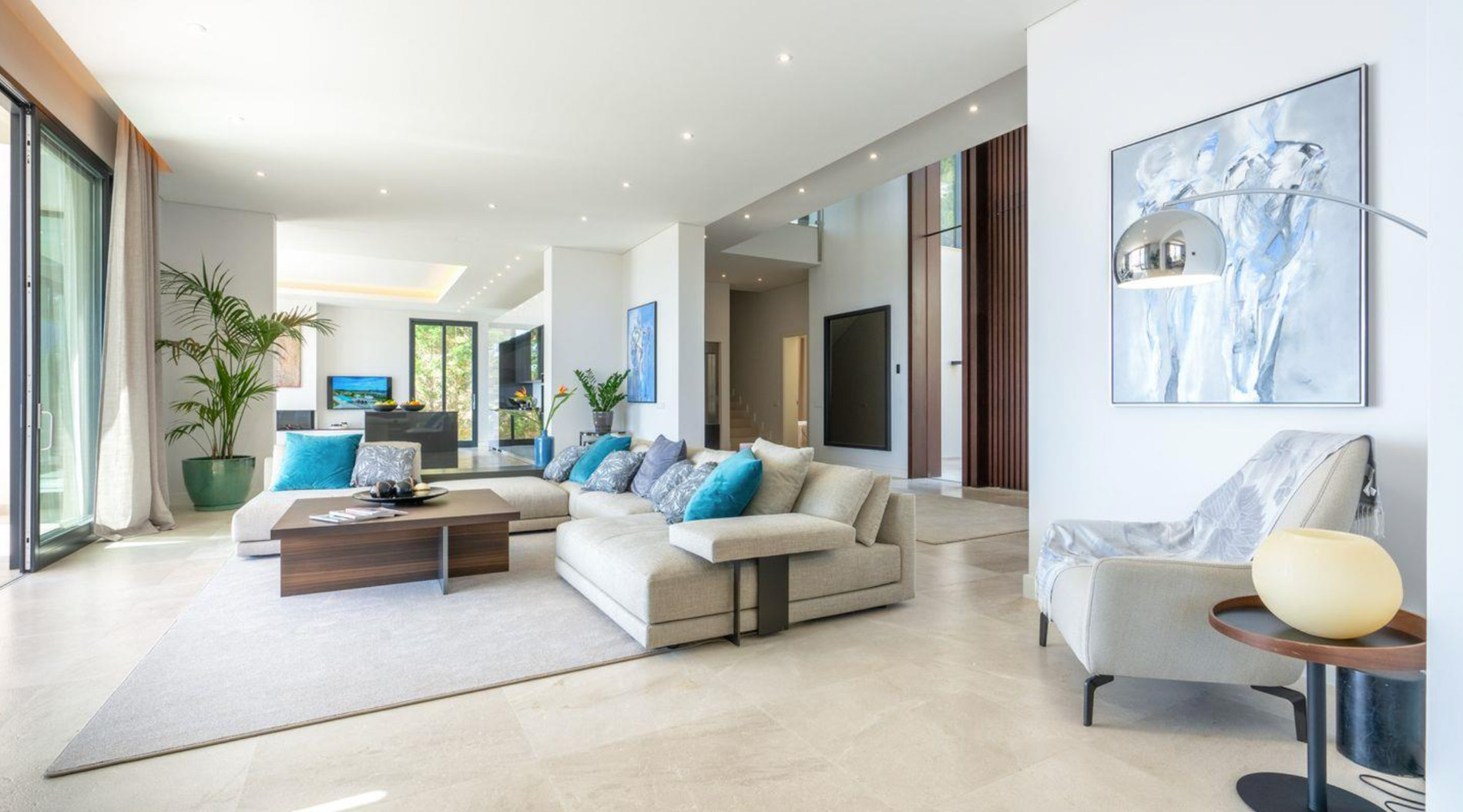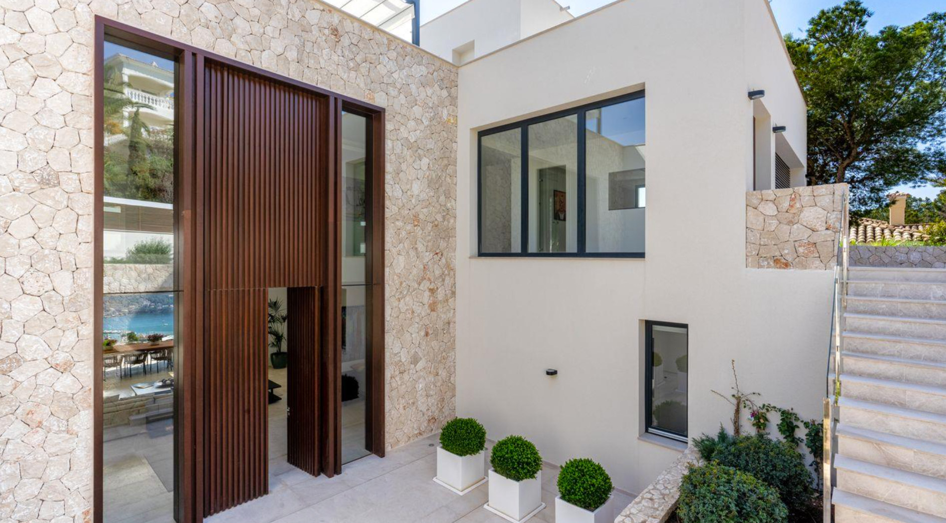 La villa ofrece un estilo moderno y los más altos estándares de calidad. Los 800 m2 se distribuyen en 4 niveles, accesibles con ascensor. Además hay una casa para invitados con entrada independiente y dispone de una cocina y 2 dormitorios. En la azotea hay una amplia terraza de 250 m² que es perfecta para disfrutar del sol y de las excelentes vistas panorámicas. El spa ofrece una piscina cubierta climatizada y sauna