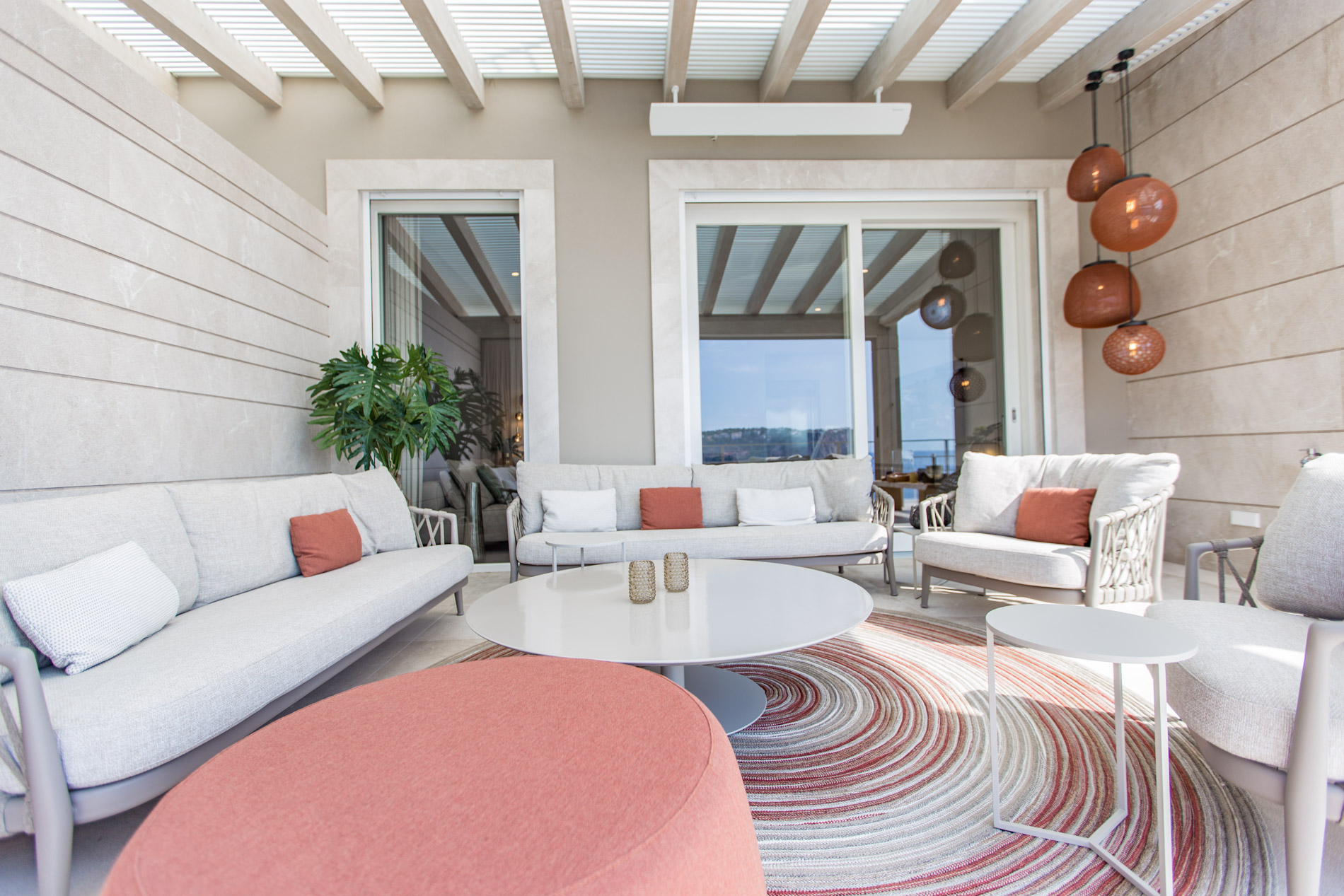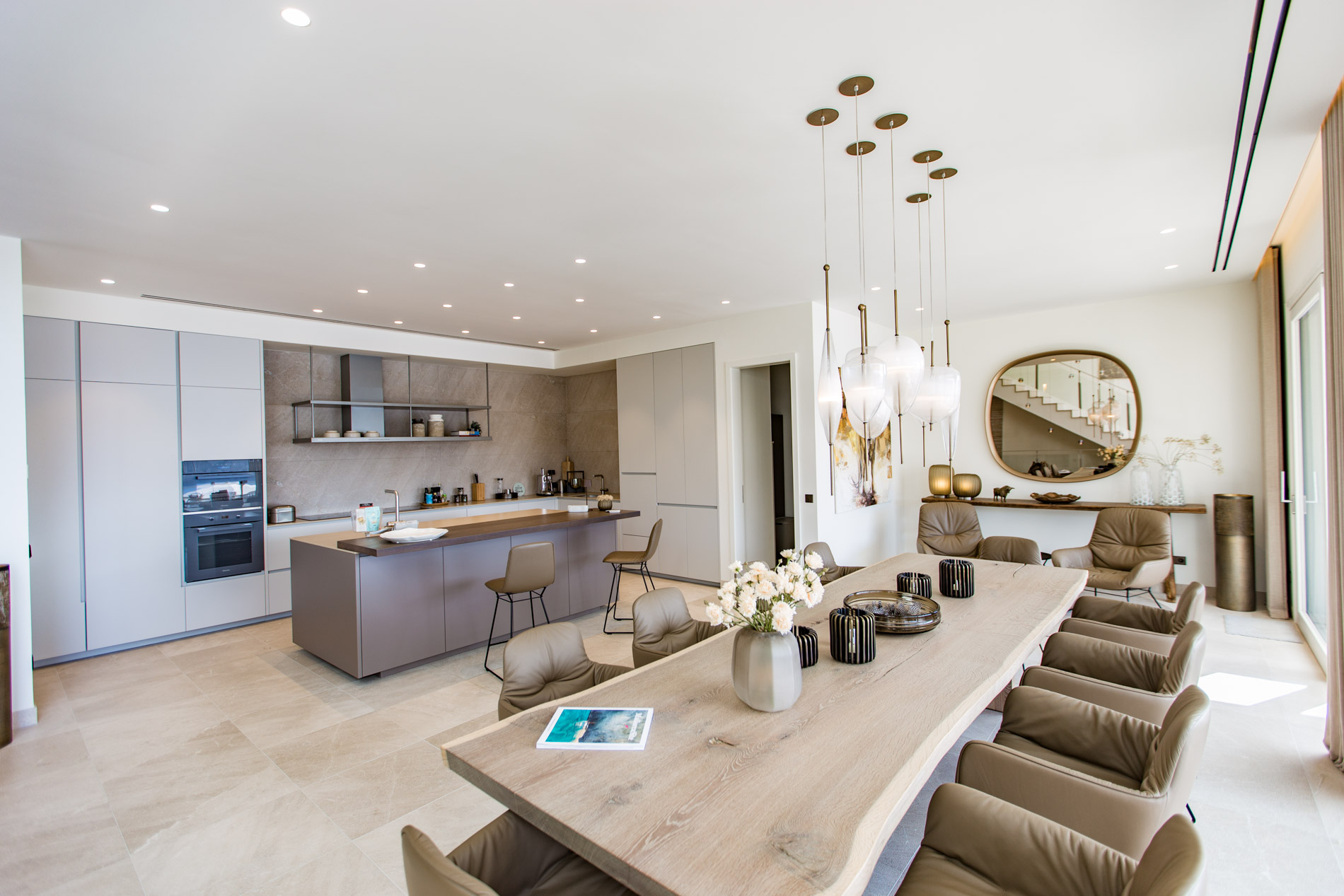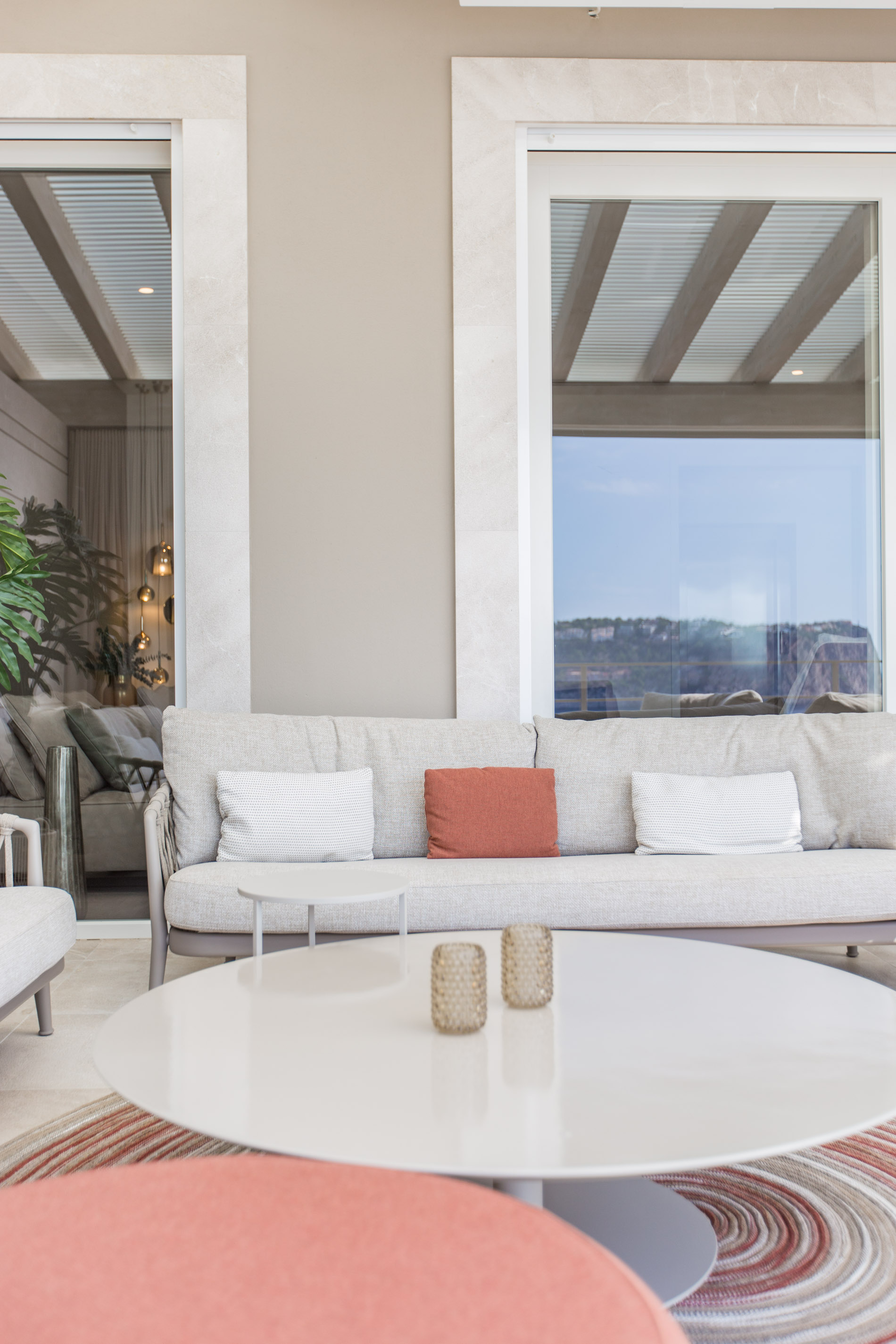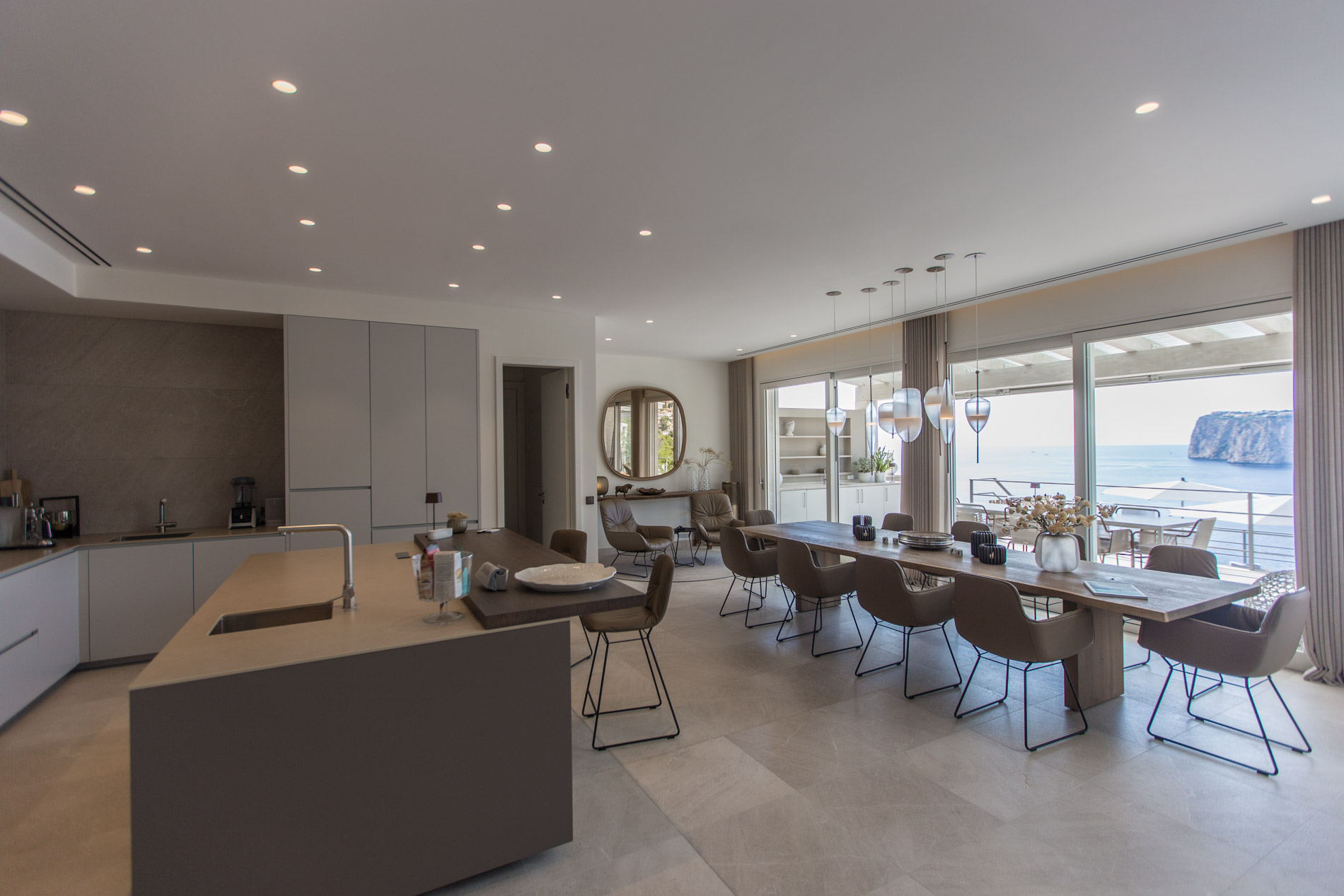 Explorando la Elegancia en Port d'Andratx: Una Villa de Ensueño Ubicada en uno de los lugares más impresionantes de Port d'Andratx, esta propiedad deslumbra con su lujo incomparable y vistas panorámicas que quitan el aliento. Desde majestuosas vistas al mar hasta montañas circundantes y puestas de sol de postal, esta villa ofrece un estilo de vida de ensueño. La villa, que se extiende a lo largo de tres niveles, abarca una generosa superficie construida de 810 metros cuadrados. En la planta superior, dos amplios dormitorios principales con baños en suite y vestidores ofrecen privacidad y comodidad. Un tercer dormitorio con cuarto de ducha completa esta planta, garantizando espacio para toda la familia o invitados. En la planta baja, una cocina espaciosa y exclusiva se fusiona armoniosamente con una elegante sala de estar, creando el escenario perfecto para la vida moderna. Un dormitorio independiente con baño en suite y terraza privada añade un toque de privacidad y comodidad adicional. Desde la cocina y la sala de estar, se accede directamente a terrazas que rodean la zona de la piscina. Aquí, los residentes pueden relajarse y disfrutar de vistas panorámicas inigualables del mar, creando el escenario perfecto para reuniones al aire libre y entretenimiento. El sótano de la villa alberga dos dormitorios adicionales, un baño y una sala de estar adicional con su propia terraza privada. Además, una espaciosa sala de gimnasio completamente equipada brinda la oportunidad de mantenerse activo y en forma sin salir de casa. Una característica destacada de esta propiedad es su cubierta de sauna separada, que ofrece la posibilidad de una sesión de sauna relajante con vistas al mar, una experiencia verdaderamente única. Los materiales de alta calidad, como la piedra natural y el parquet de roble, infunden a la villa una sensación cálida y acogedora. La exclusividad y calidad se elevan aún más con muebles de primer nivel de marcas como January, B&B Italia, Flexform, Freifrau, Poliform, Minotti y Tribu. En resumen, esta propiedad en Port d'Andratx es una obra maestra de lujo y diseño, donde la elegancia se combina con vistas impresionantes para crear un estilo de vida excepcional en la hermosa costa de Mallorca. Es una invitación a vivir la vida en su máxima.