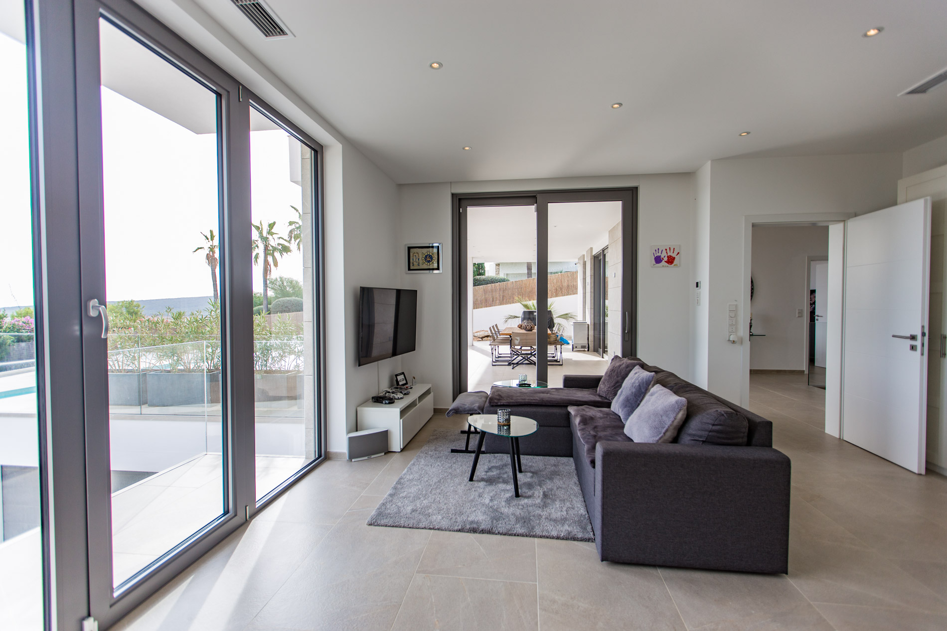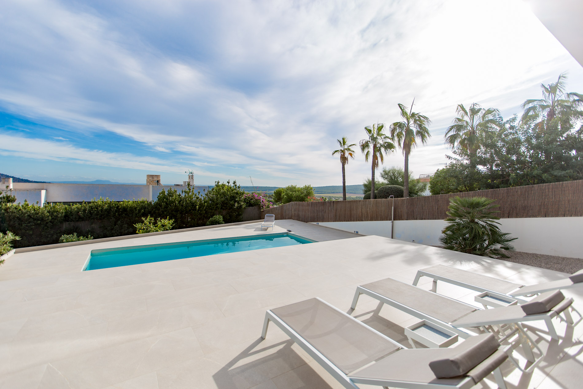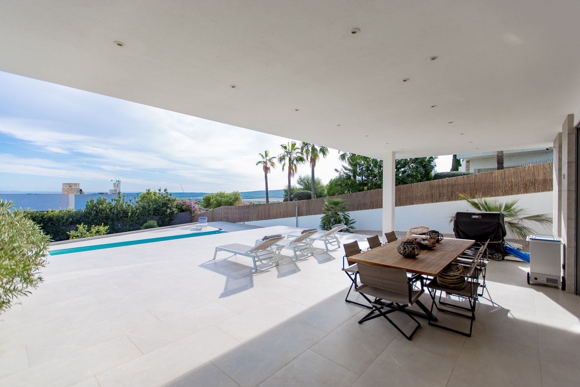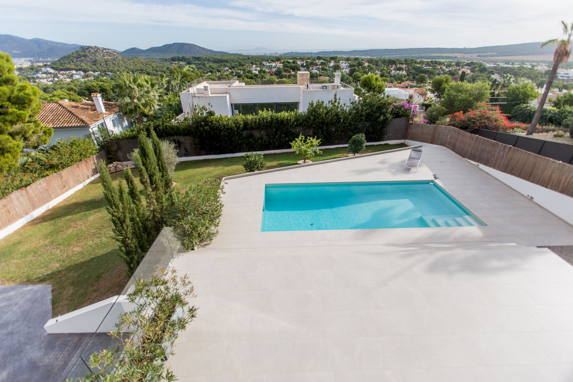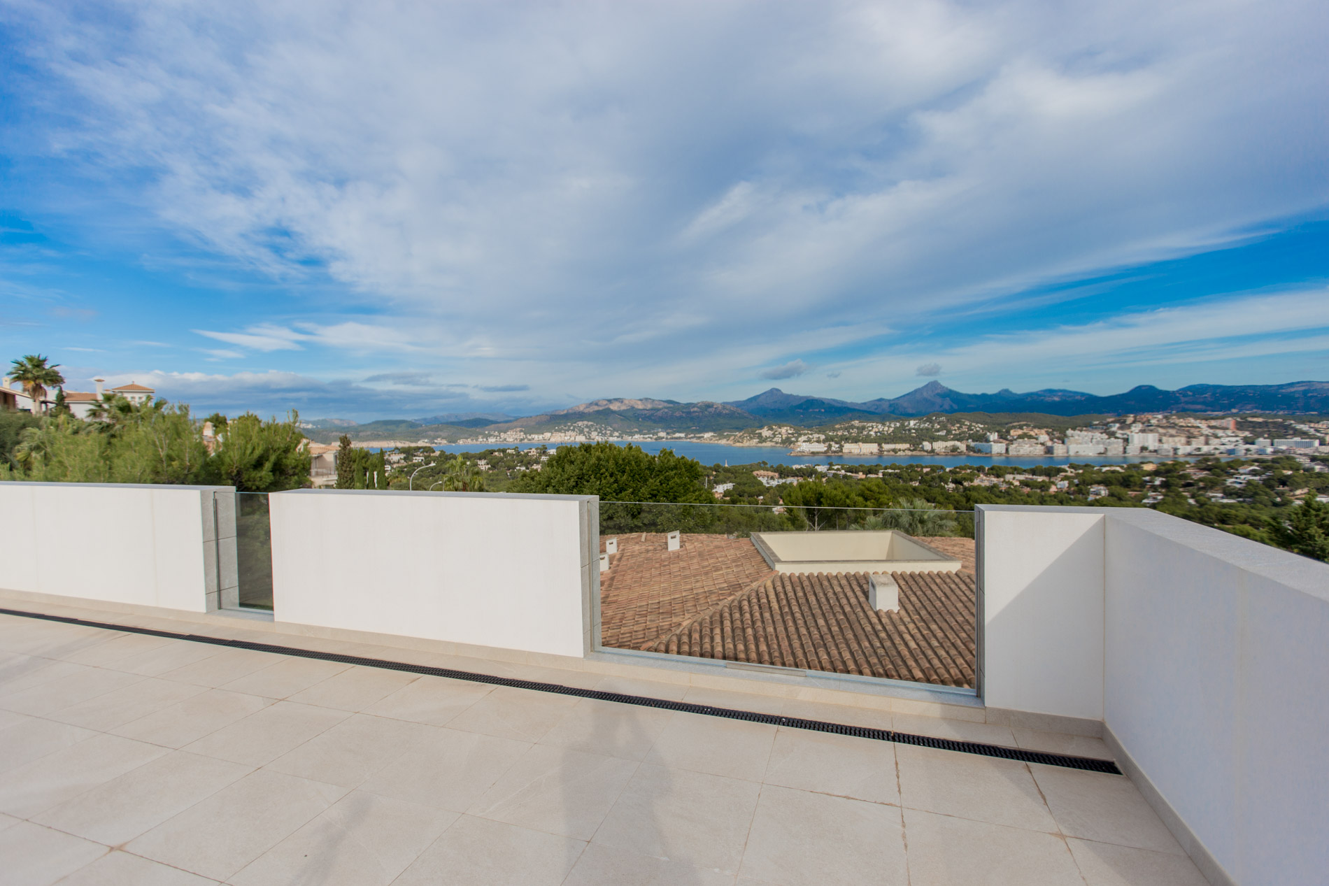 Esta moderna villa de reciente construcción fue diseñada por el renombrado arquitecto mallorquín Alejandro Palomino, cuenta con una fantástica vista panorámica al mar, tanto a la Bahía de Santa Ponsa como hacia la isla de El Toro. La villa se encuentra en la parte alta de Nova Santa Ponsa, en una zona muy tranquila y privada.