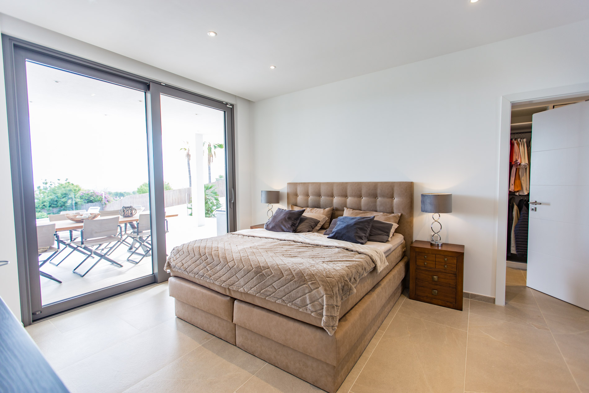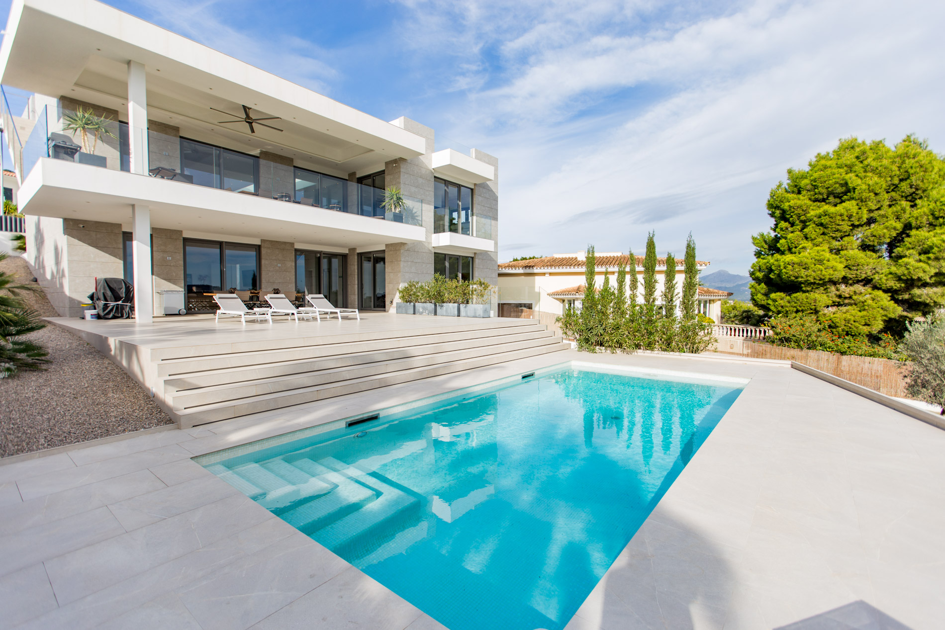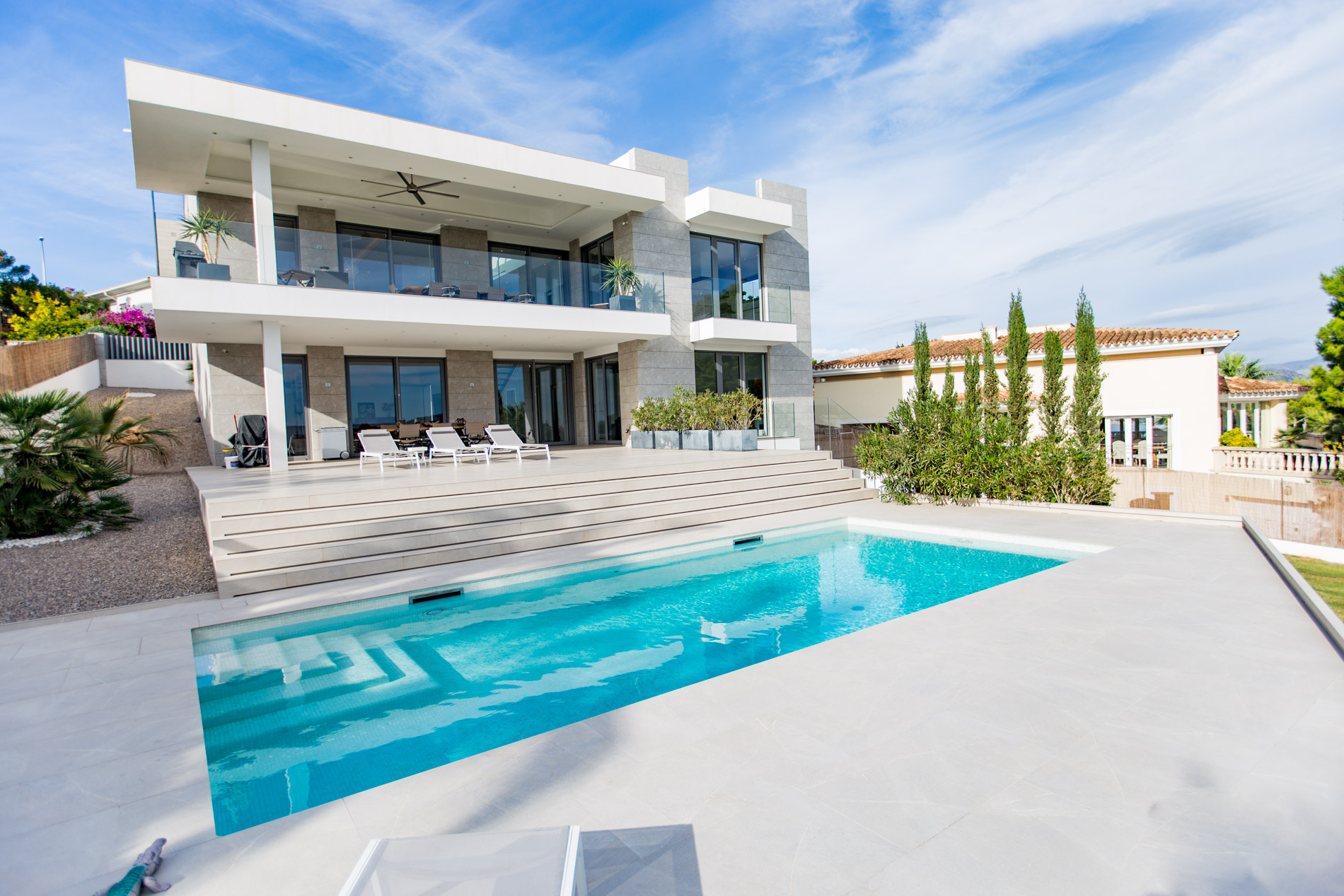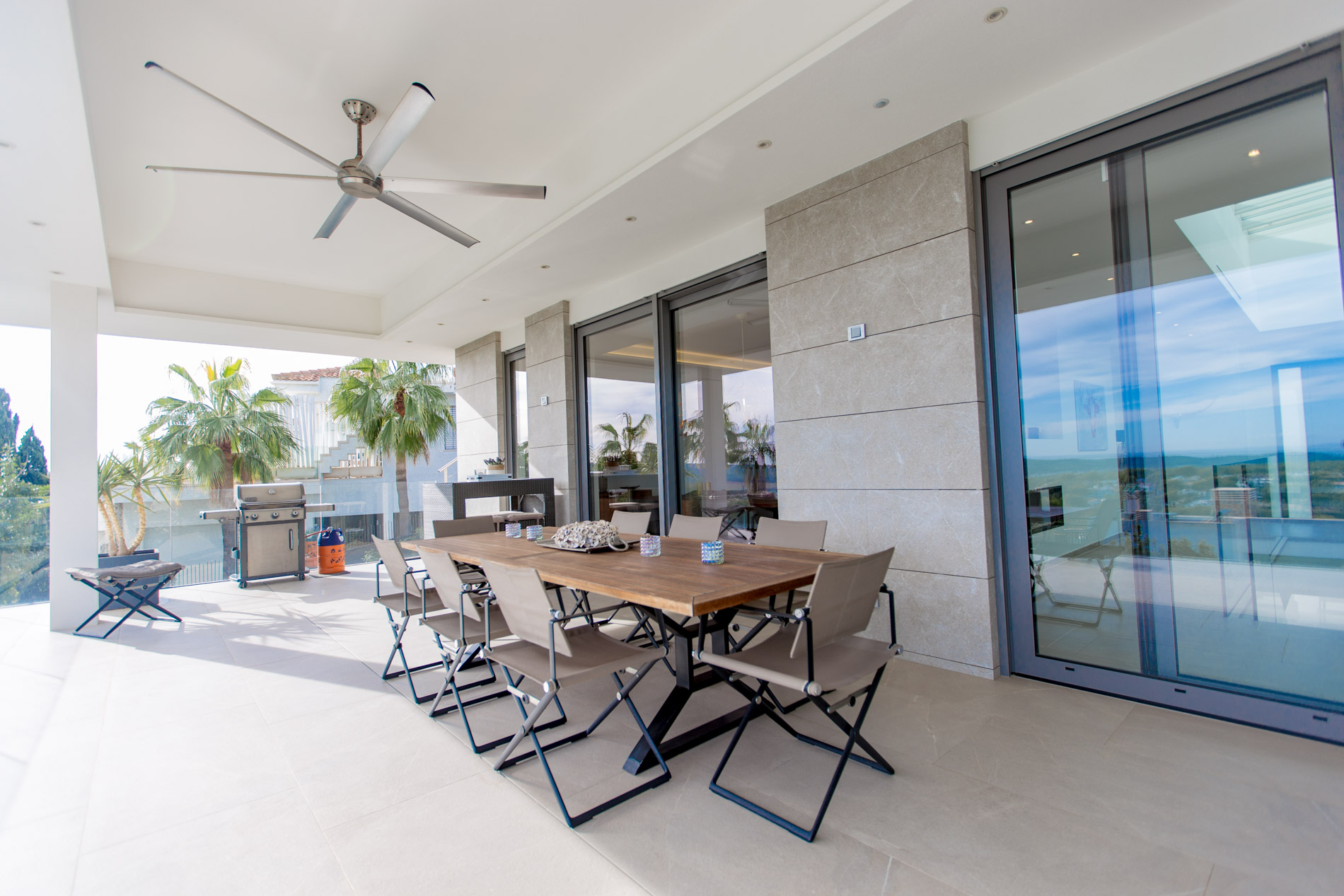Esta moderna villa de reciente construcción fue diseñada por el renombrado arquitecto mallorquín Alejandro Palomino, cuenta con una fantástica vista panorámica al mar, tanto a la Bahía de Santa Ponsa como hacia la isla de El Toro. La villa se encuentra en la parte alta de Nova Santa Ponsa, en una zona muy tranquila y privada.
