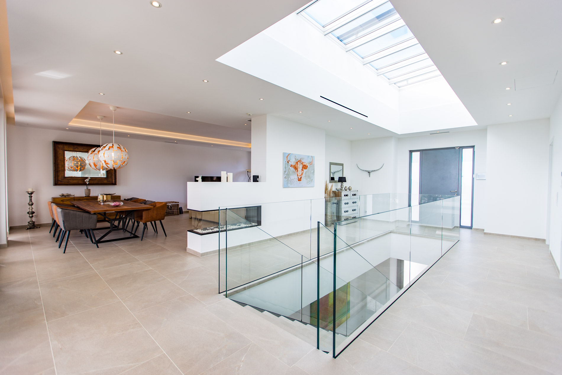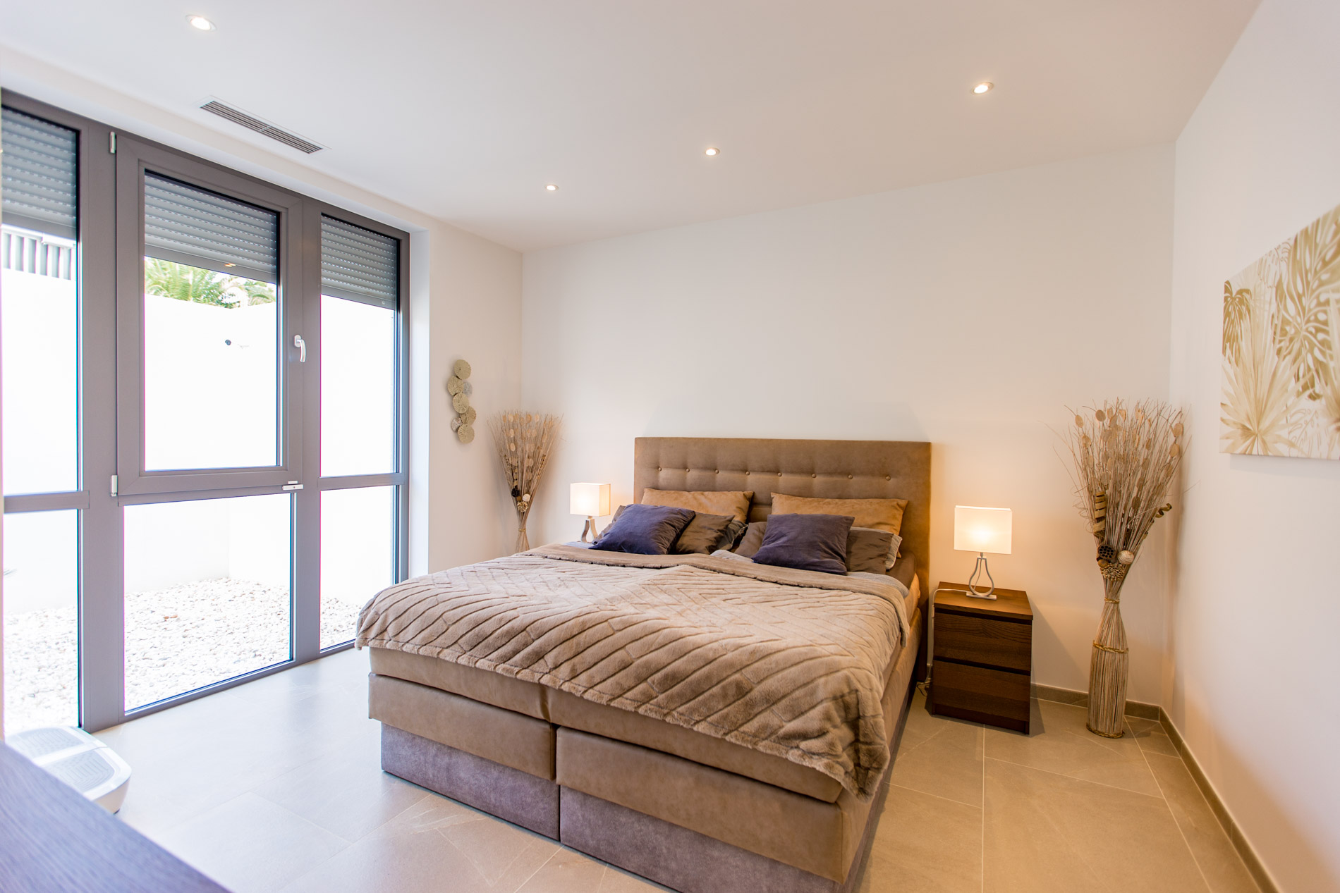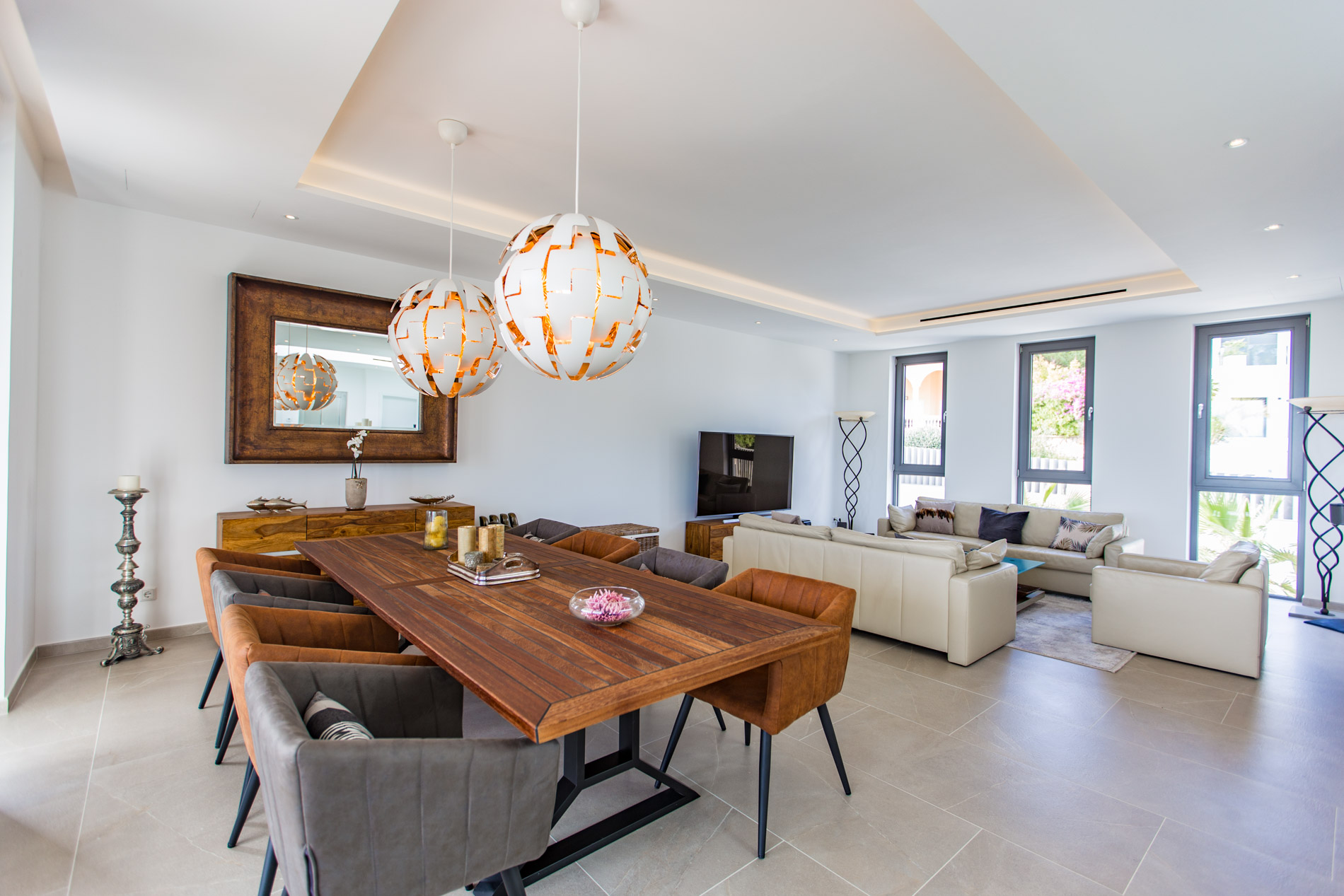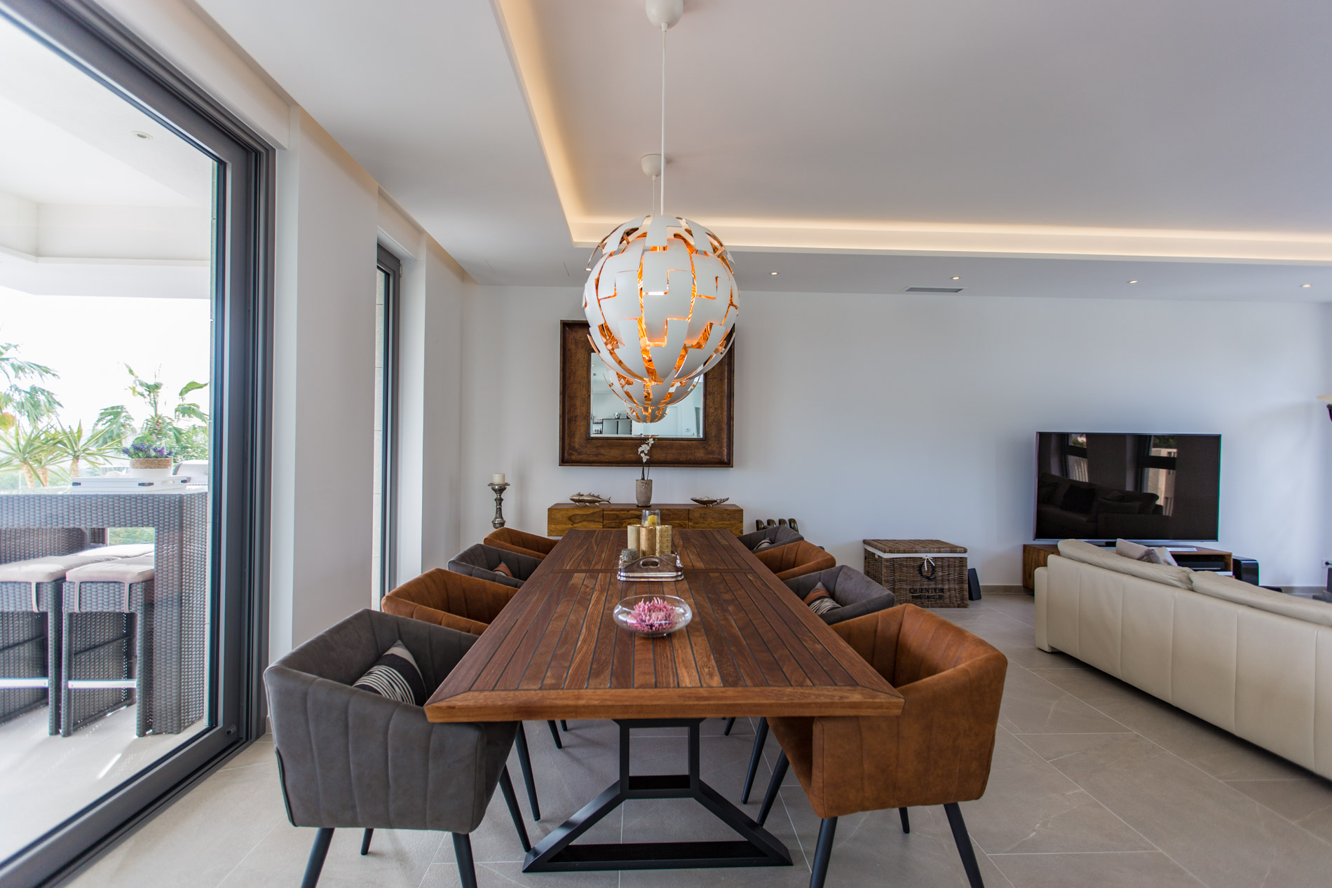 Esta moderna villa de reciente construcción fue diseñada por el renombrado arquitecto mallorquín Alejandro Palomino, cuenta con una fantástica vista panorámica al mar, tanto a la Bahía de Santa Ponsa como hacia la isla de El Toro. La villa se encuentra en la parte alta de Nova Santa Ponsa, en una zona muy tranquila y privada.
