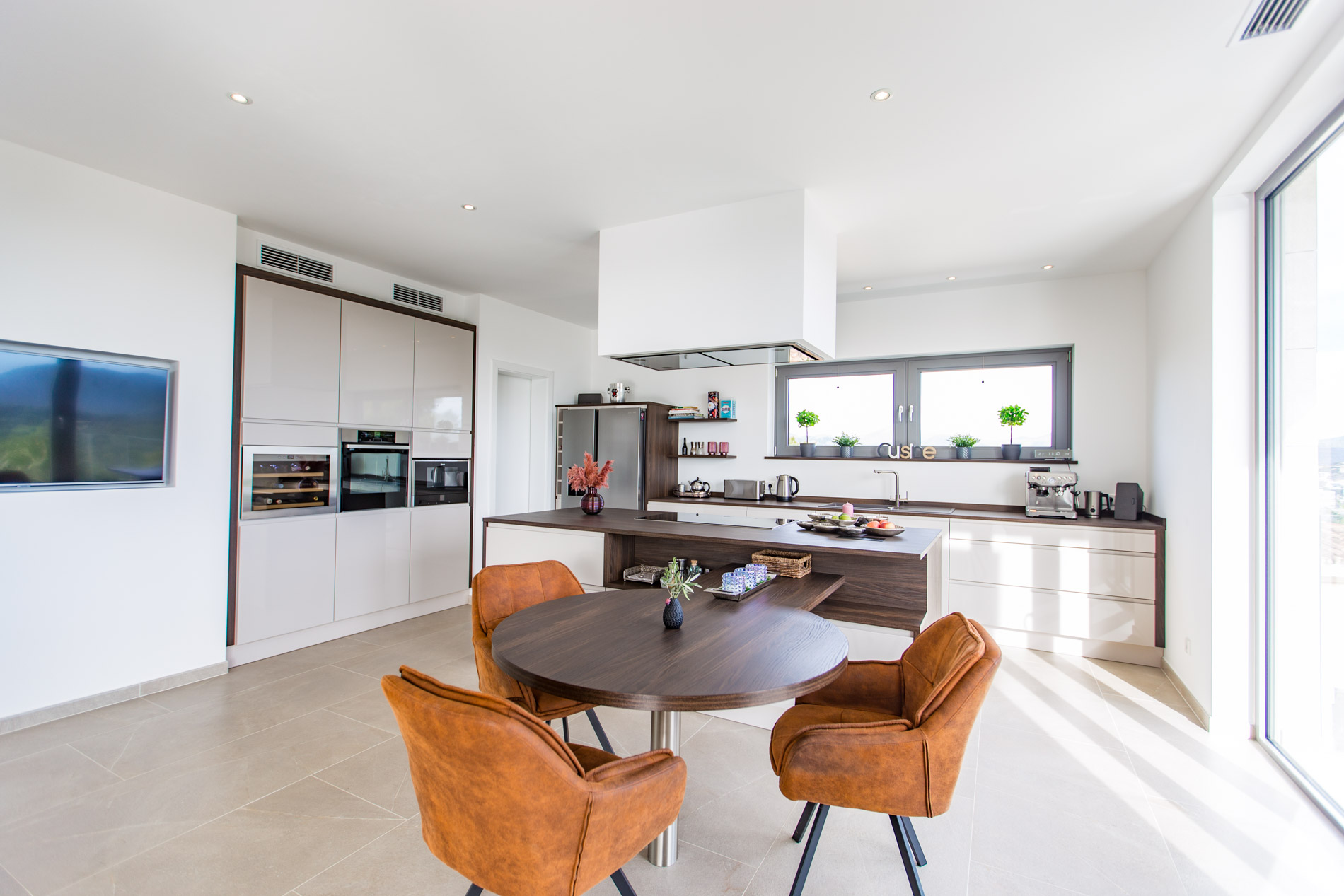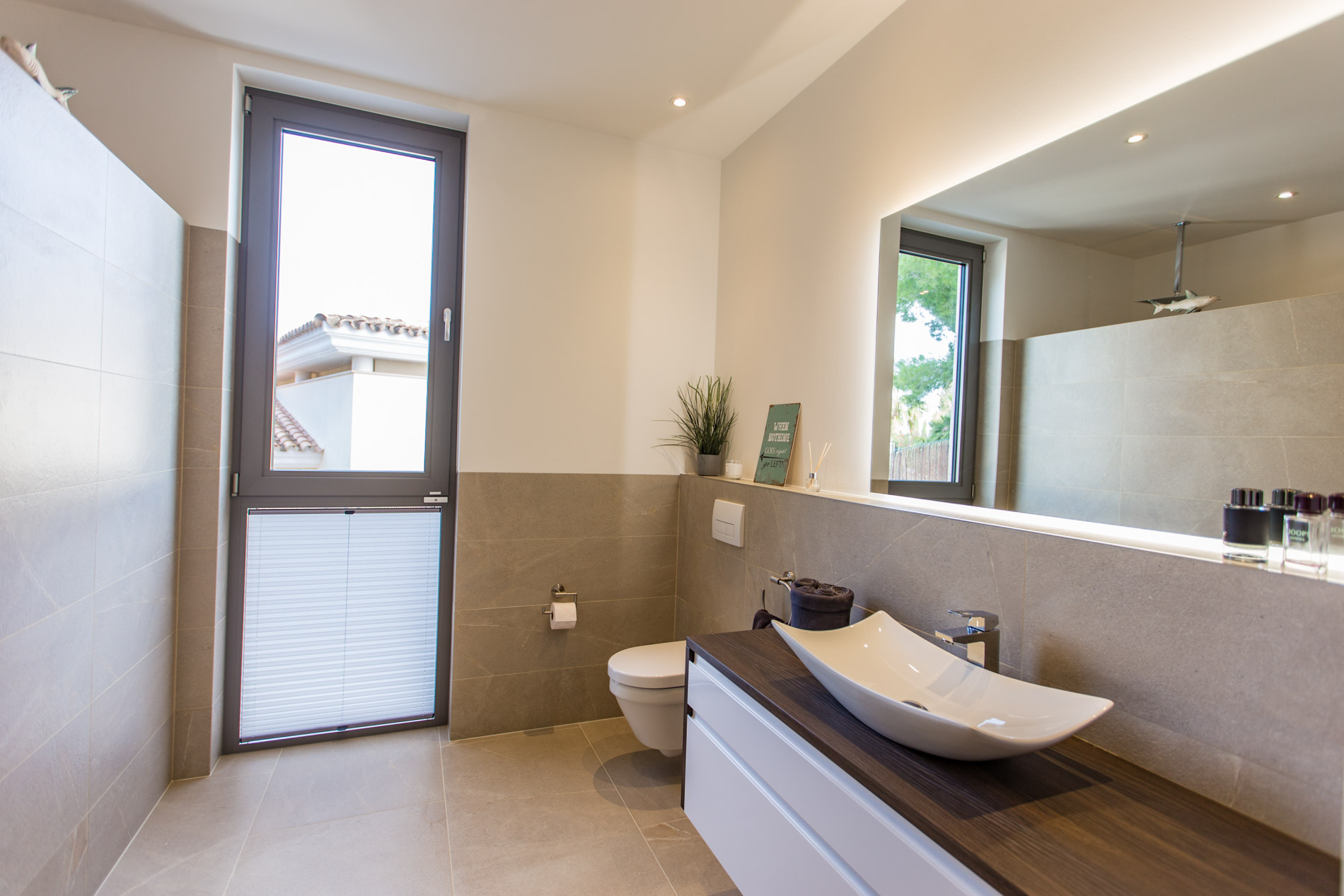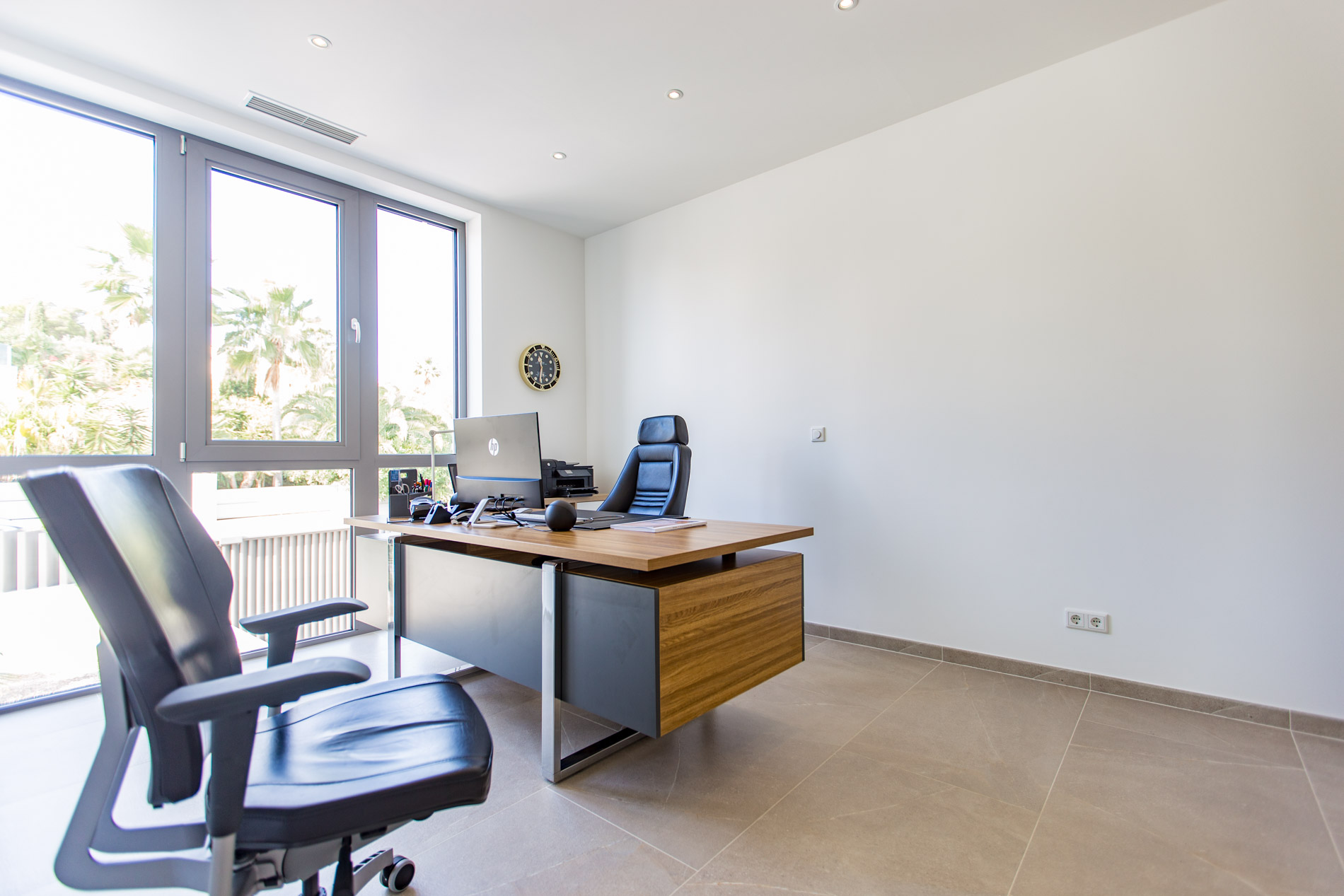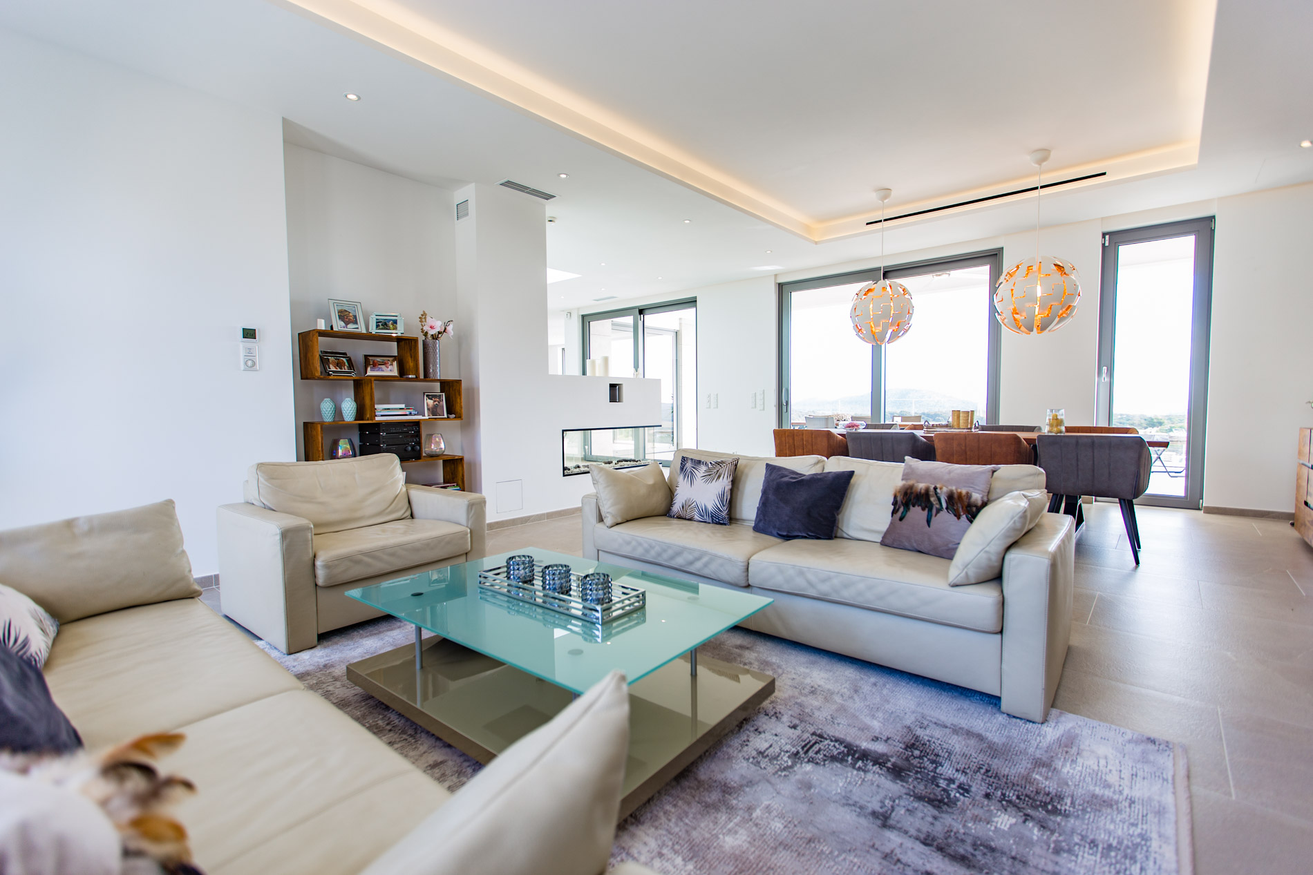 Esta moderna villa de reciente construcción cuenta con un diseño moderno, amplios ventanales que le permite disfrutar de las vistas y contar con mucha luz en el interior de la vivienda. Es una villa amplia, con espacios abiertos y amplias terrazas para disfrutar tanto del interior como del exterior. Situada en lo alto de la colina conocida como la ensaimada de Santa Ponsa, cuenta con bonitas vistas, privacidad y tranquilidad. Situada a tan sólo 5 minutos de PortAdriano y cerca de los campos de golf de Santa Ponsa. La villa que se terminó en el año 2021, ha sido construida con materiales de alta gama. La entrada se encuentra en la primera planta separada por un lado con un amplio salón-comedor con una chimenea de gas y salida a la terraza con bonitas vistas y en el otro lado una amplia cocina con isla con vistas a la Bahía de Santa Ponsa, despensa, un dormitorio/despacho y un baño. Desde esta planta se accede a la terraza en la azotea con vistas panorámicas sobre la Bahía de Santa Ponsa con las montañas al fondo. En la planta baja está el dormitorio principal con baño en suite con bañera y ducha y un gran vestidor, dos dormitorios dobles, un baño y la coladuría. Desde esta planta se accede a una gran terraza parcialmente cubierta que da a la piscina con sistema de contracorriente. En el sótano de la villa hay una bodega de vinos, un amplio garaje con espacio para 4-5 coches, una zona de oficina, un trastero y dos salas técnicas. Las tres plantas están conectadas por un ascensor Thyssen/Krupp. MallorcaSite, su agencia inmobiliaria en Mallorca recomienda esta propiedad por su ubicación, sus vistas, por ser de reciente construcción, por su privacidad y por sus calidades.